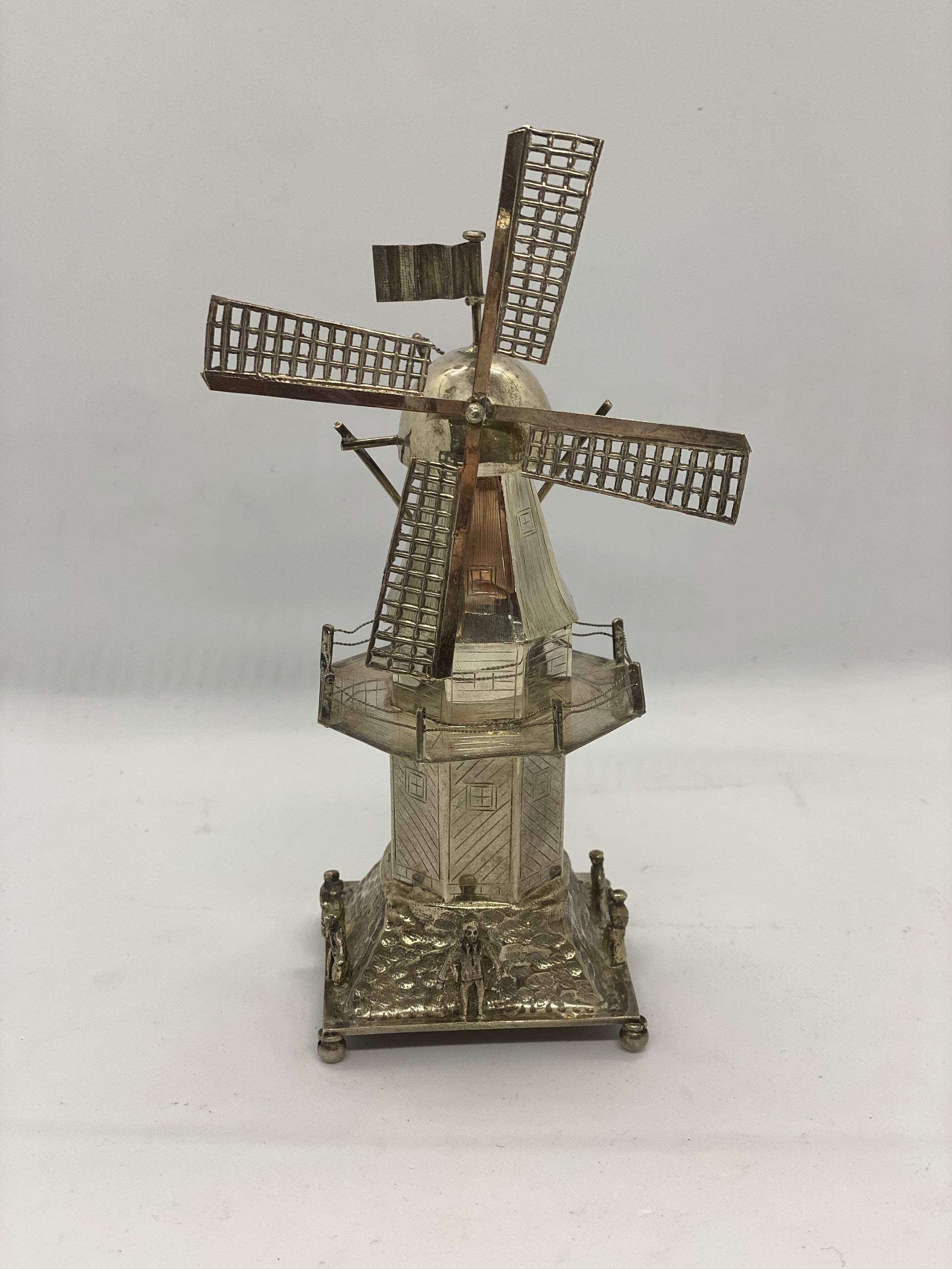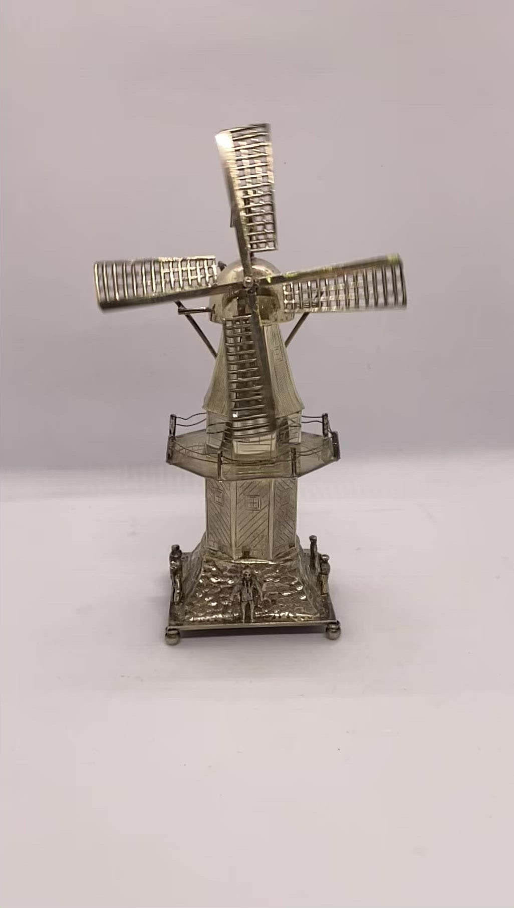 Condition: This piece is in excellent antique condition with one flaw; the silver ropes at the back of the windmill look to have separated. This may have been potentially deliberately done in order to increase the realism of the piece, but is mentioned for the sake of full disclosure.