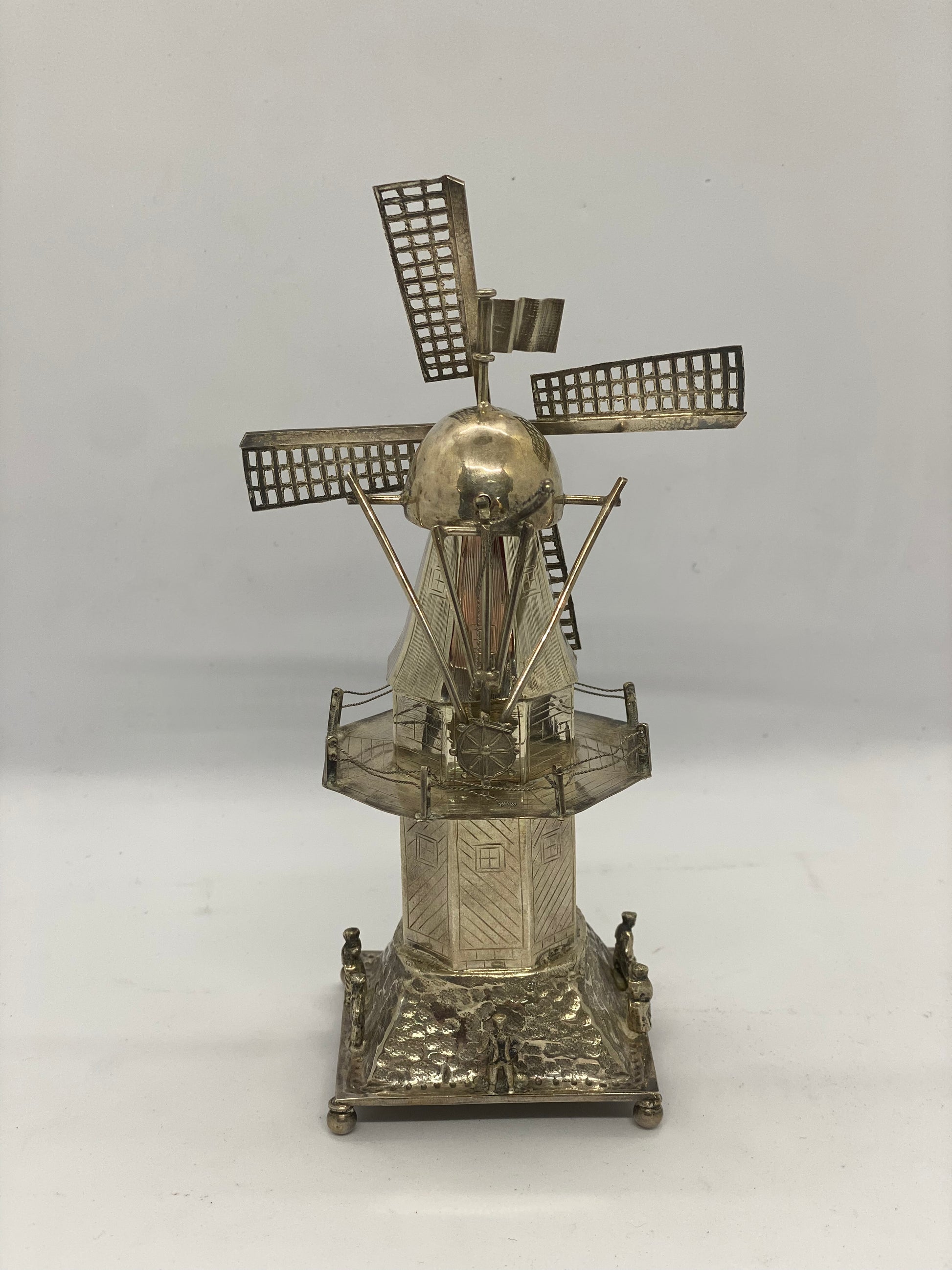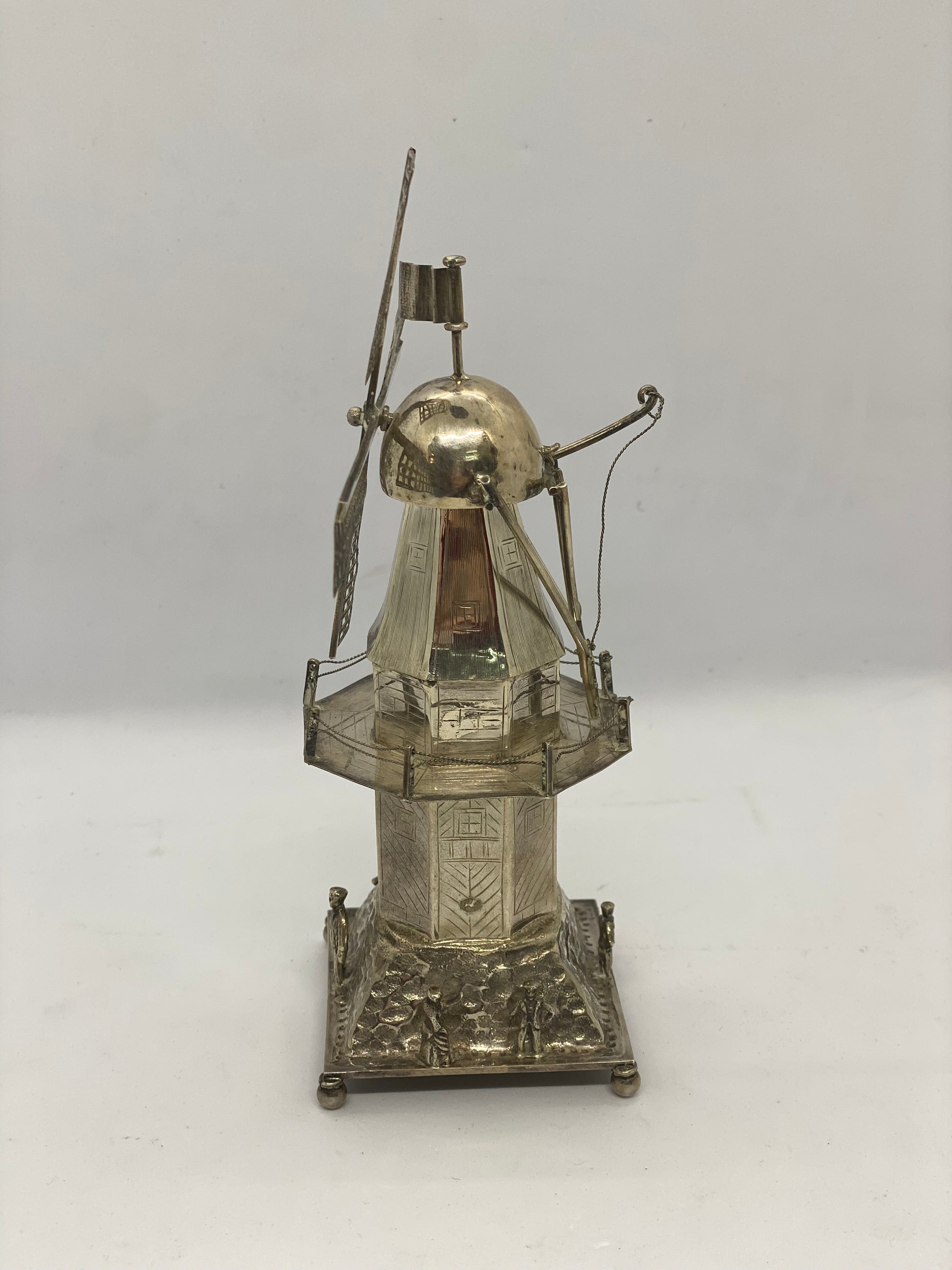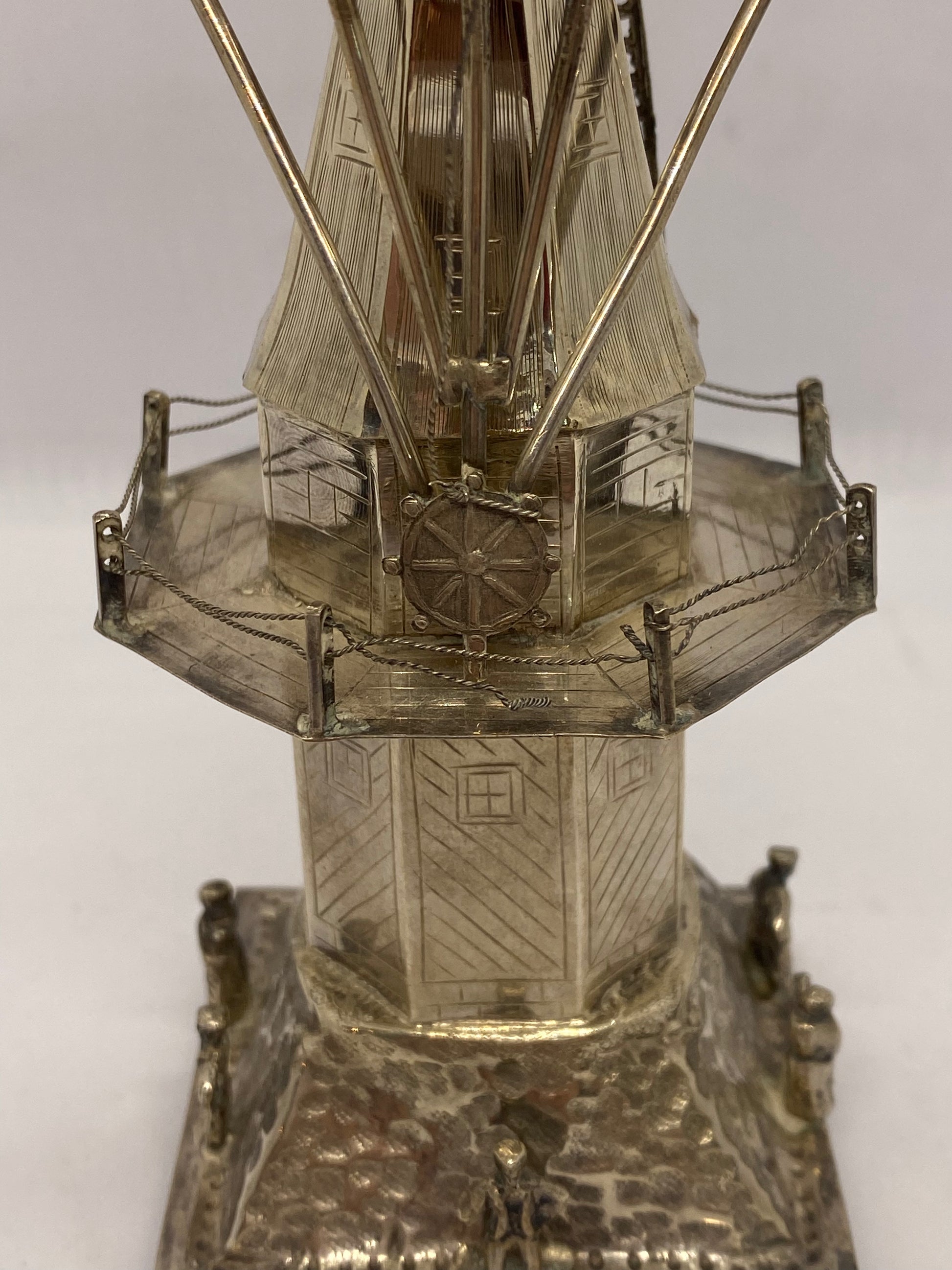 19th Century Dutch 835 Silver Figural Windmill and Spice Tower