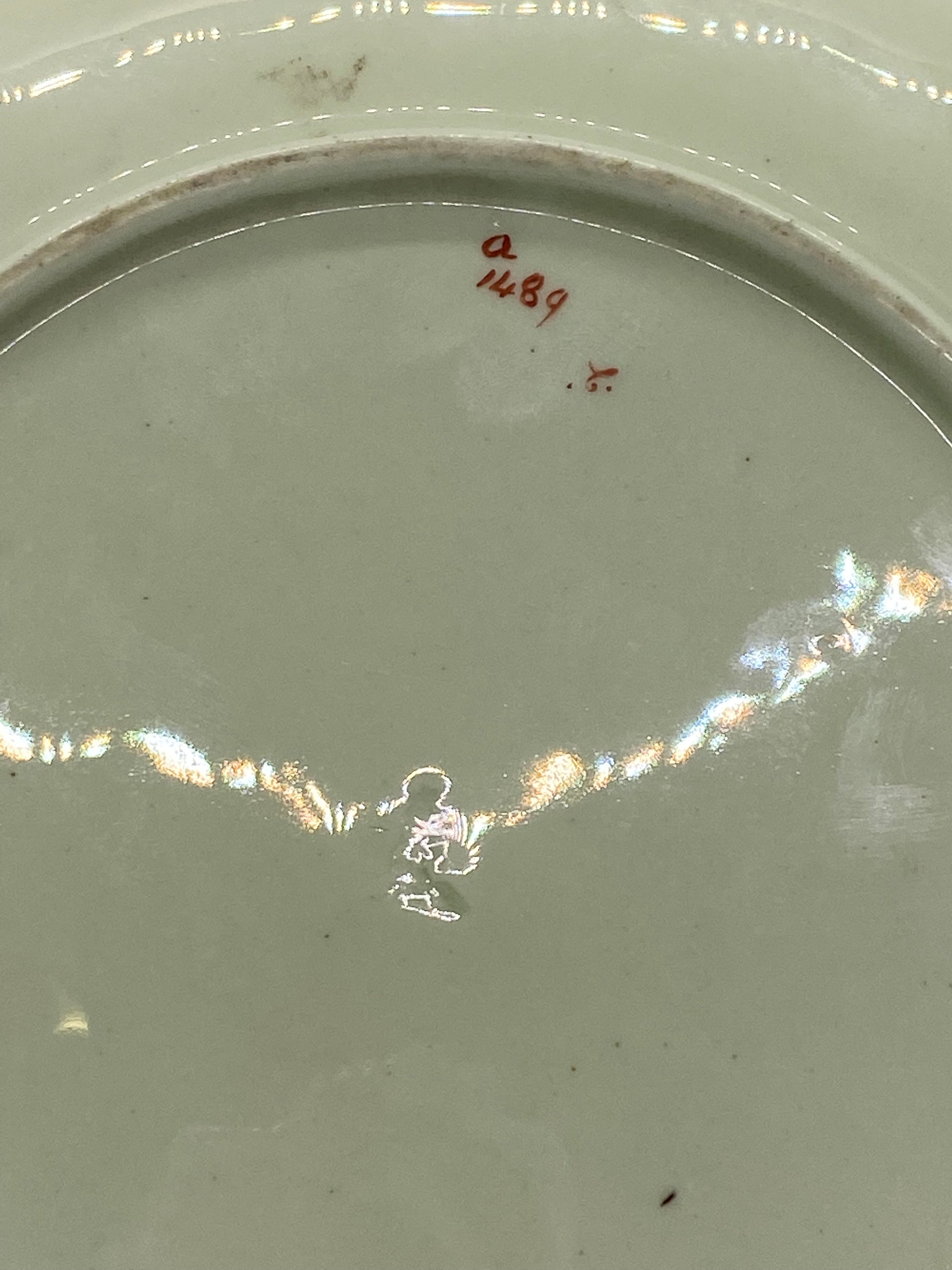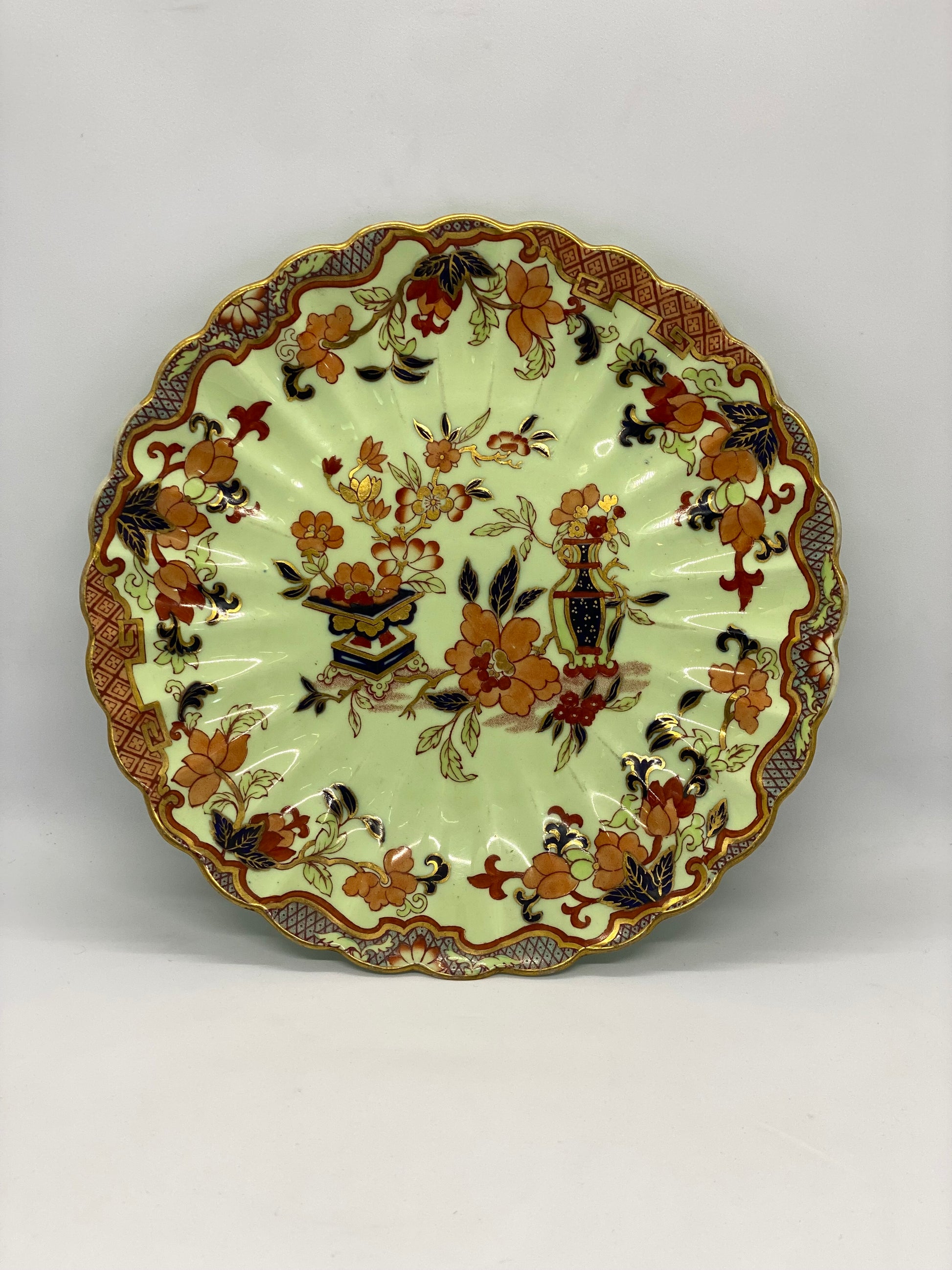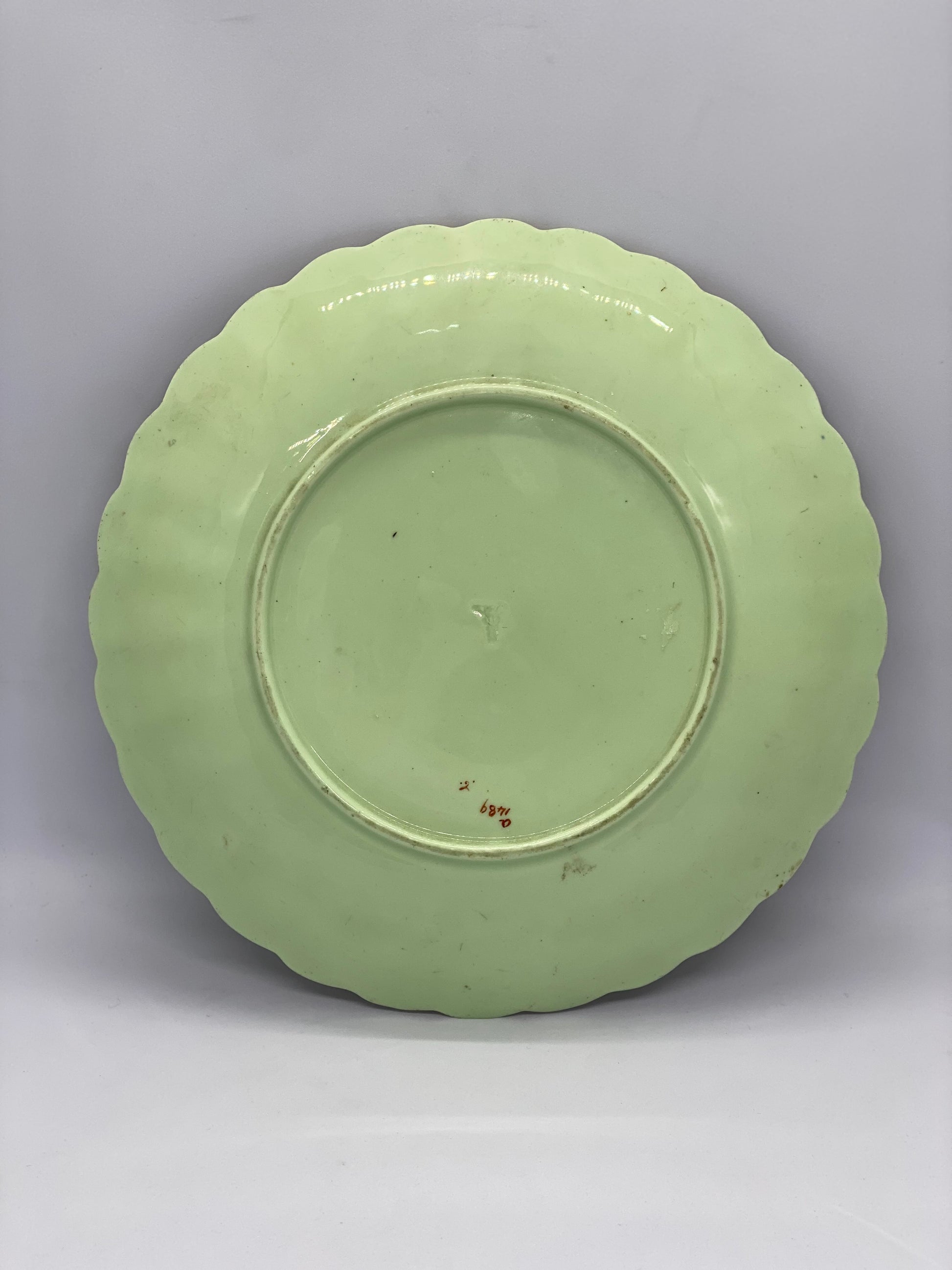 19th century polychrome plate with gilt trim and embellishment. Featuring motifs of vases, beautiful blooming flowers including peonies, and a lovely scalloped rim. Sure to form an elegant part of any display.
