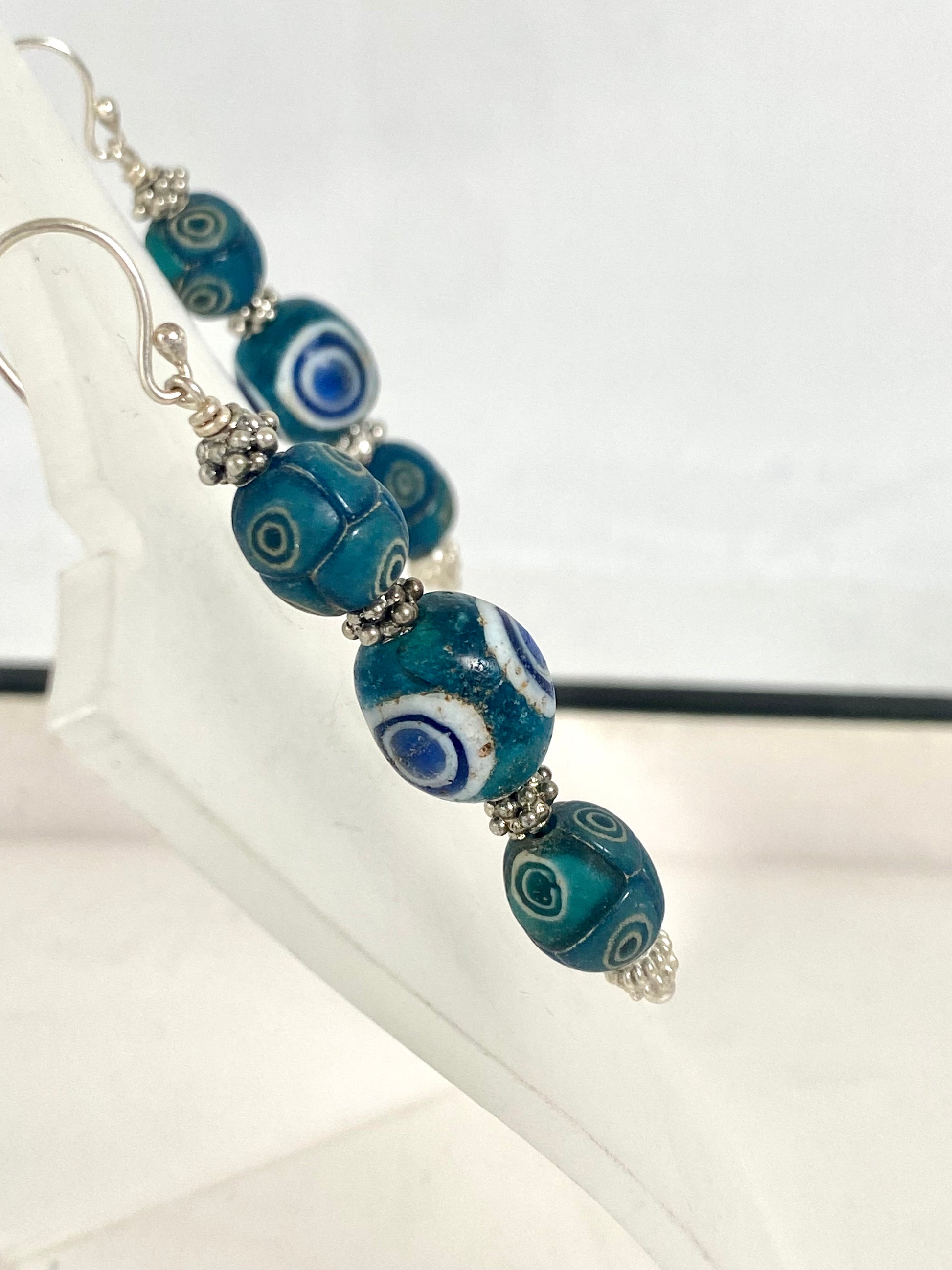 Ancient Javanese Trade Beads- Turquoise Millefiori Eye Bead Earrings circa 3rd century BC to 10th century AD