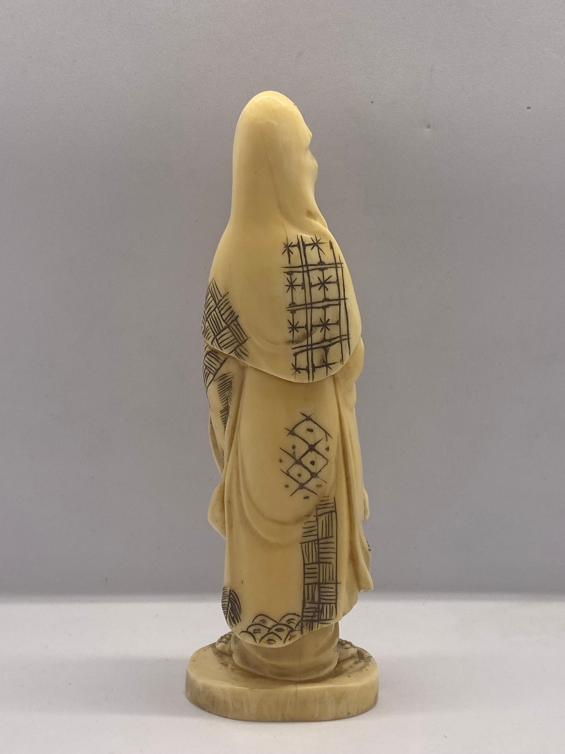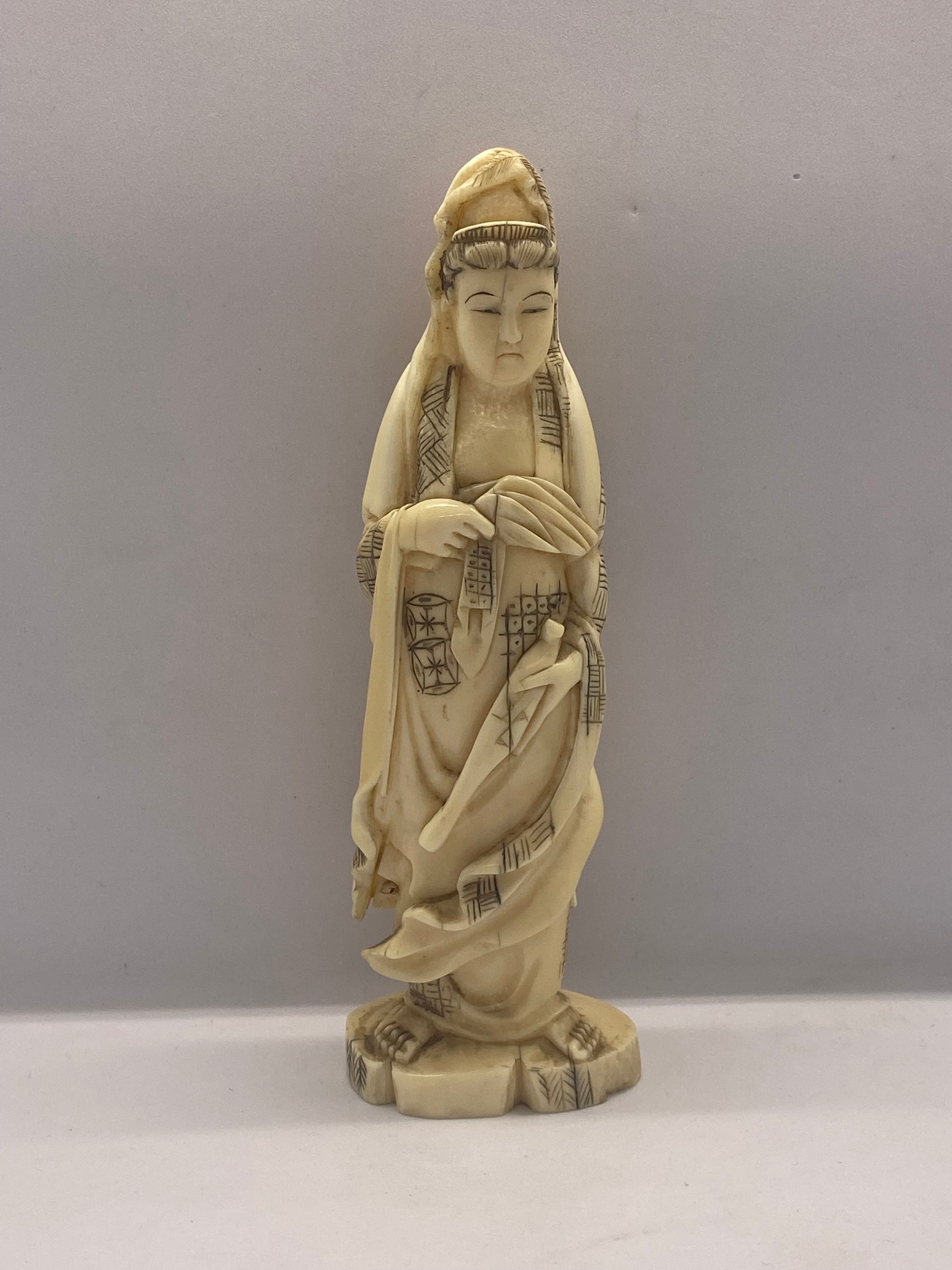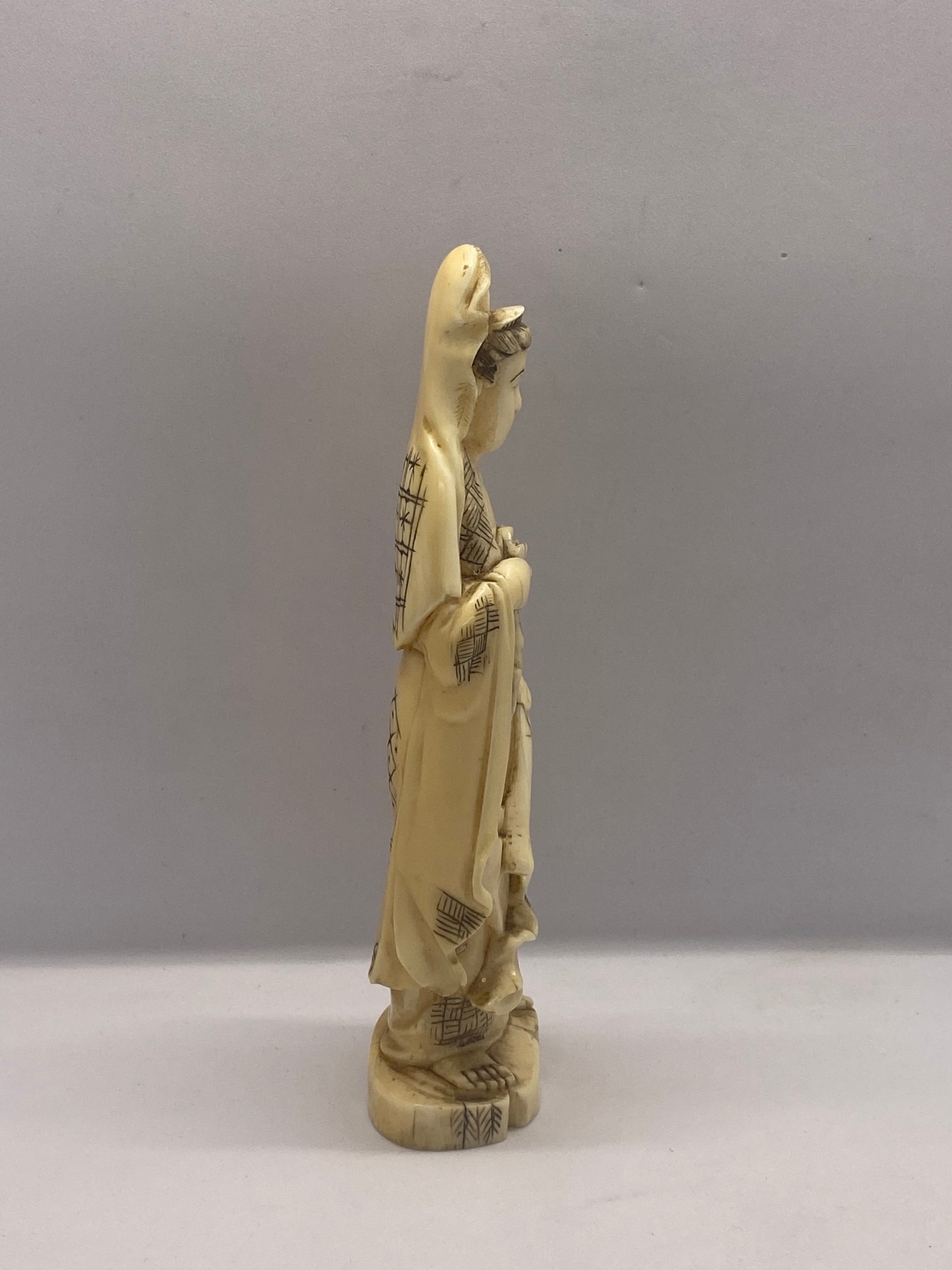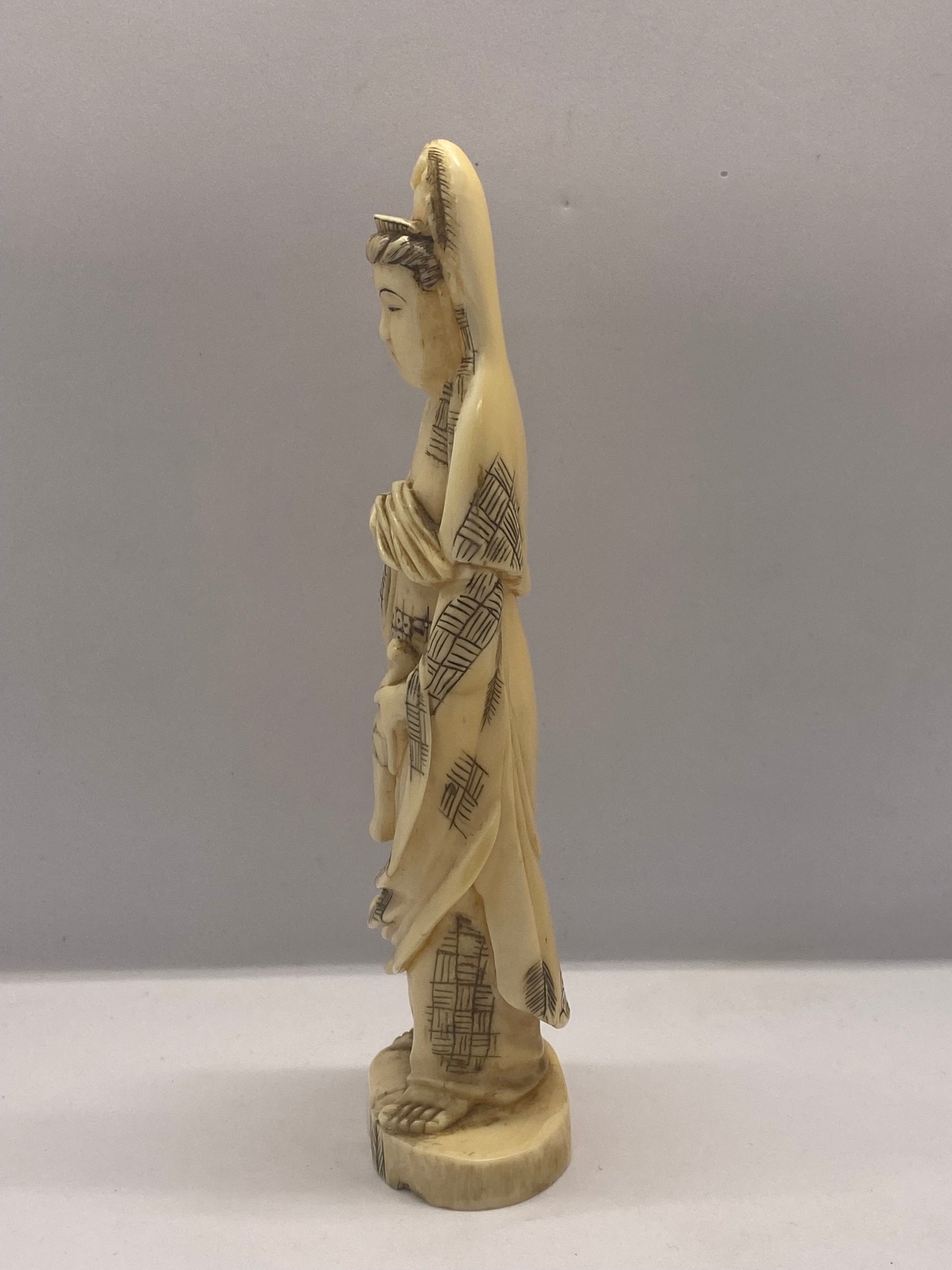This antique ivory figurine of Guanyin's female attendant Long Wang Nu is a beautiful and rare piece.