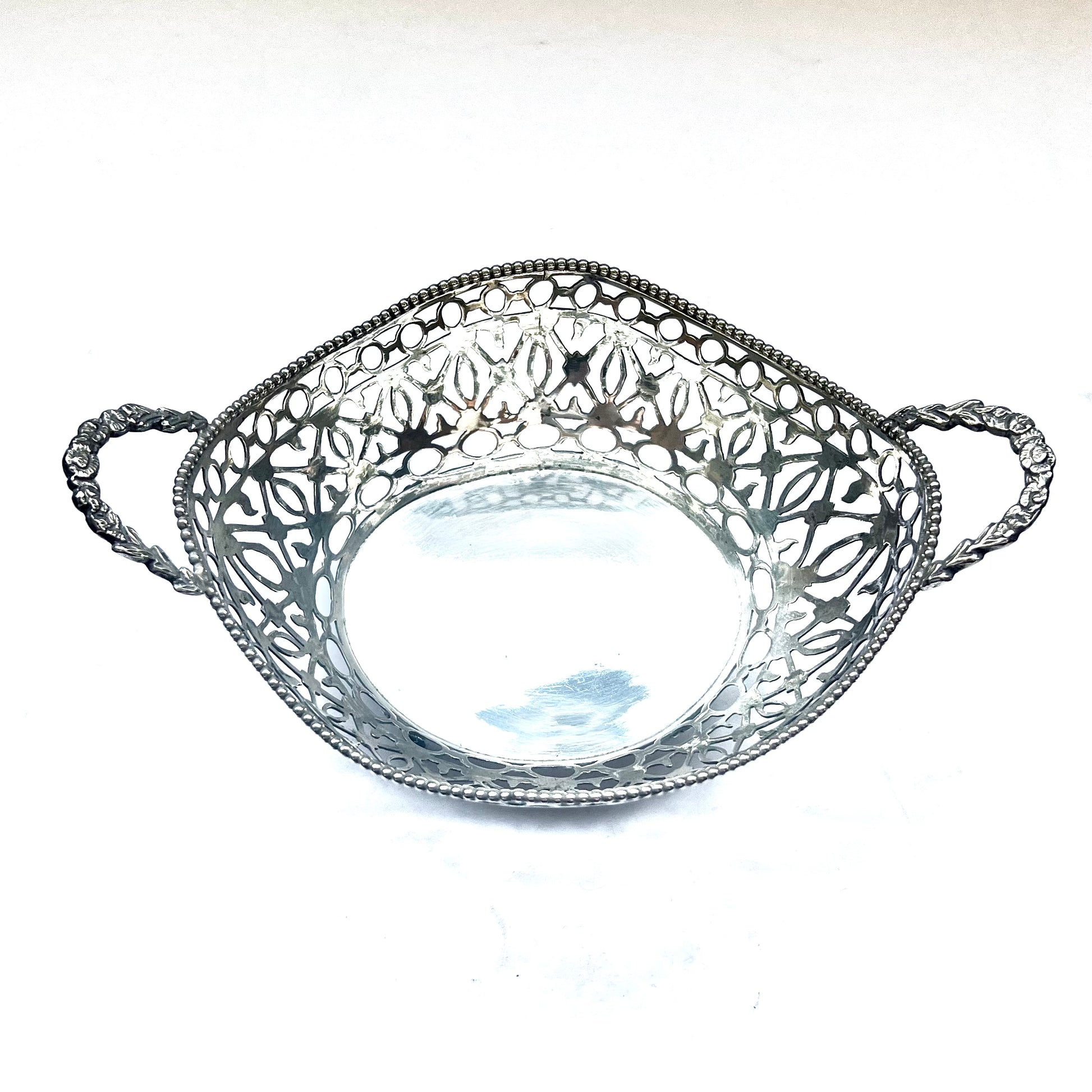 Antique Dutch .833 silver basket with pierced Art Nouveau design from 1914