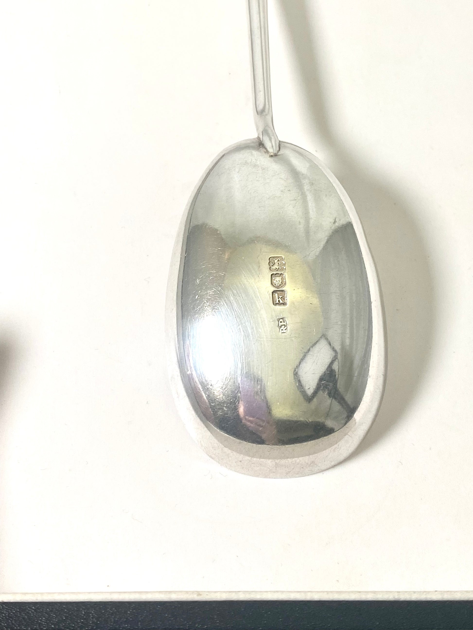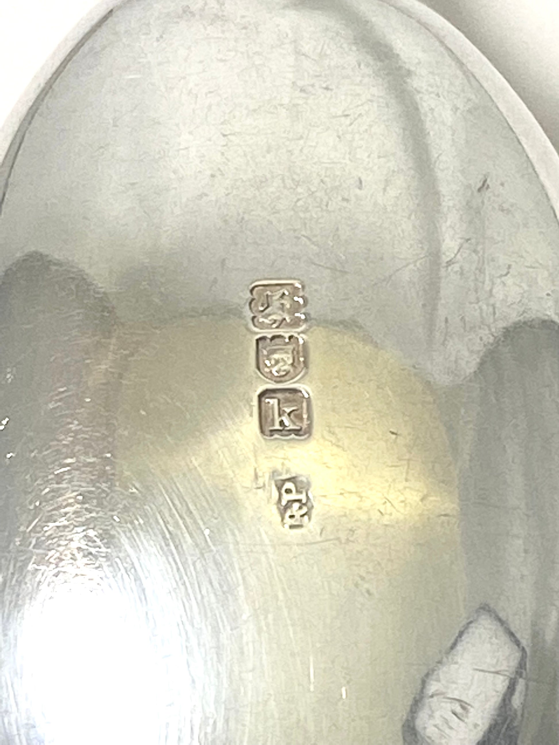 Fine antique Edward VII sterling silver serving spoon, with assay marks for London 1905. Maker’s marks for Robert Pringle.