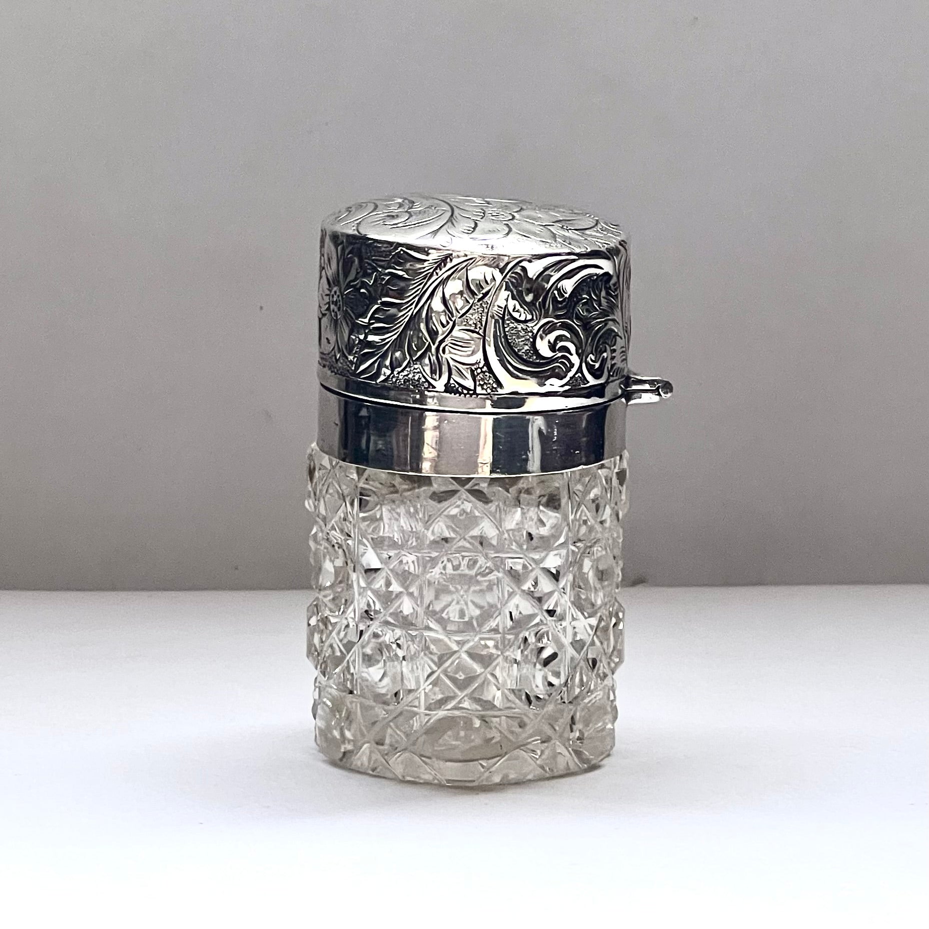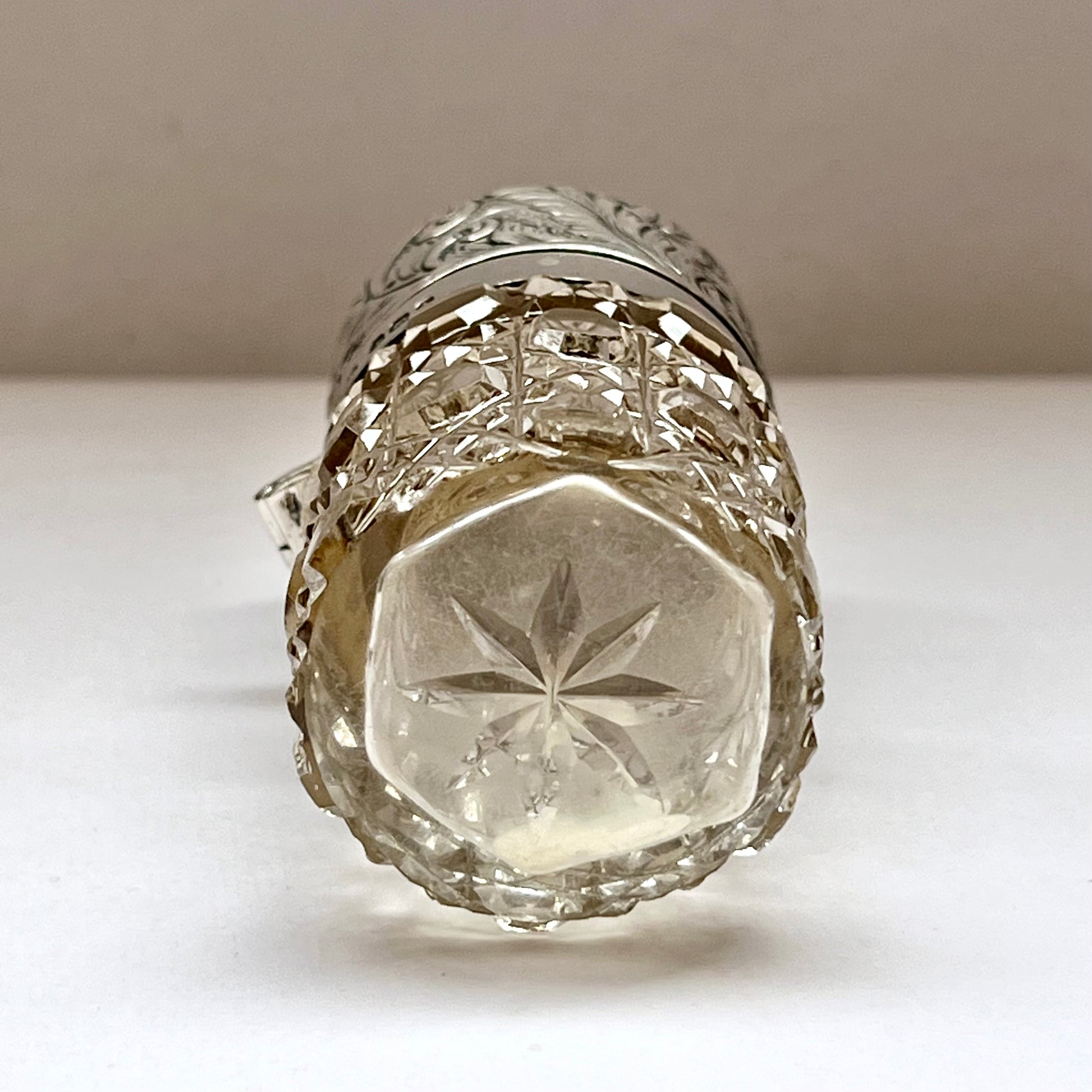Antique Edwardian cut glass and sterling silver scent bottle, London 1910