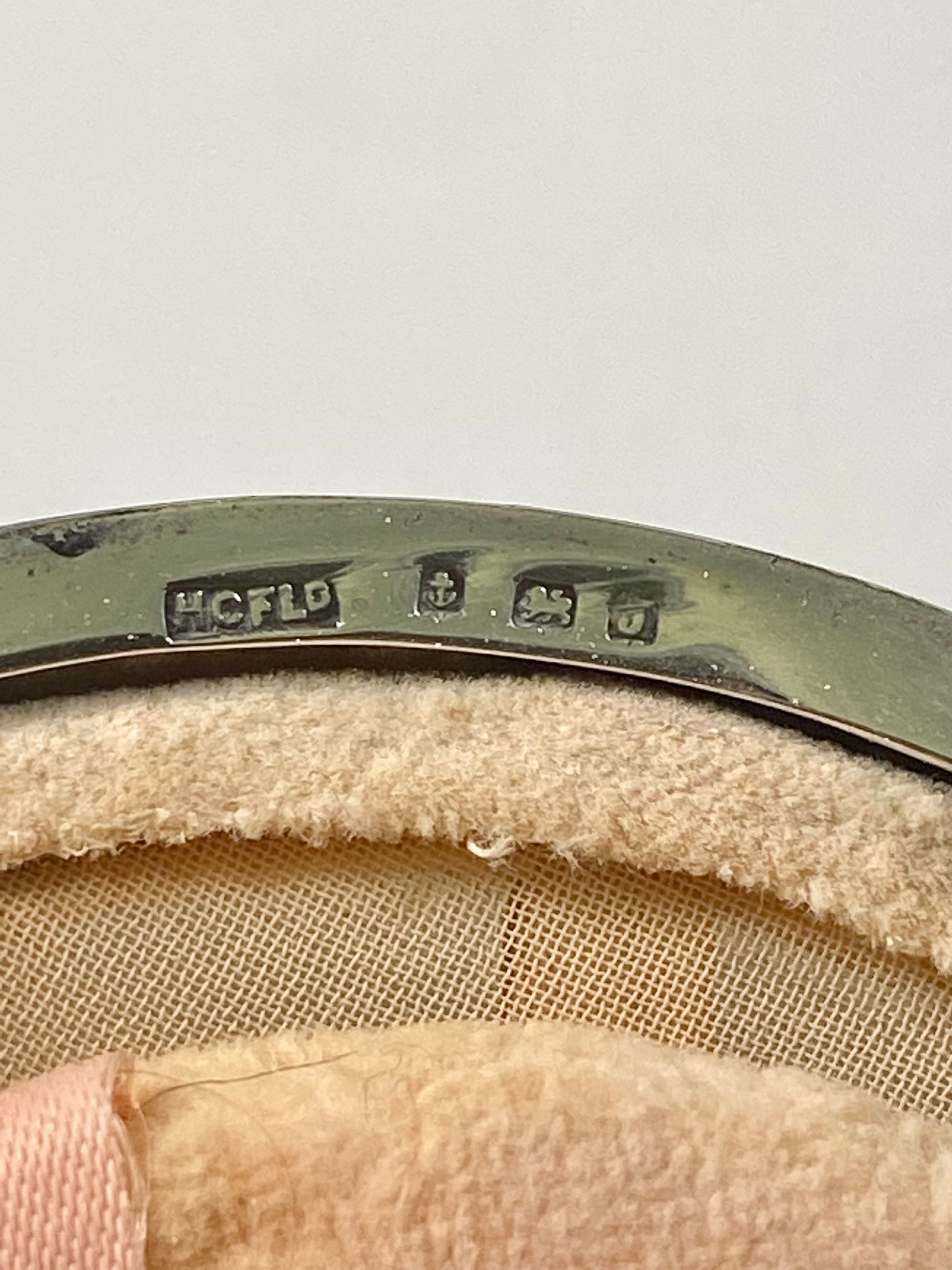 Assay marks for Birmingham 1933, HC Freeman Ltd. Henry Charles Freeman was a noted silversmiths and retailer in Hatton Garden, London. Founded in the late Victorian period, the Freeman name was a mark of good taste and excellent quality; they also imported small luxury goods from Europe, but this particular piece is a fine example of British sterling silver.