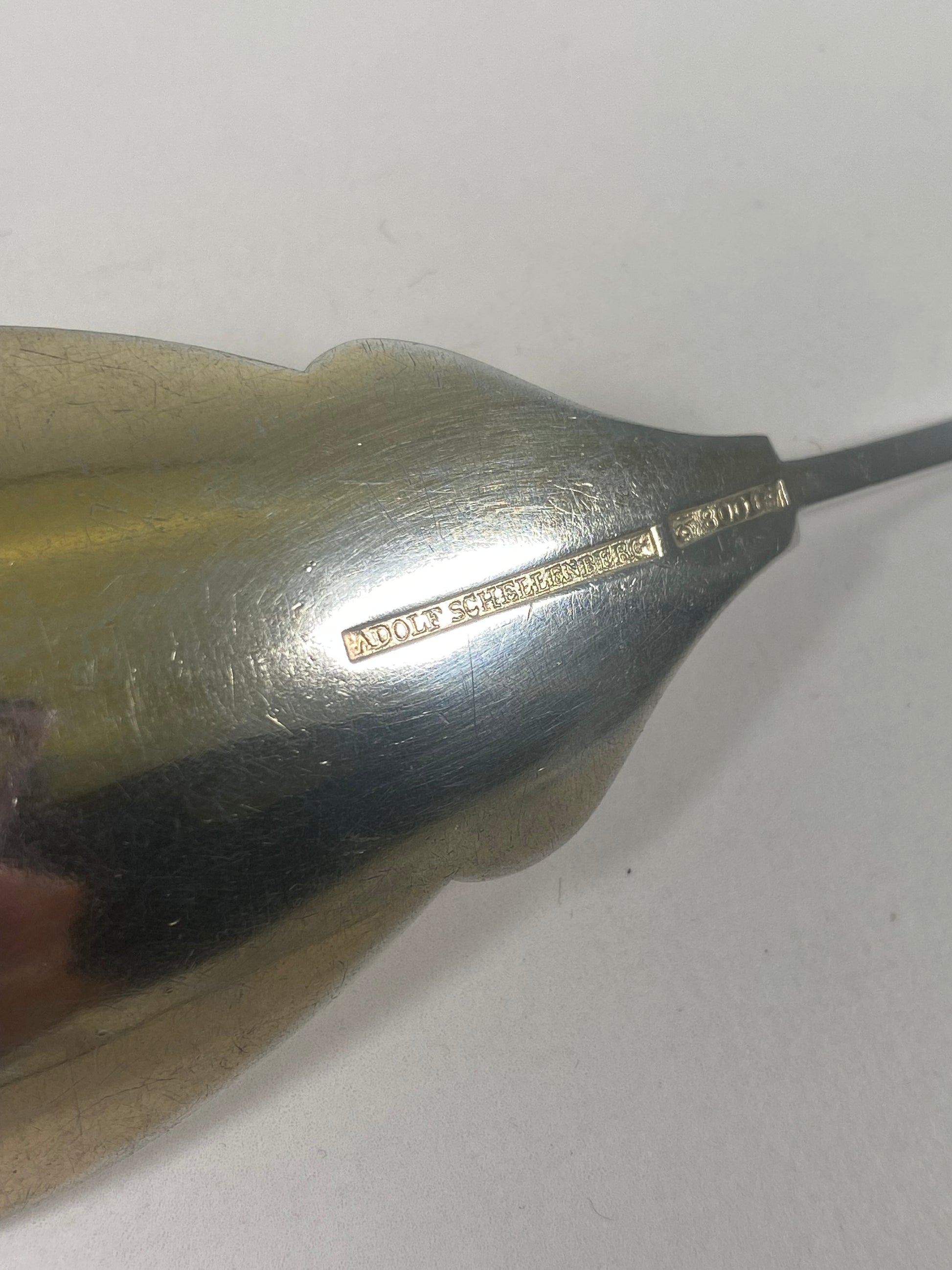 Fine antique Jugendstil German .800 silver serving spoon. Marks for Adolf Schellenberg (Emil Adolf Ludwig Sch.) who was active 1886-1904.
