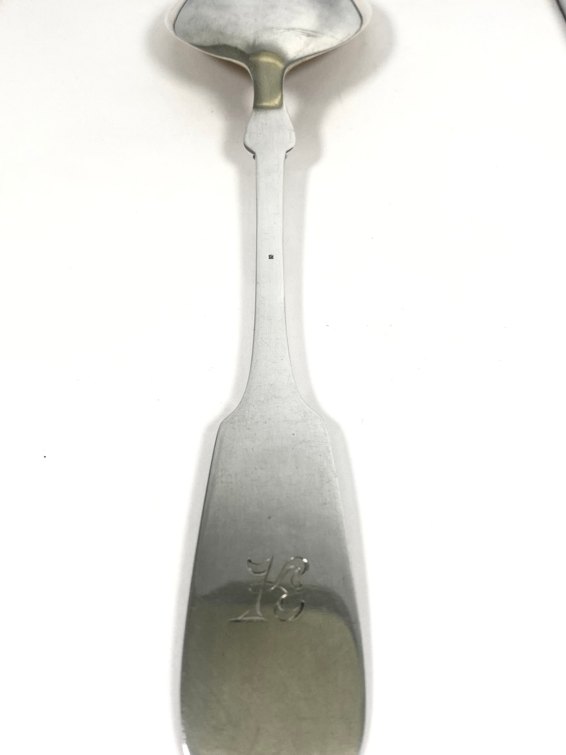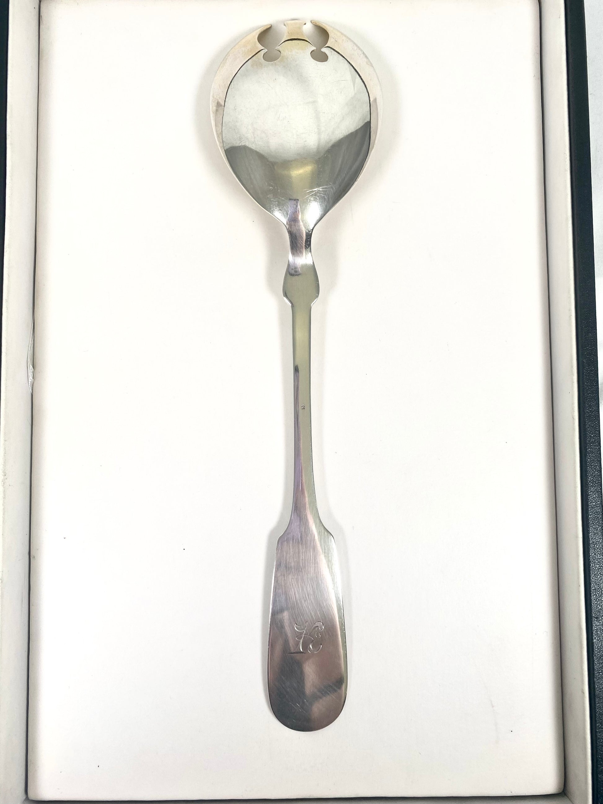 A finely made .800 silver salad server with gilt-washed interior bowl . A substantial piece with well-balanced handle. We believe this to be German/Austrian origin and circa 1900. Very much in the Jugendstil style which was en vogue at that time. Monogrammed with a “K” to the back.