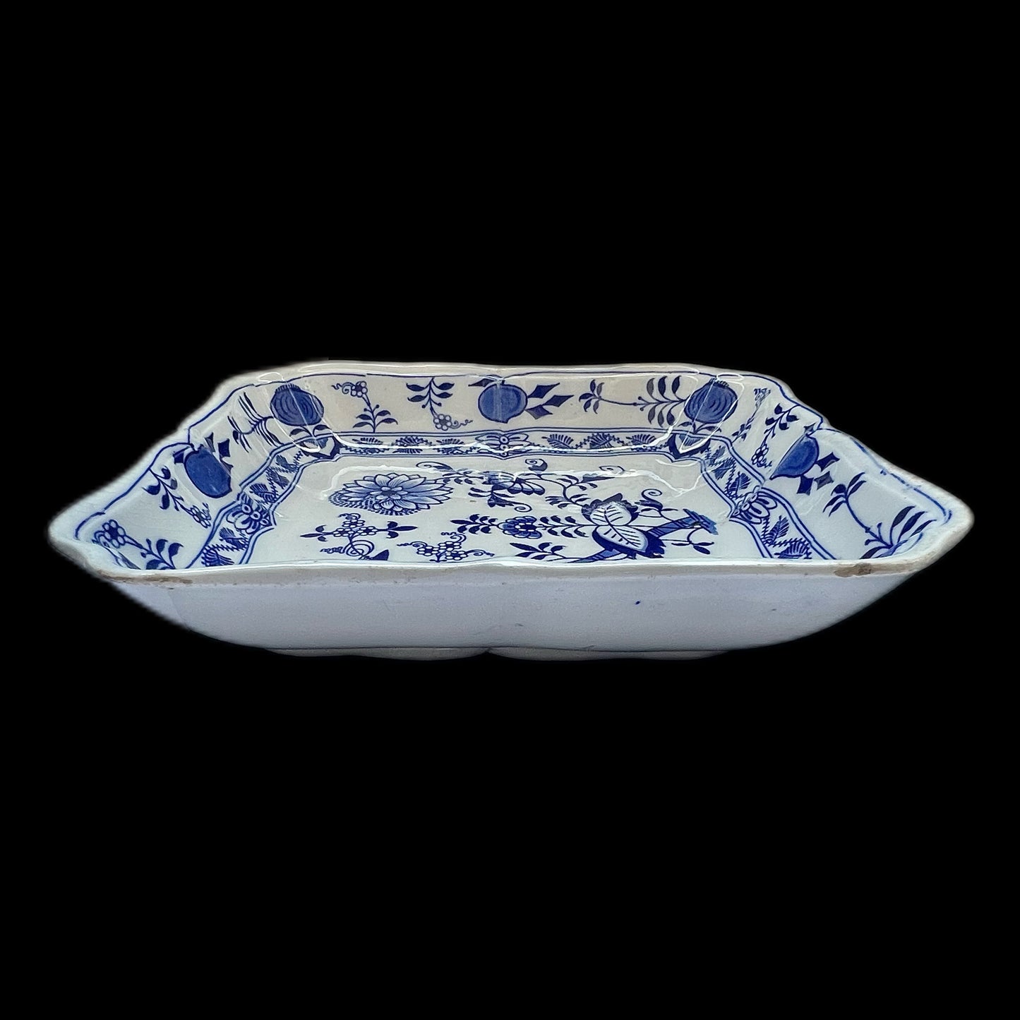 Antique Lewis Strauss & Son's blue and white transferware square serving dish in Blue Meissen pattern