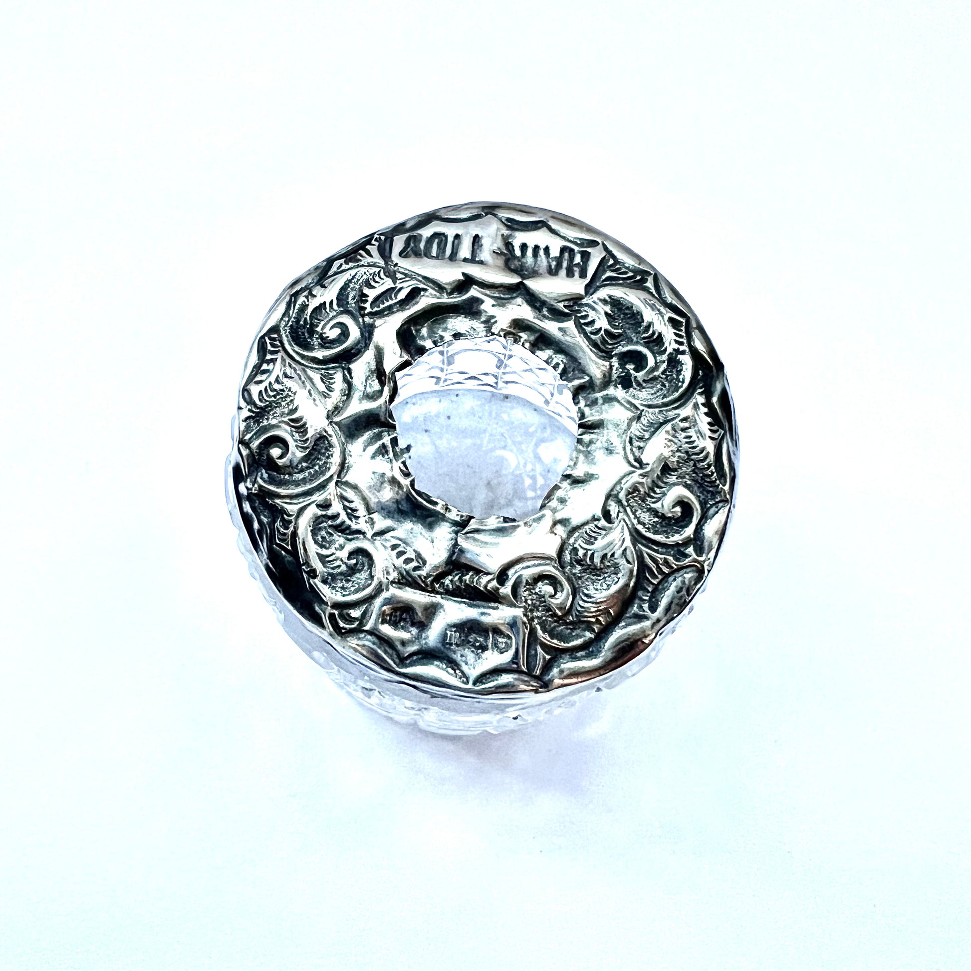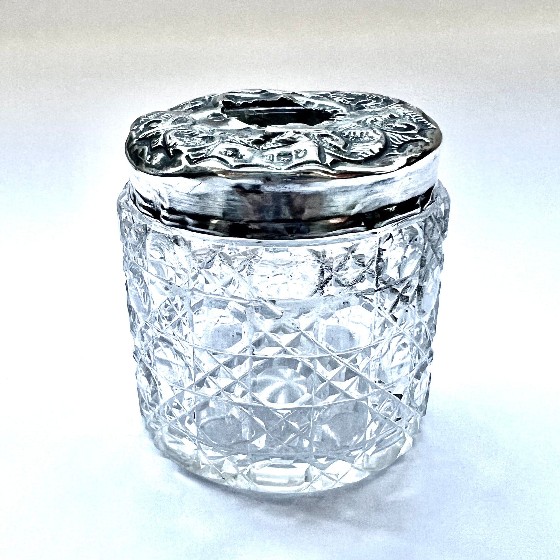 Antique sterling silver and crystal hair tidy, keeper or receiver circa London, 1907