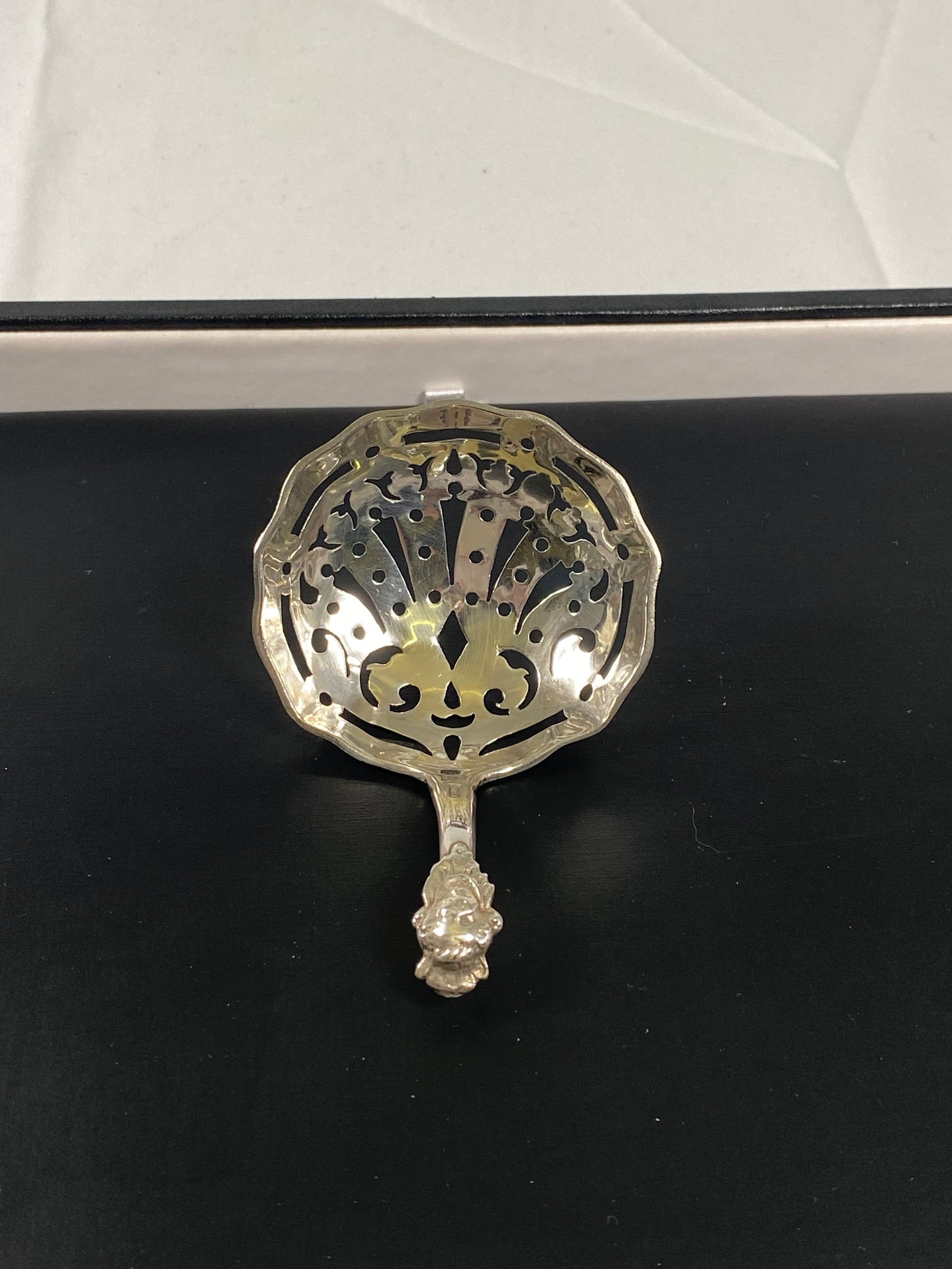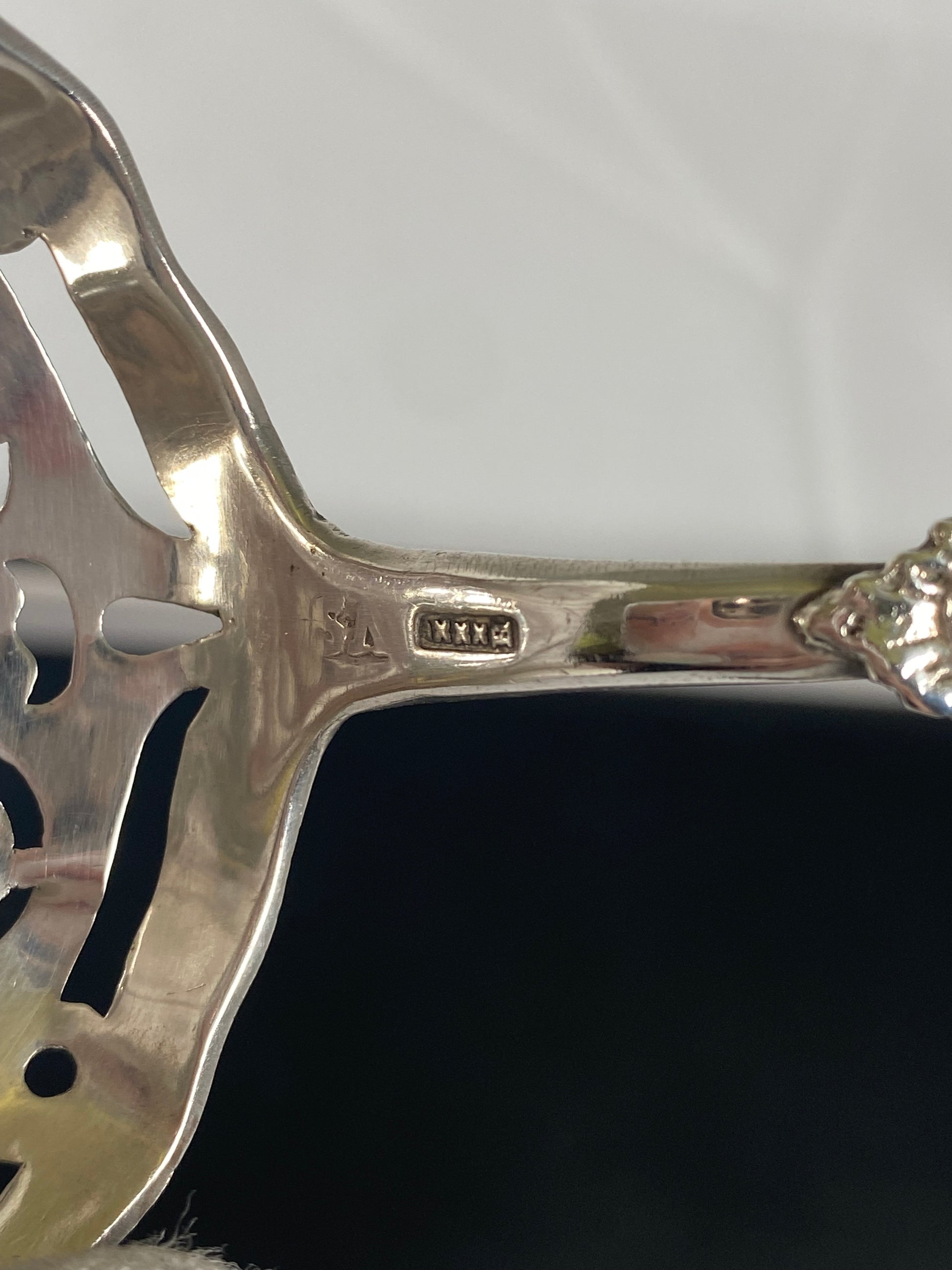 A lovely and useful tea strainer of .835 silver. A fine pierced neo-classical design which serves both decorative and functional purposes. Excellent quality with makers’ marks for J. Vos & Co 1918, which was active from 1915-1919 in Haarlem, Amsterdam.