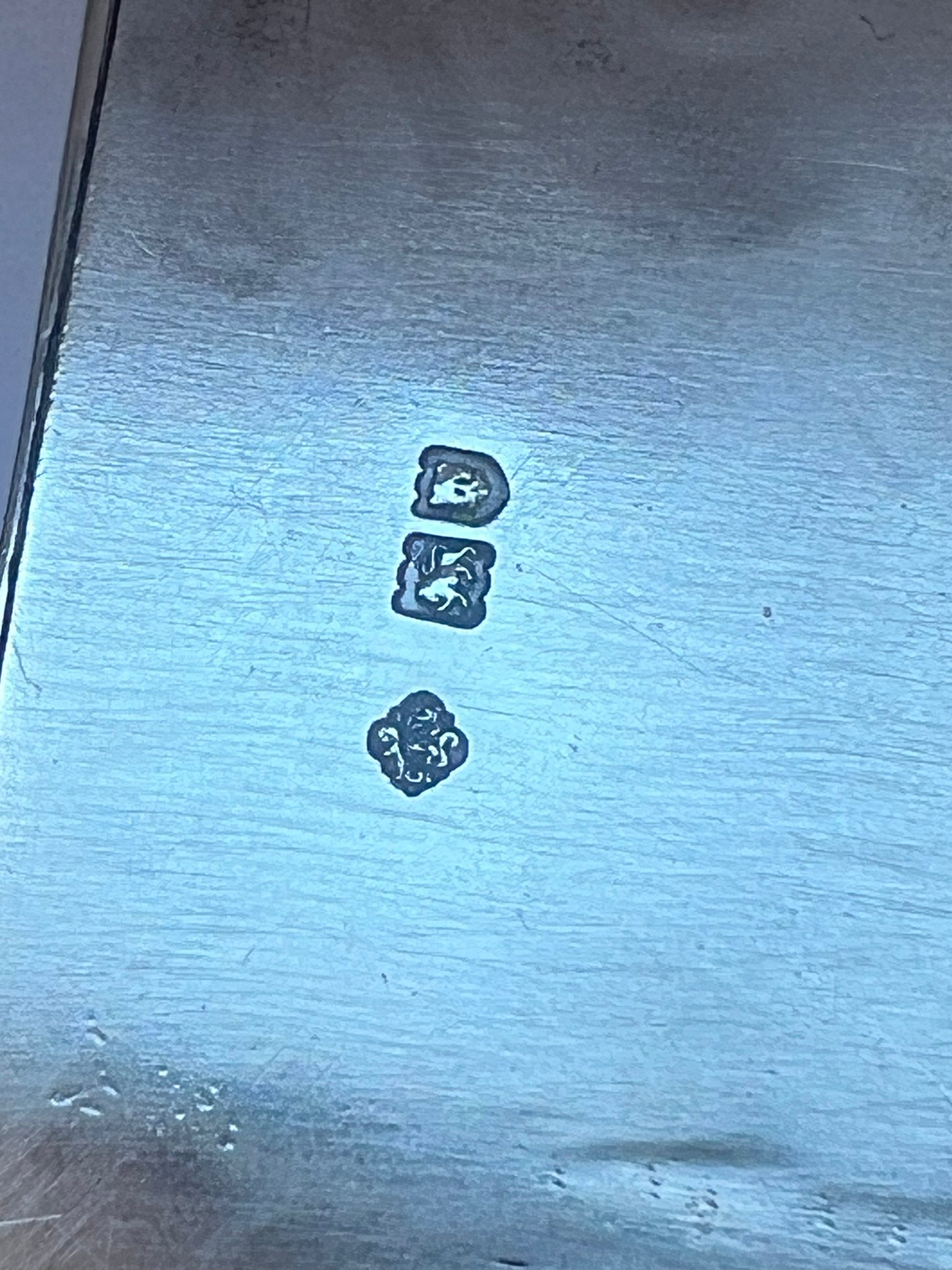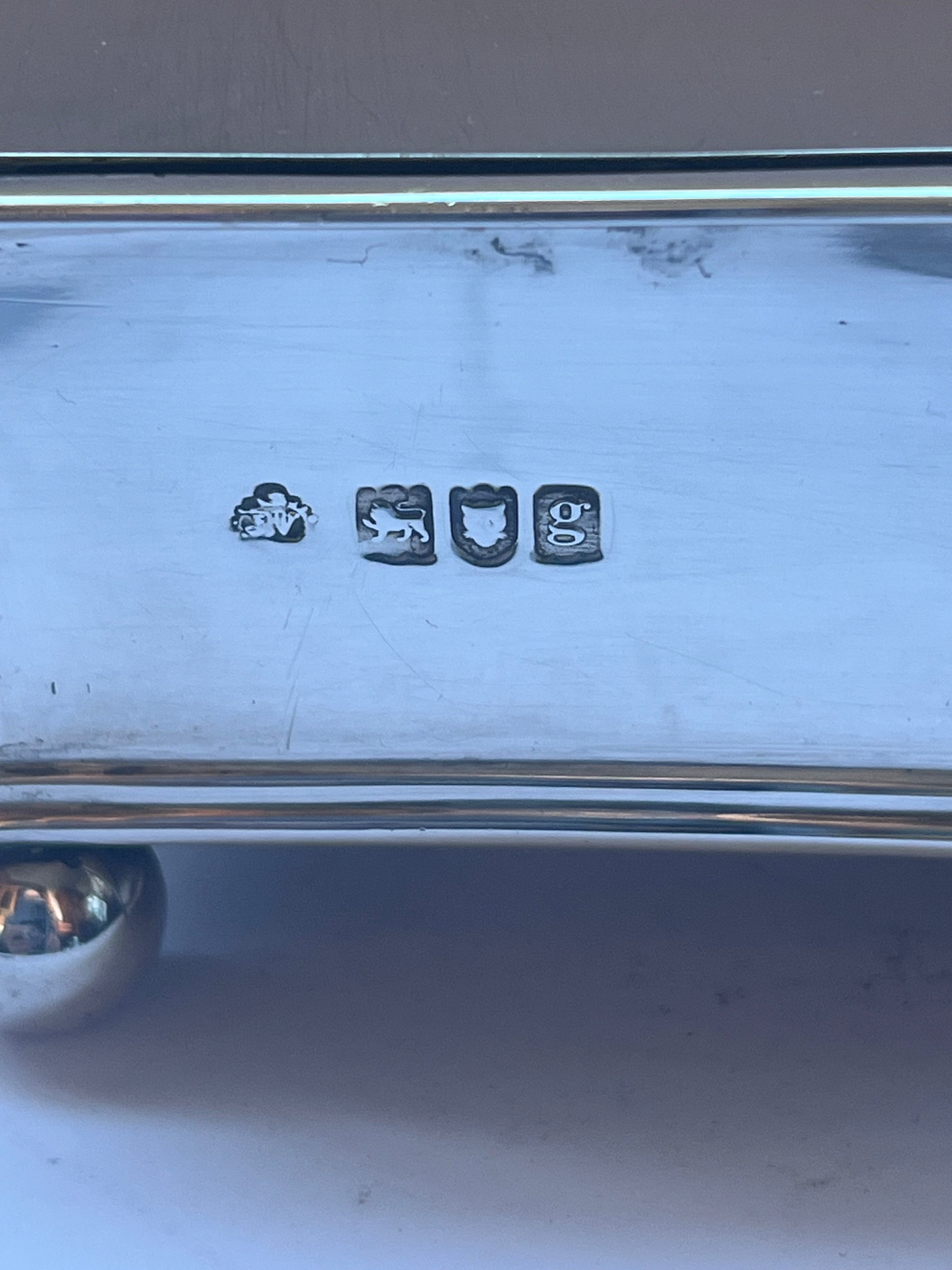 Measurements: 22.2cm length, 14.1 cm width, 5.2 cm height. 525 grams silver weight.