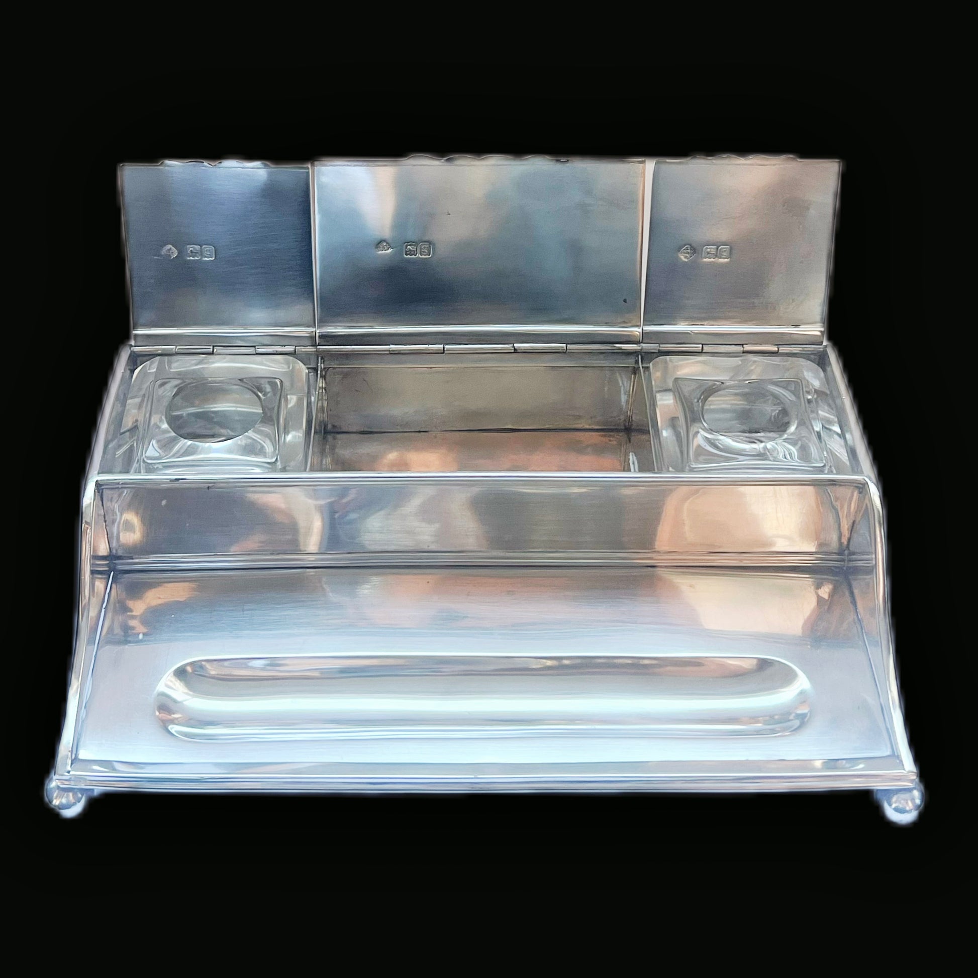 Edwardian sterling silver desk standish, C.F. Hancock & London, 1902
