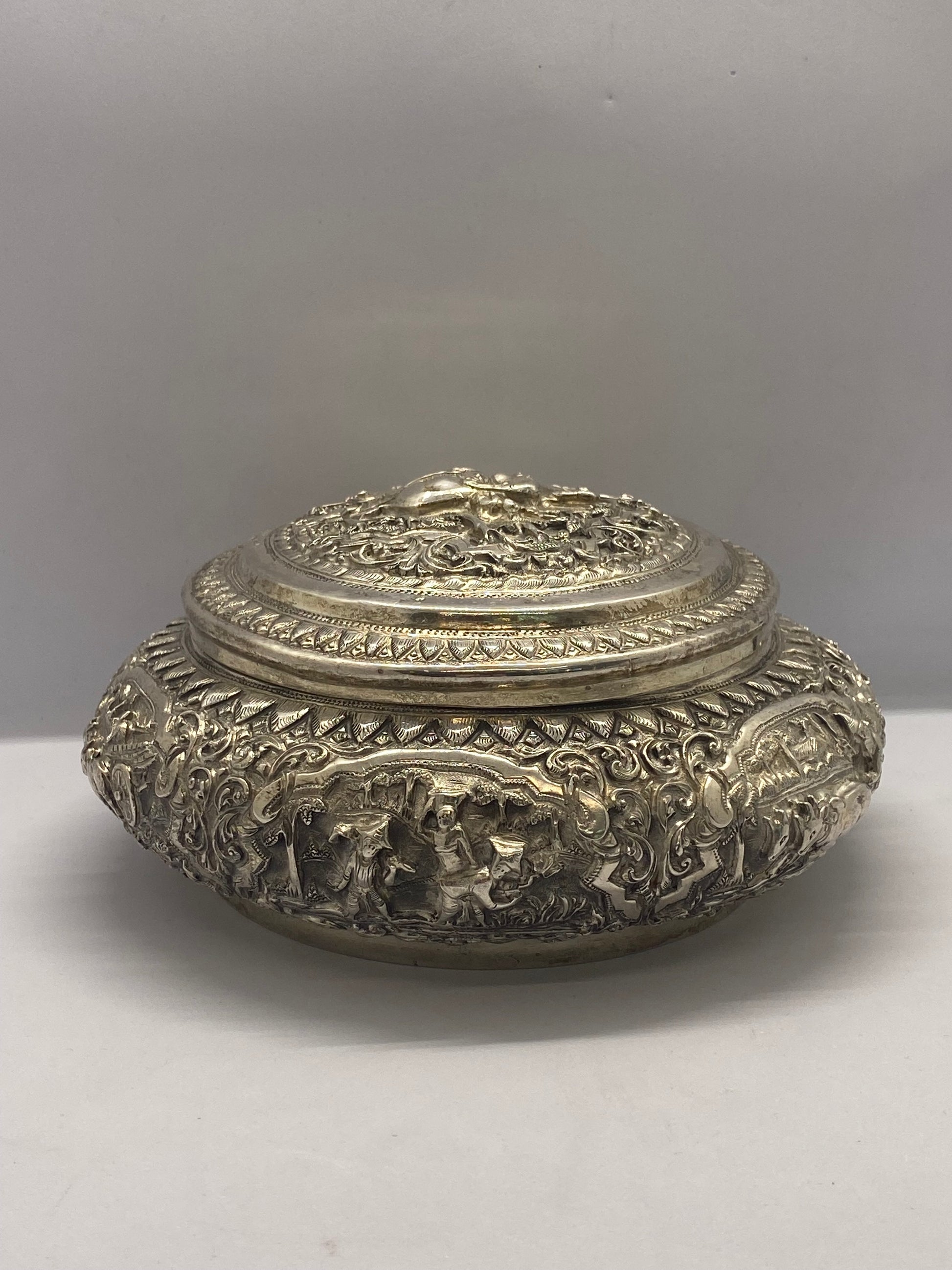 Indian Silver Repousse Lidded Trinket Box