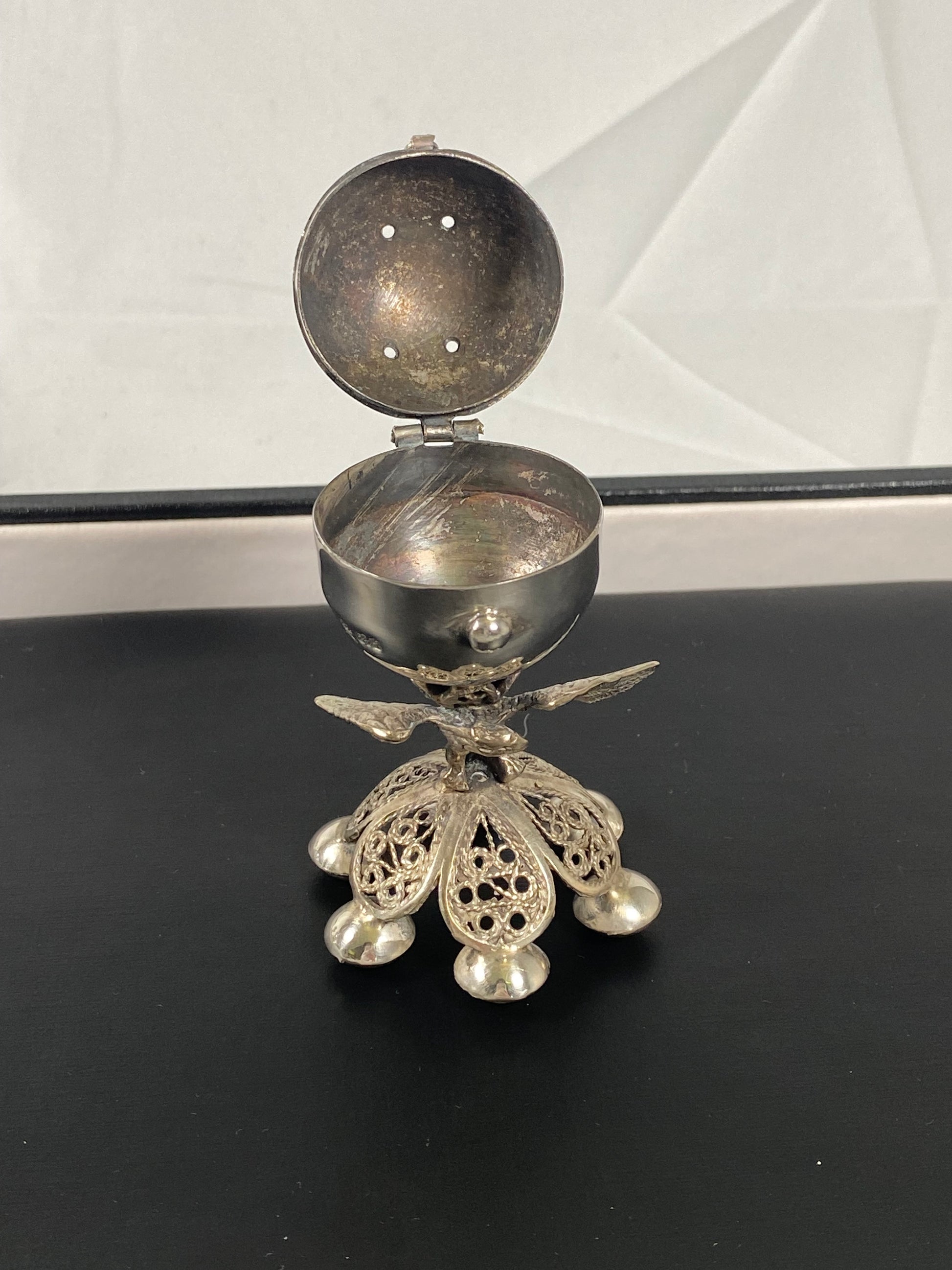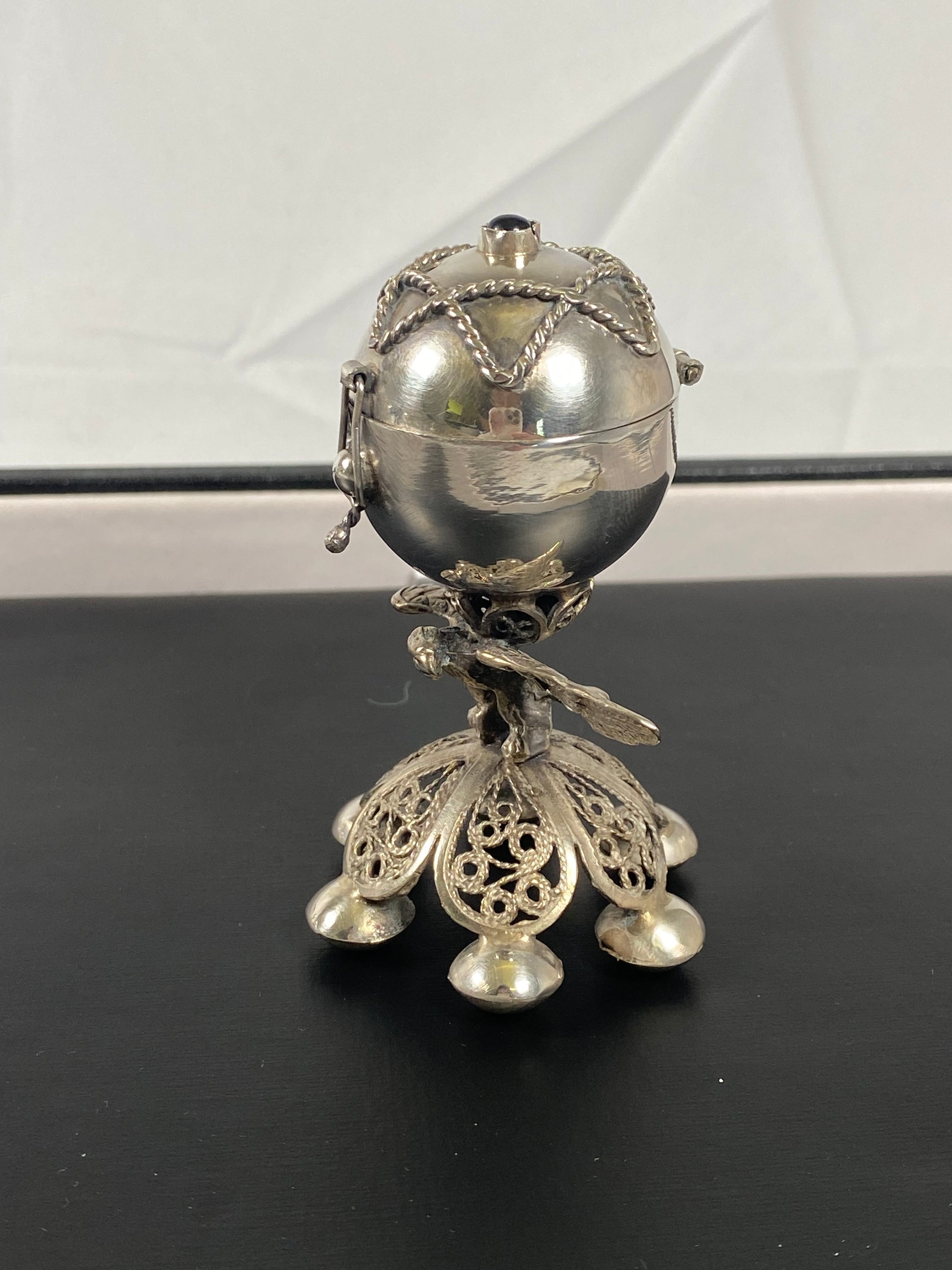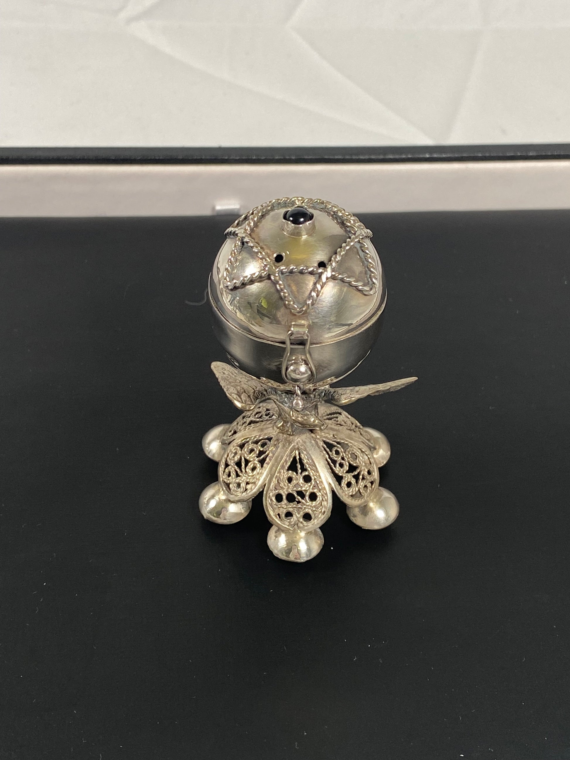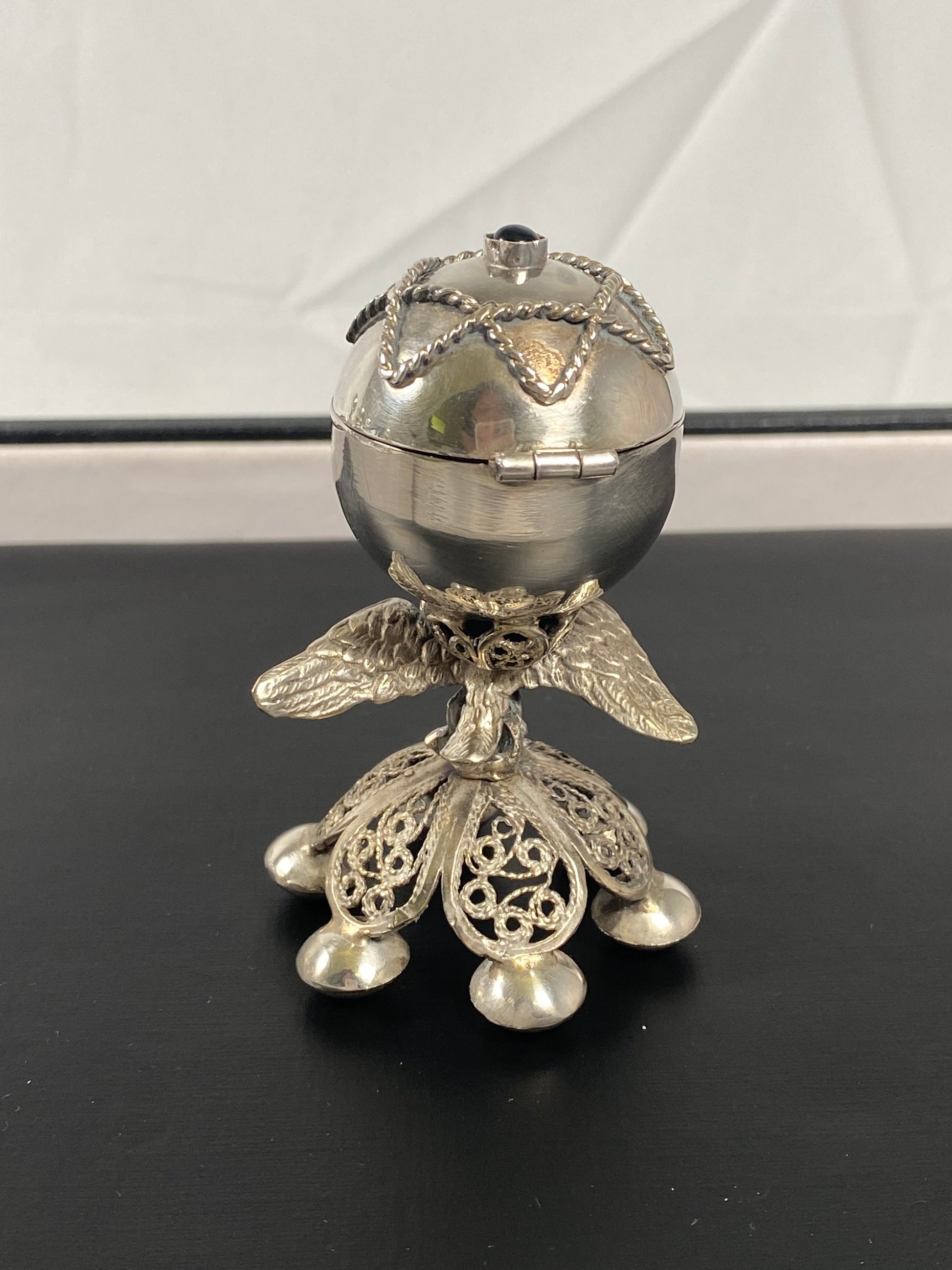 The spice box (or besamim) in used during the Havdalah, a Jewish ritual that marks the end of the holy Sabbath, in which a special candle and spice essence are used for blessing, and the spice smelling is perceived as enhancing the Jewish spirit after the pleasantry of the Shabbat before returning to daily routine.