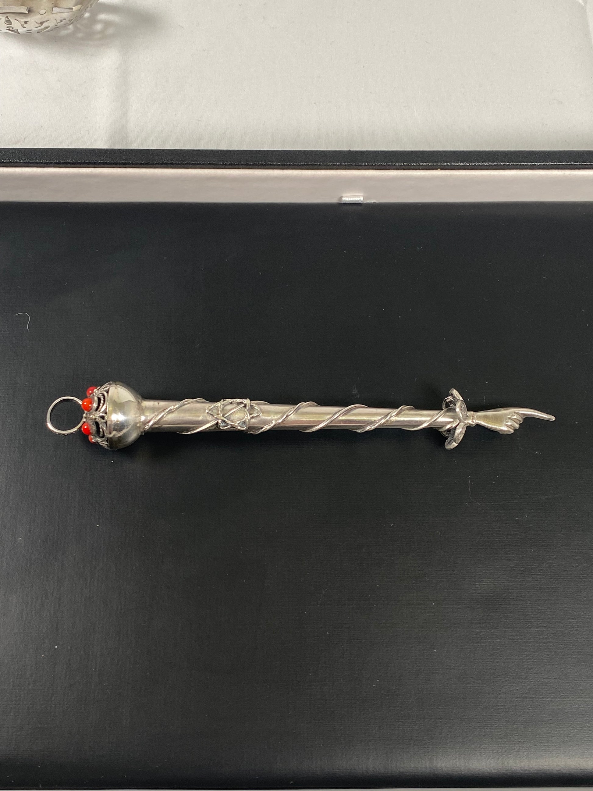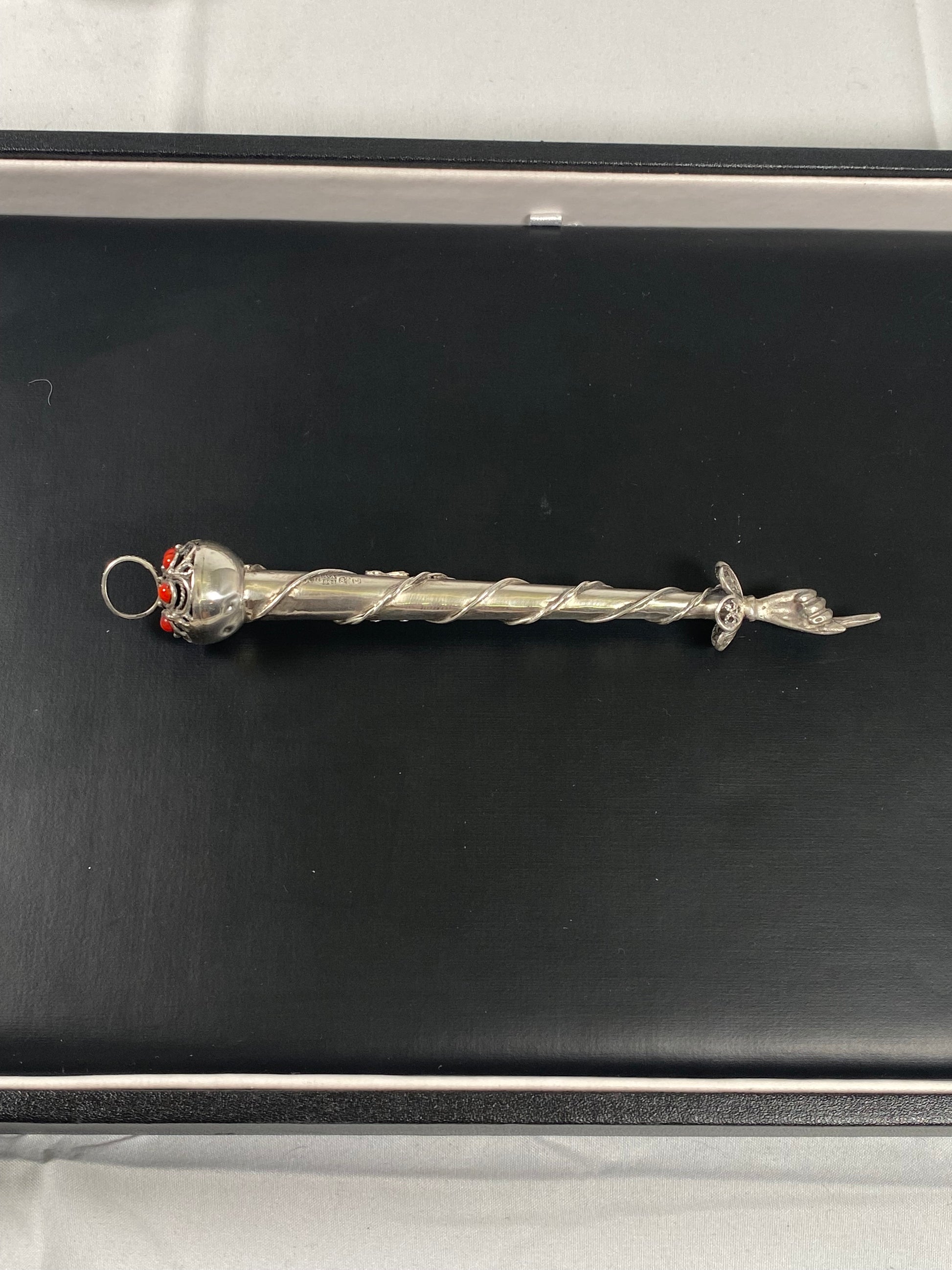 This silver torah pointer (Yad) was made in Russia circa 1894.