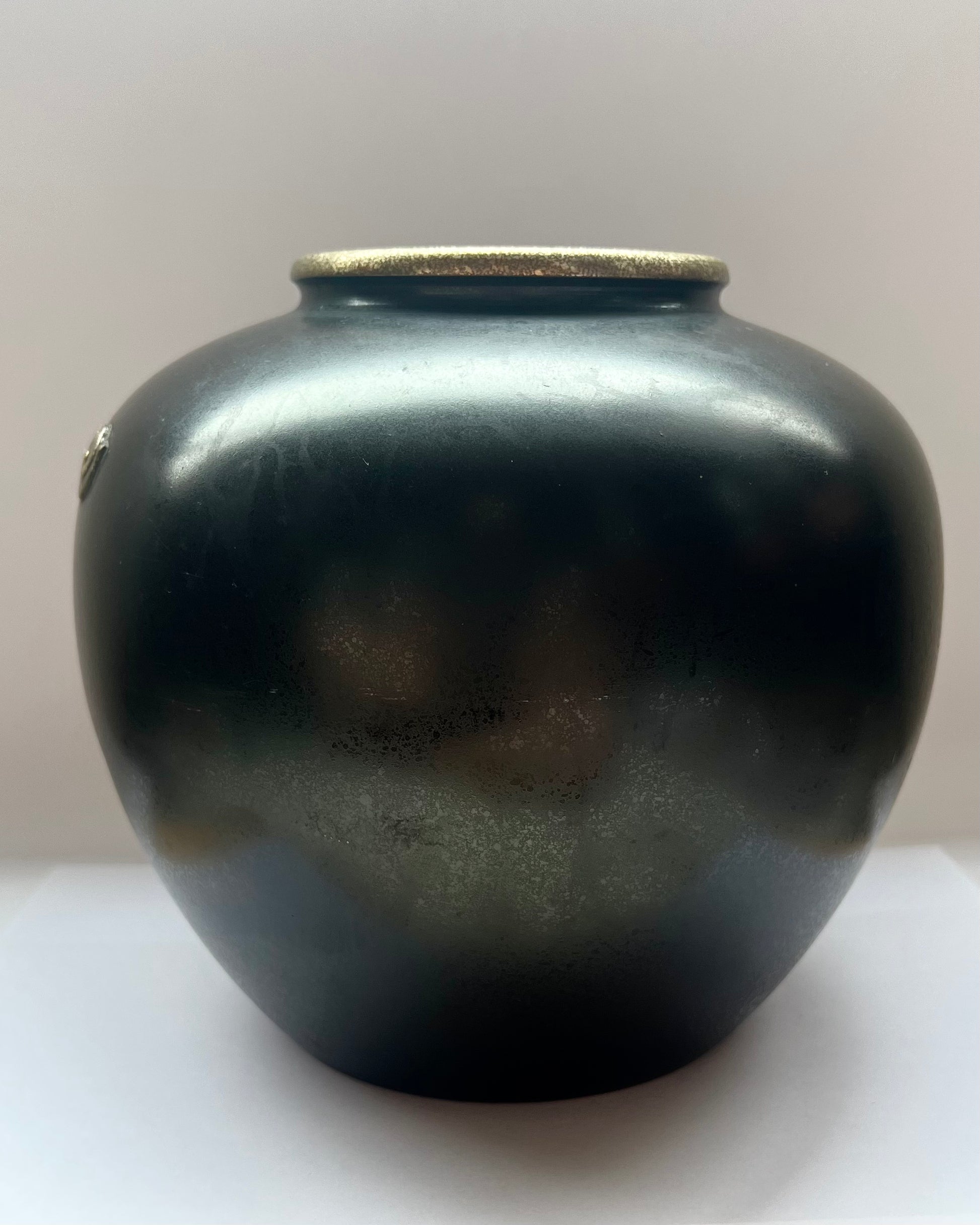 An exceptional piece with excellent craftsmanship, with an interior metal flower frog which would have been of great use in the Japanese floral arrangement art ikebana.