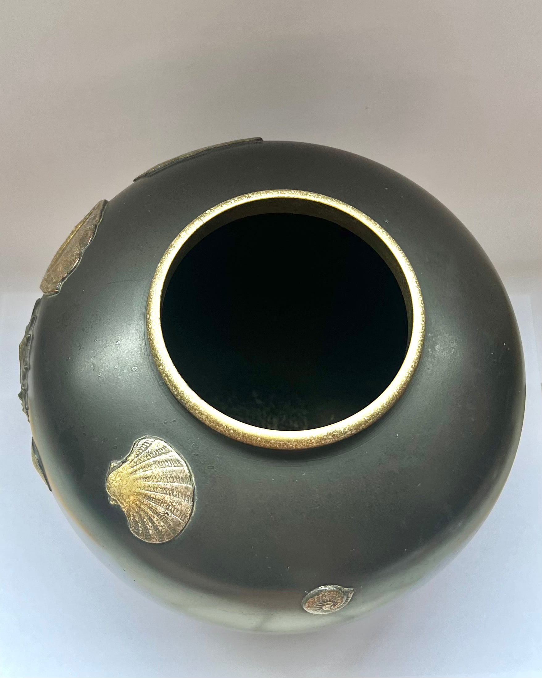 Late Meiji Period Japanese bronze vase with gilt seashell motifs circa 1900s