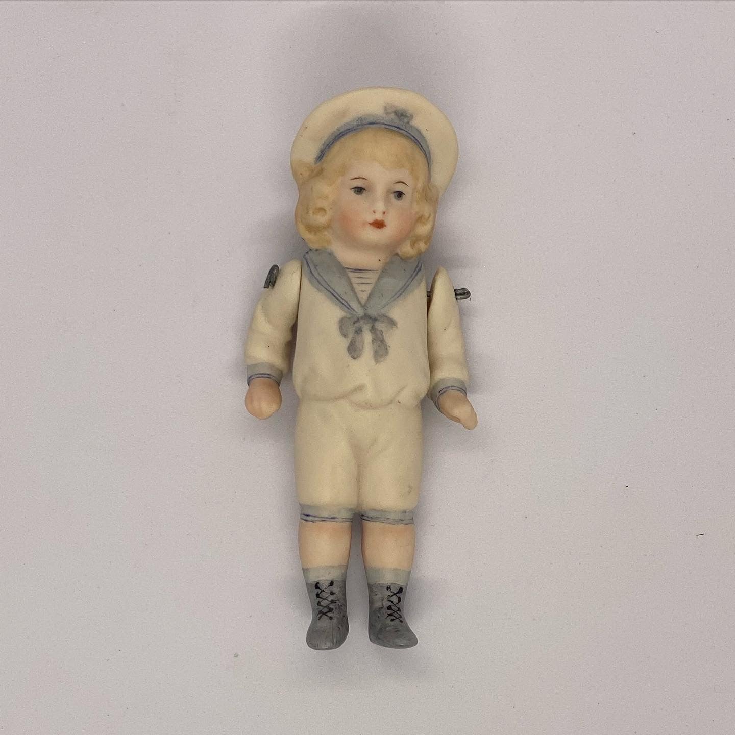 Today we have something for porcelain and doll collectors; this Hertwig German sailor boy is a charmingly small bisque porcelain doll.