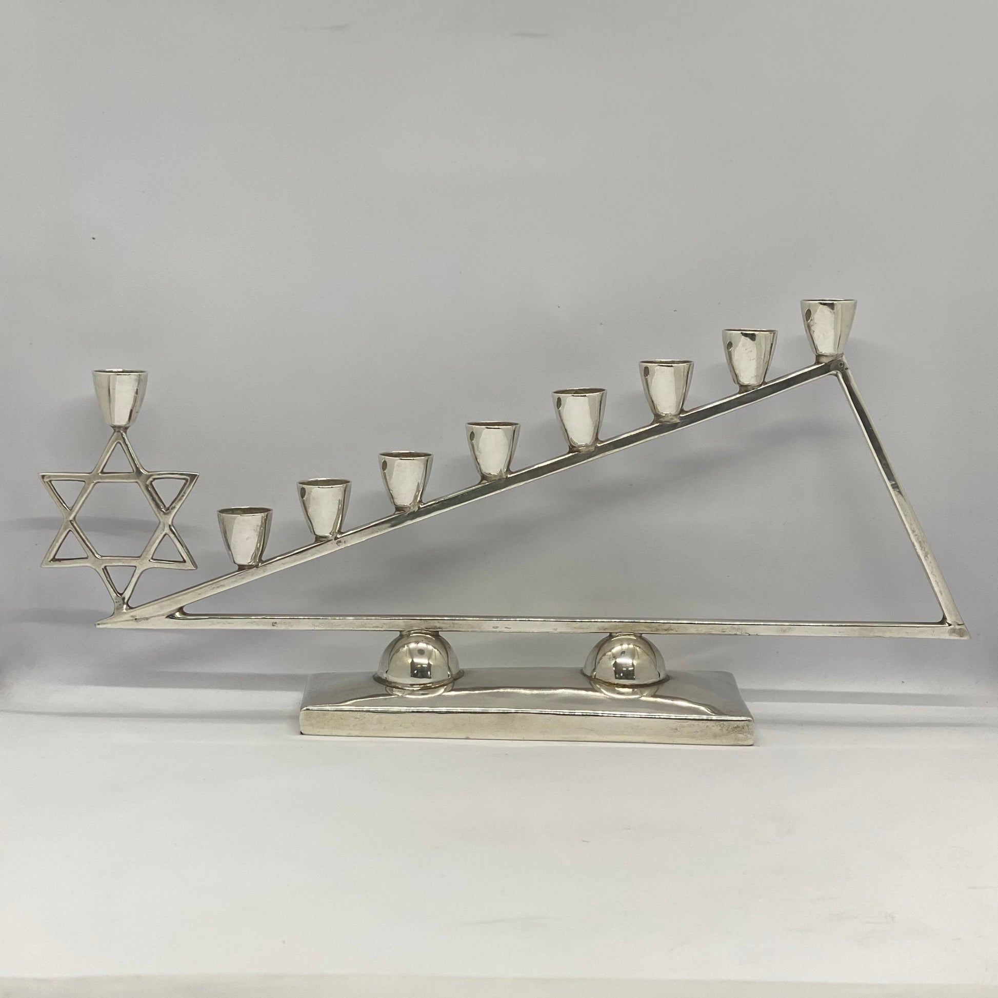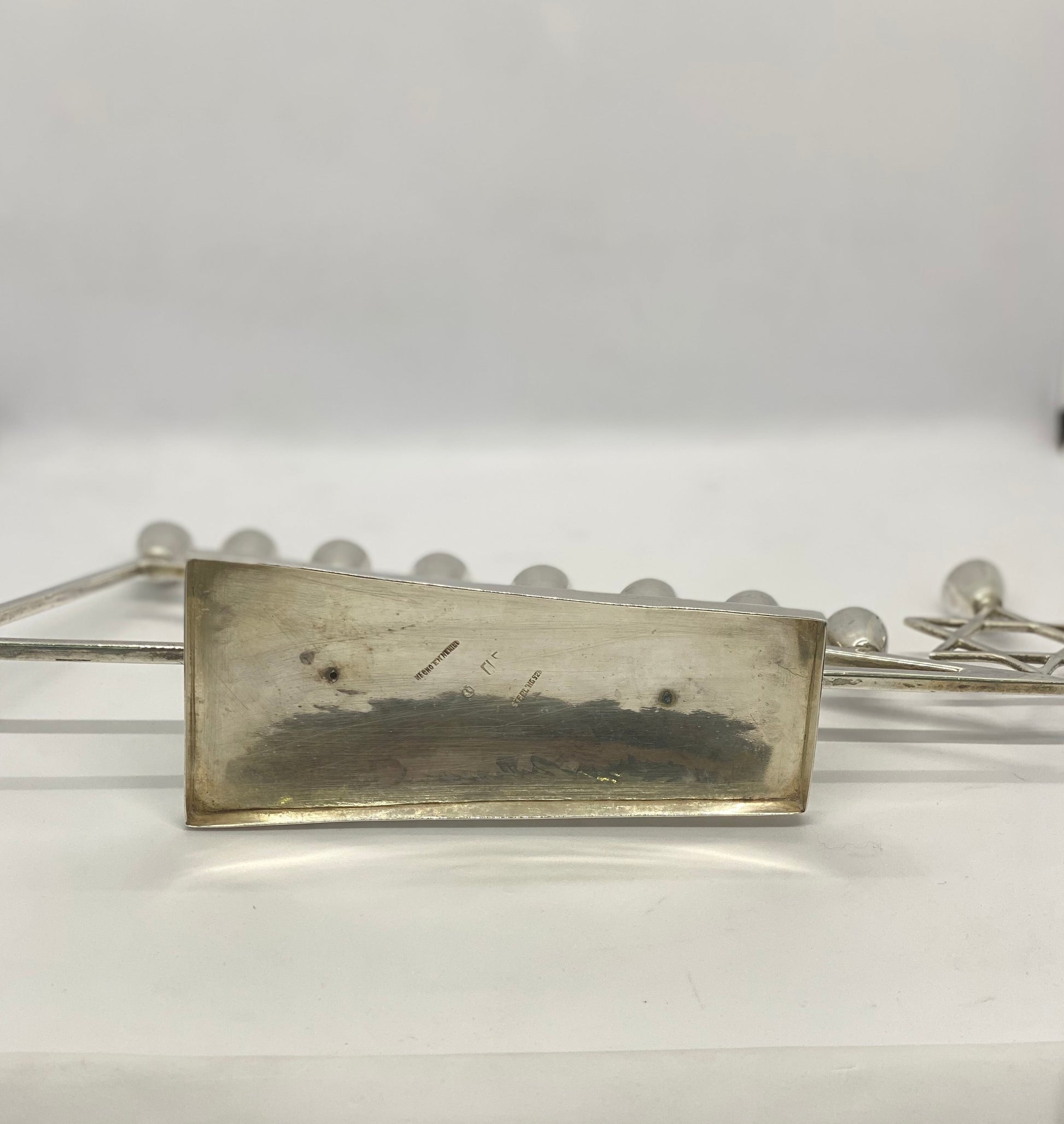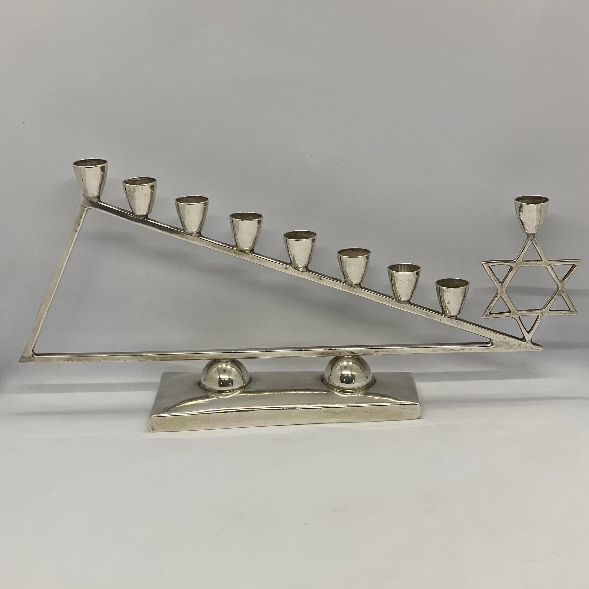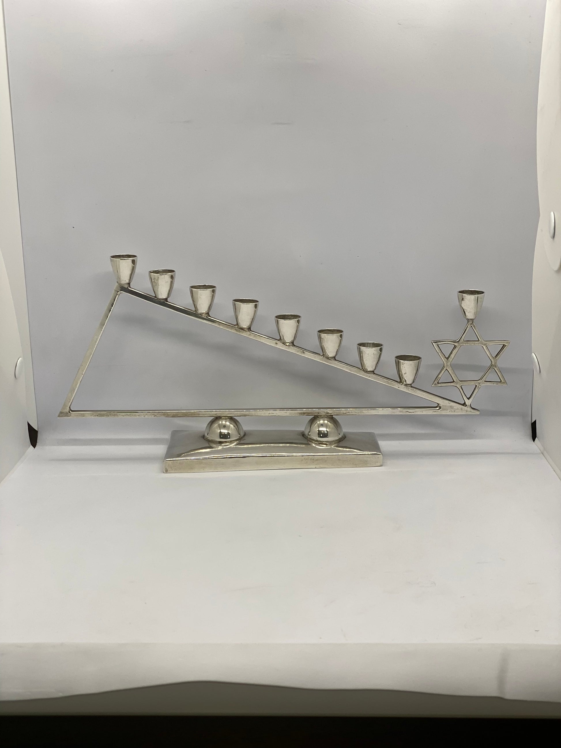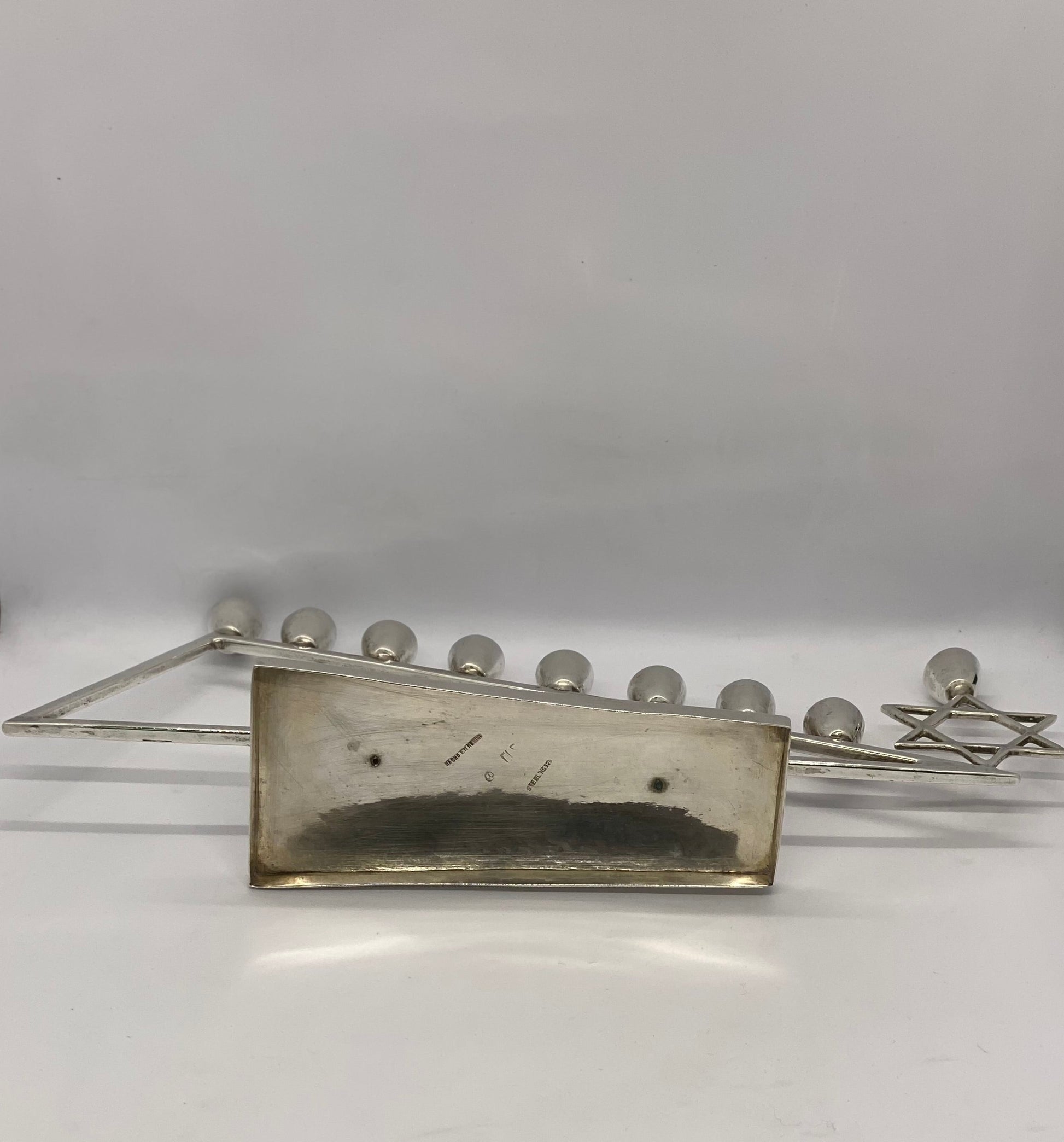 Fantastic mid century Mexican silver menorah with hallmarks indicating it was made between 1948 to 1978 in Mexico City.
