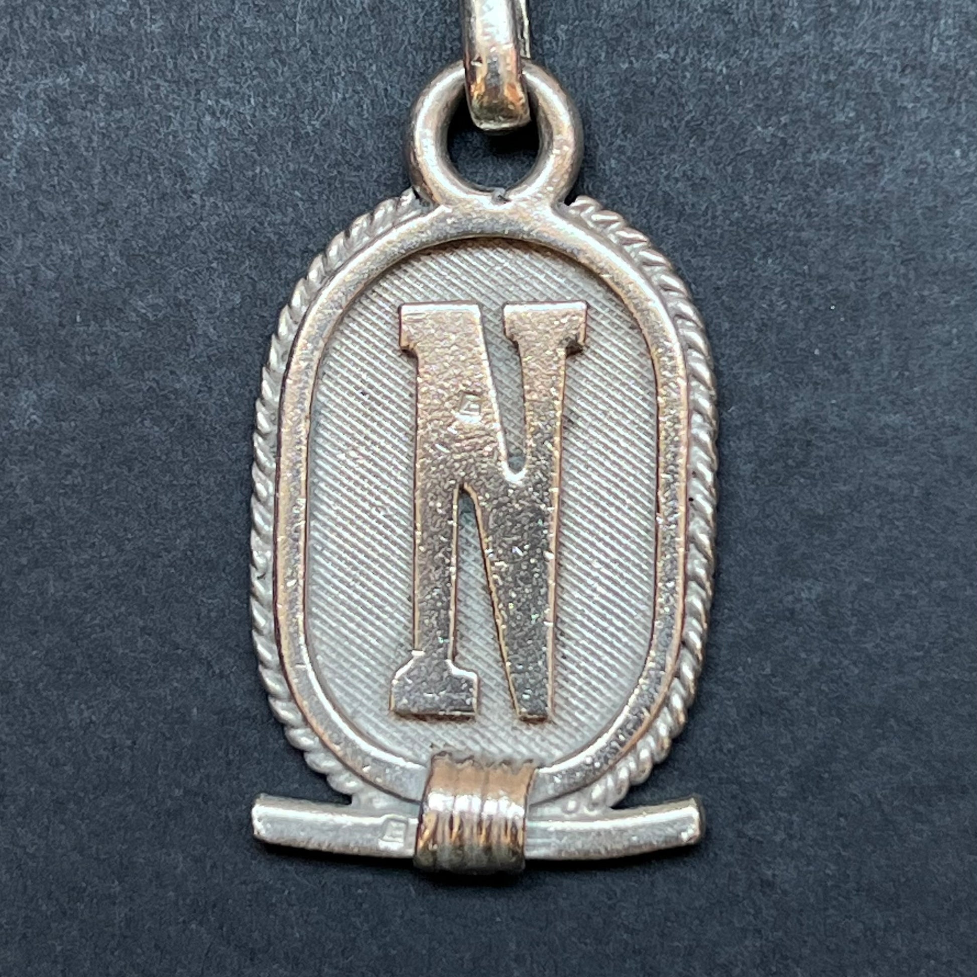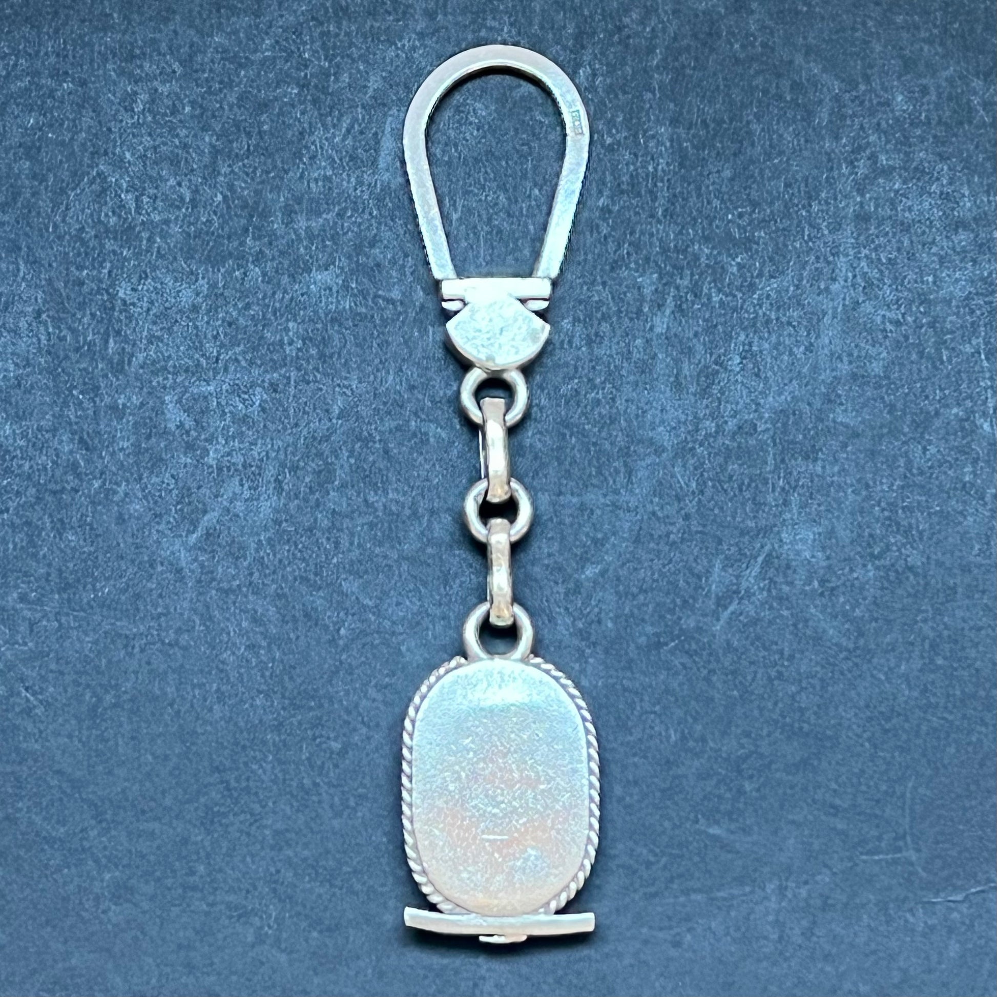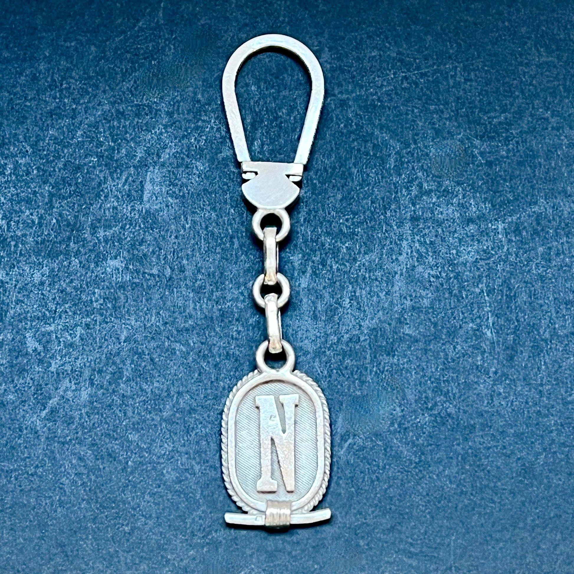 A substantial Egyptian silver keychain, with hallmarks for .800 silver purity, and assay marks likely Cairo circa 1960s to 70s. The initial N is stamped on top and fine engine turned details. A well made and would make a lovely present for someone with N in their initials.