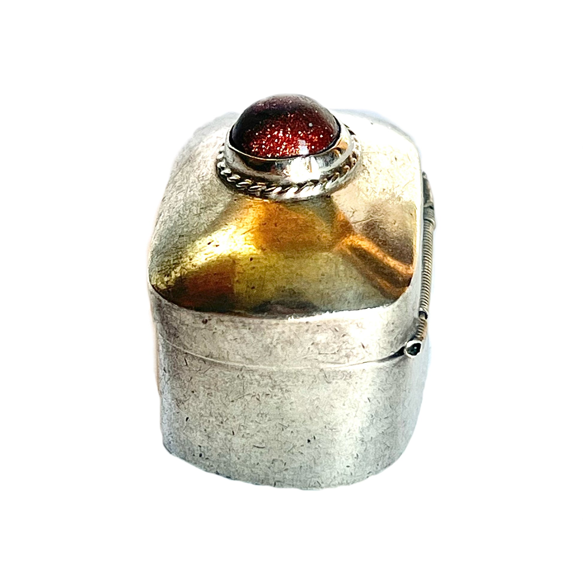 Midcentury Mexican Taxco silver pillbox with goldstone cabochon