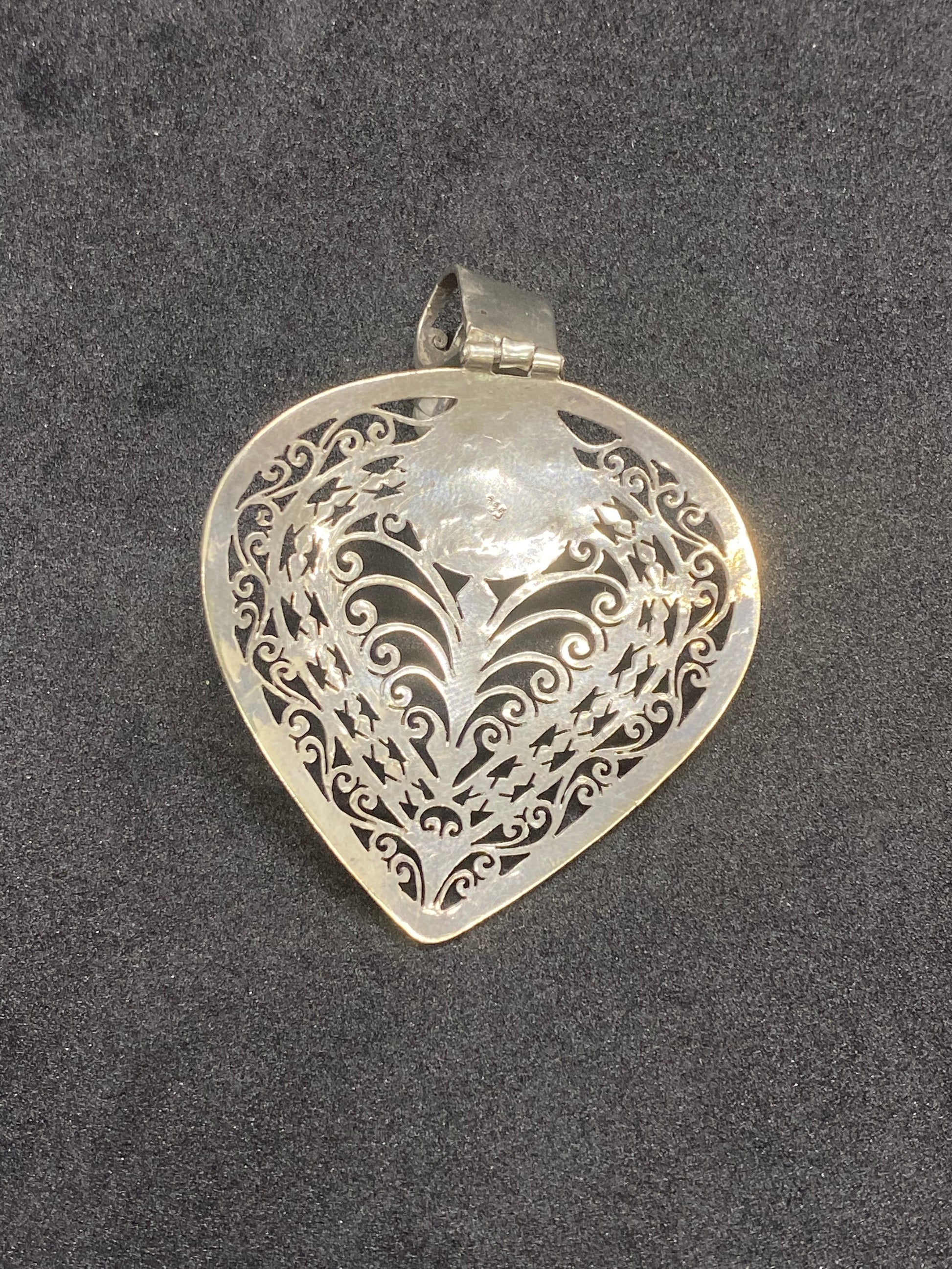 Pearl and stone figural sterling silver pendant. Stone is untested but has a lovely schiller effect. Possibly a lovely quartz or moonstone.