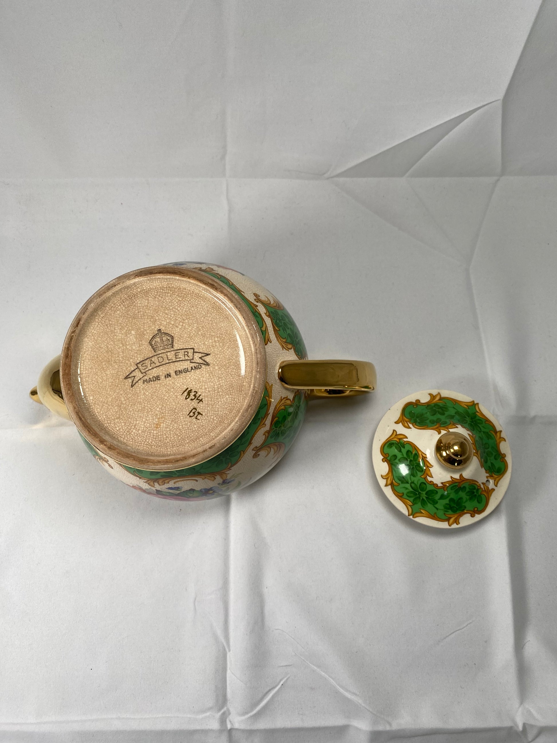 Rare Sadler England Green Floral Teapot, Sugar Bowl & Creamer 3 pc Set