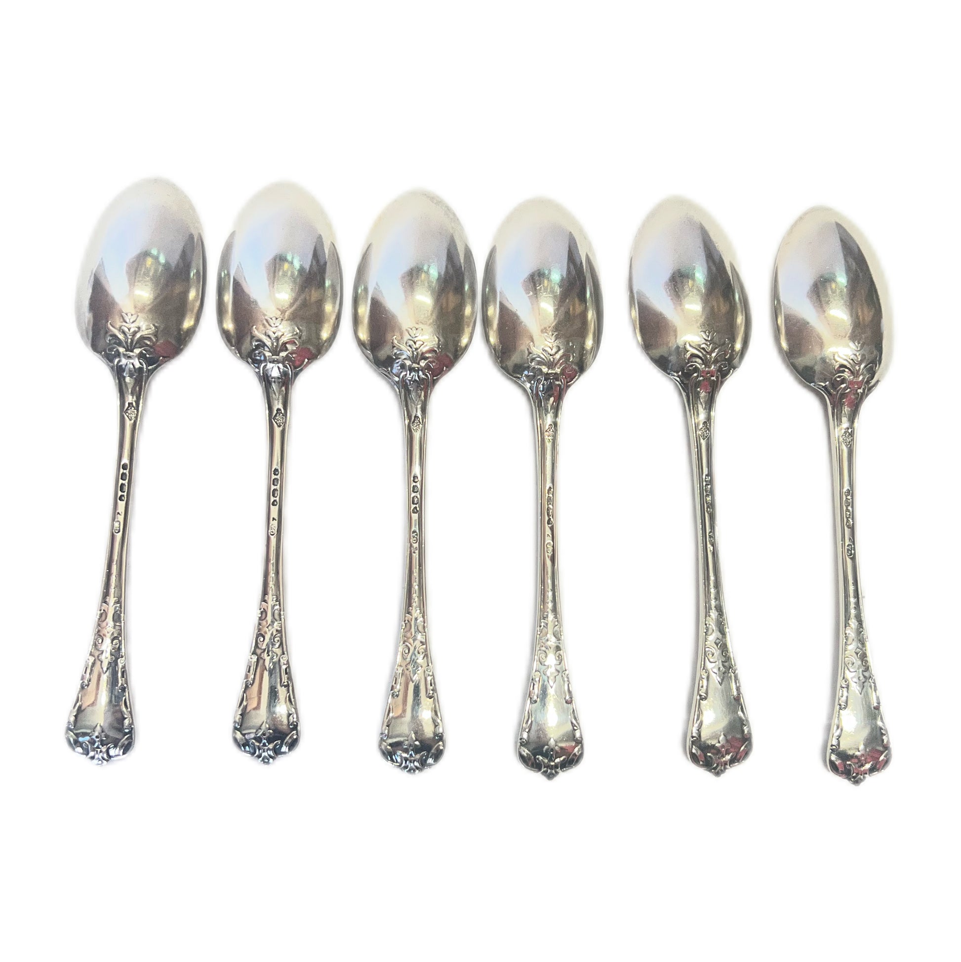 Scarce set of 6 Chawner & Co. antique sterling Straight Tudor pattern teaspoons
