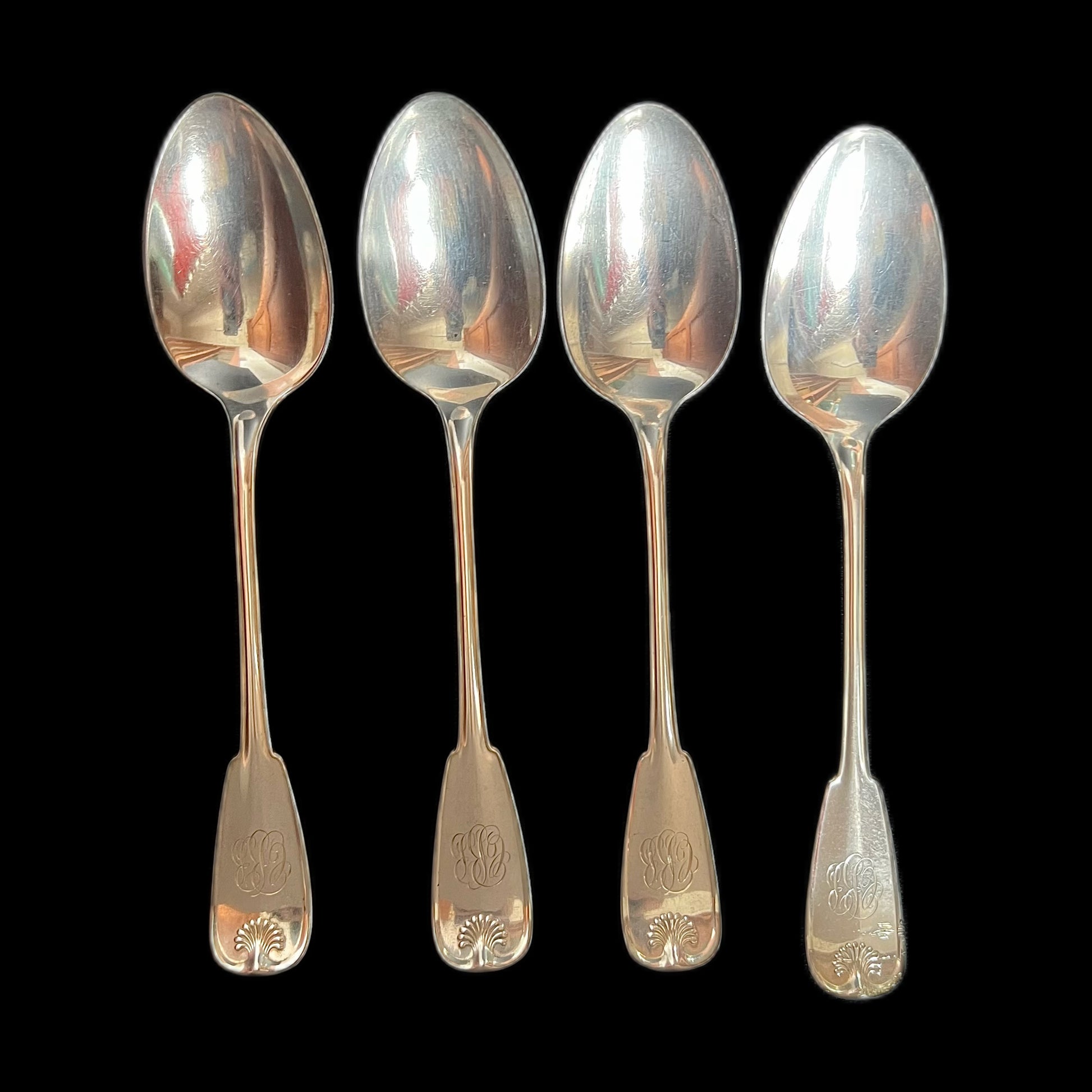 Set of 4 antique Tiffany & Co. Palm Pattern sterling silver table/dessert spoons