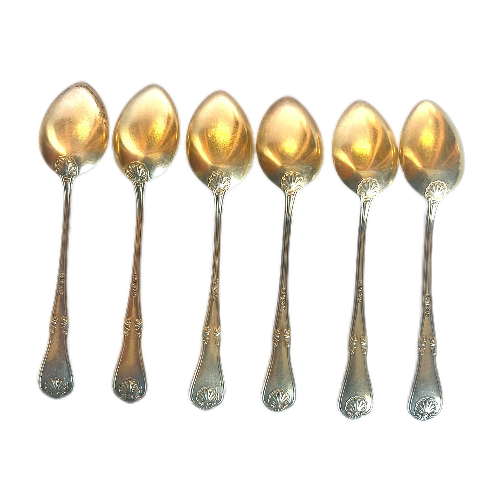 A beautiful set of 6 early to mid 20th century Norwegian .830 gilt silver cocktail spoons with maker’s marks for J. Tostrup, a prolific and popular silverware manufacturer founded in Oslo, 1832 by Jacob Tostrup and still active today.