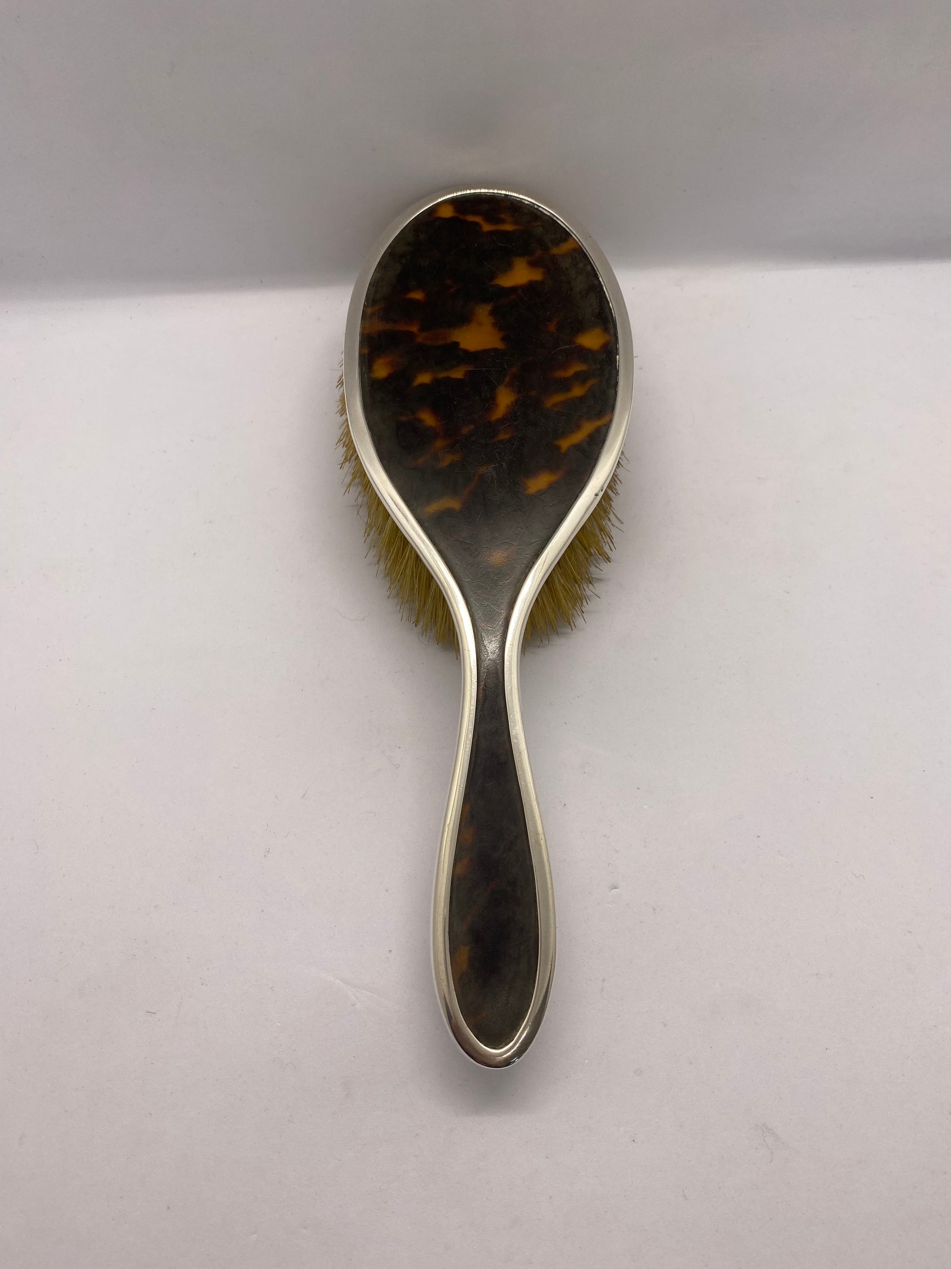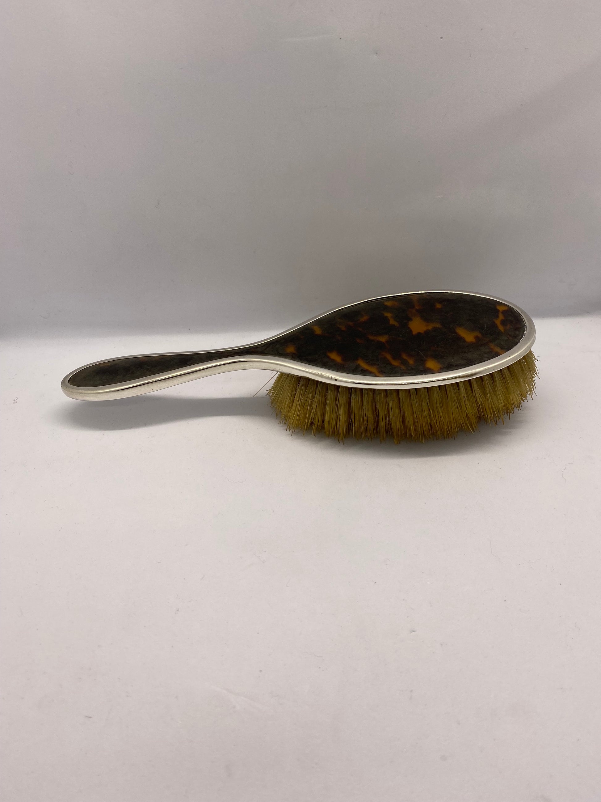Lovely tortoiseshell hairbrush with sterling silver rims, hallmarks for Birmingham, 1922.  By Adie Bros, a luxury jeweller founded in 1879 that also specialised in grooming and table services.