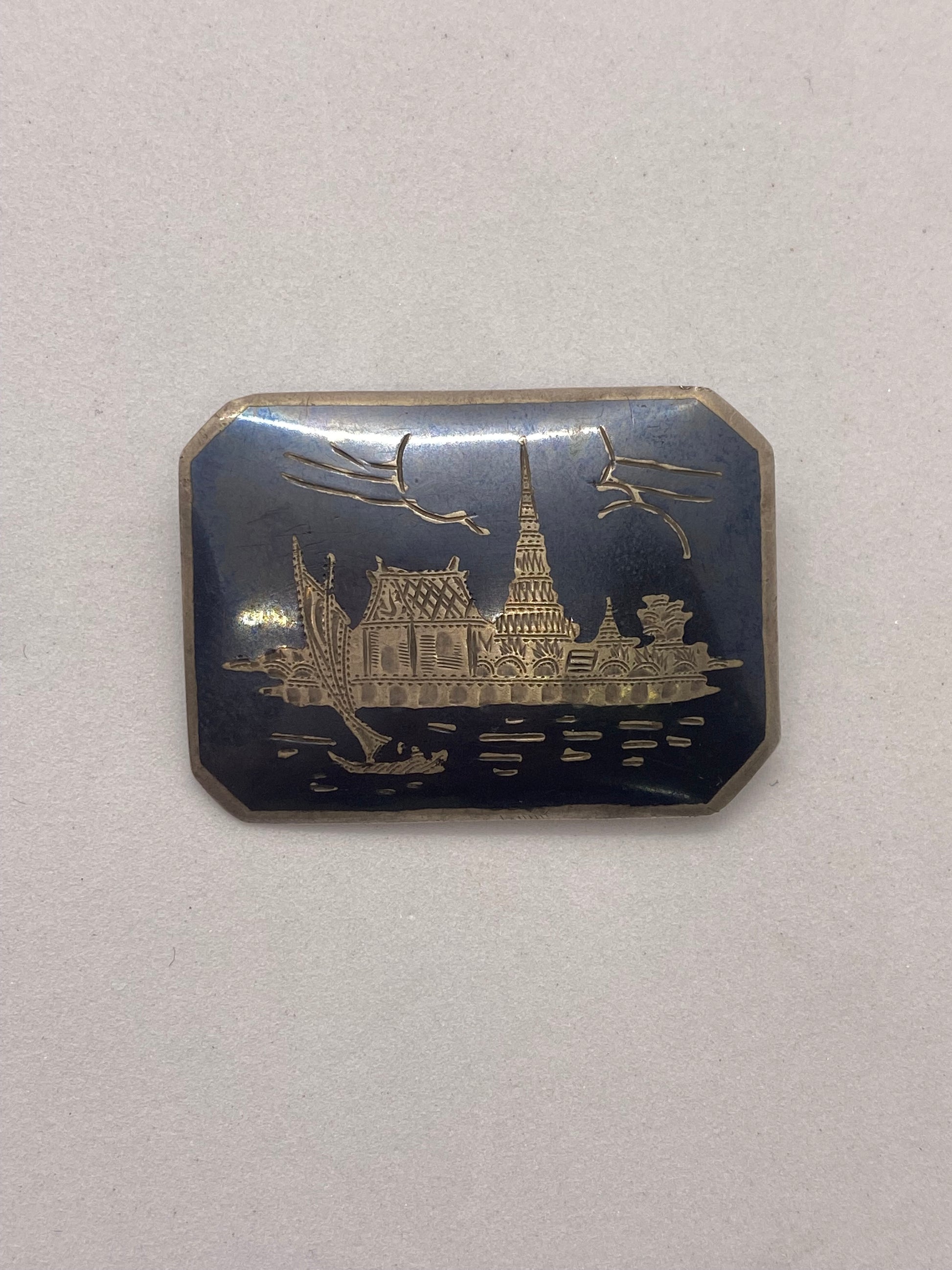 Vintage Siam Silver Niello ware Brooch in sterling silver, hallmarked on the back.