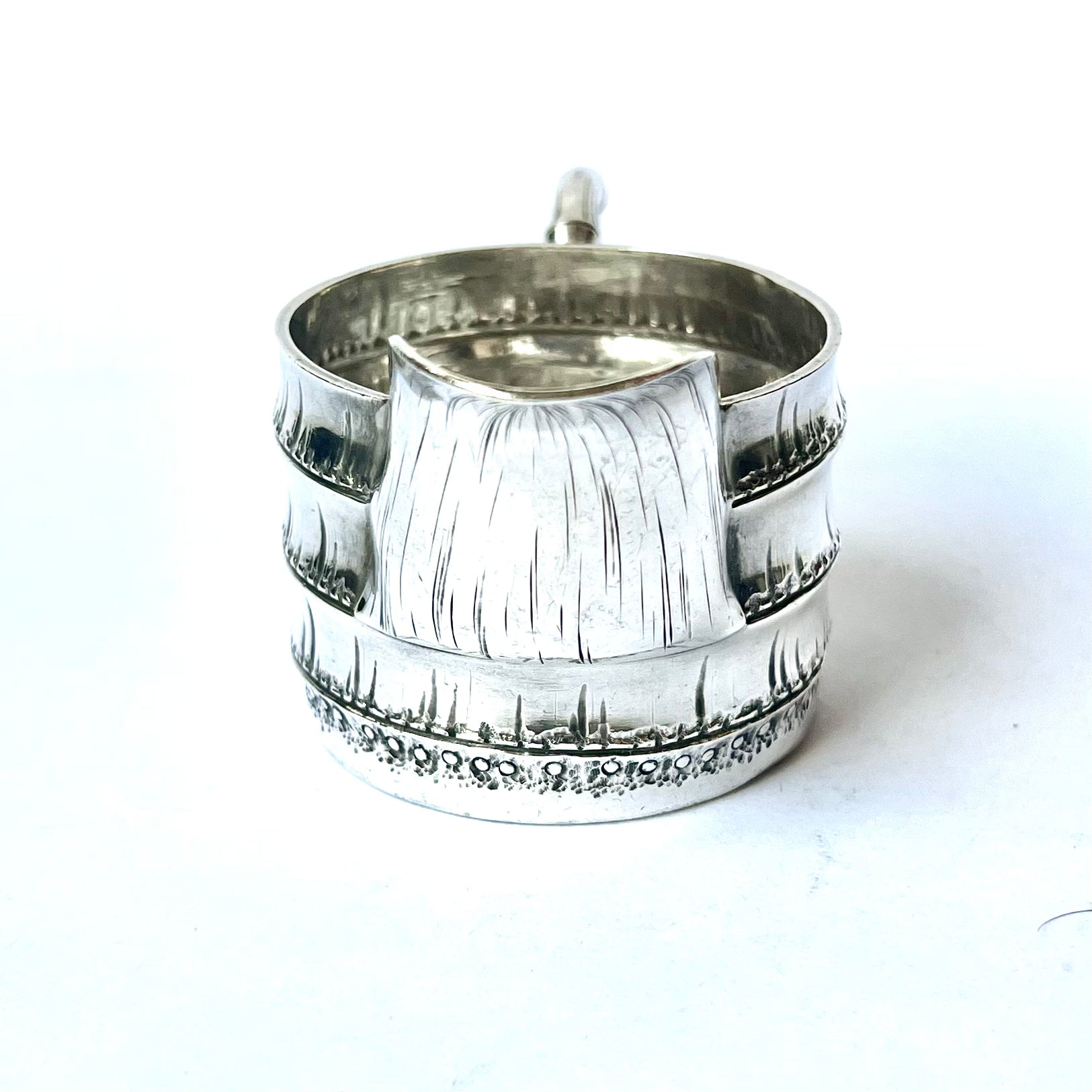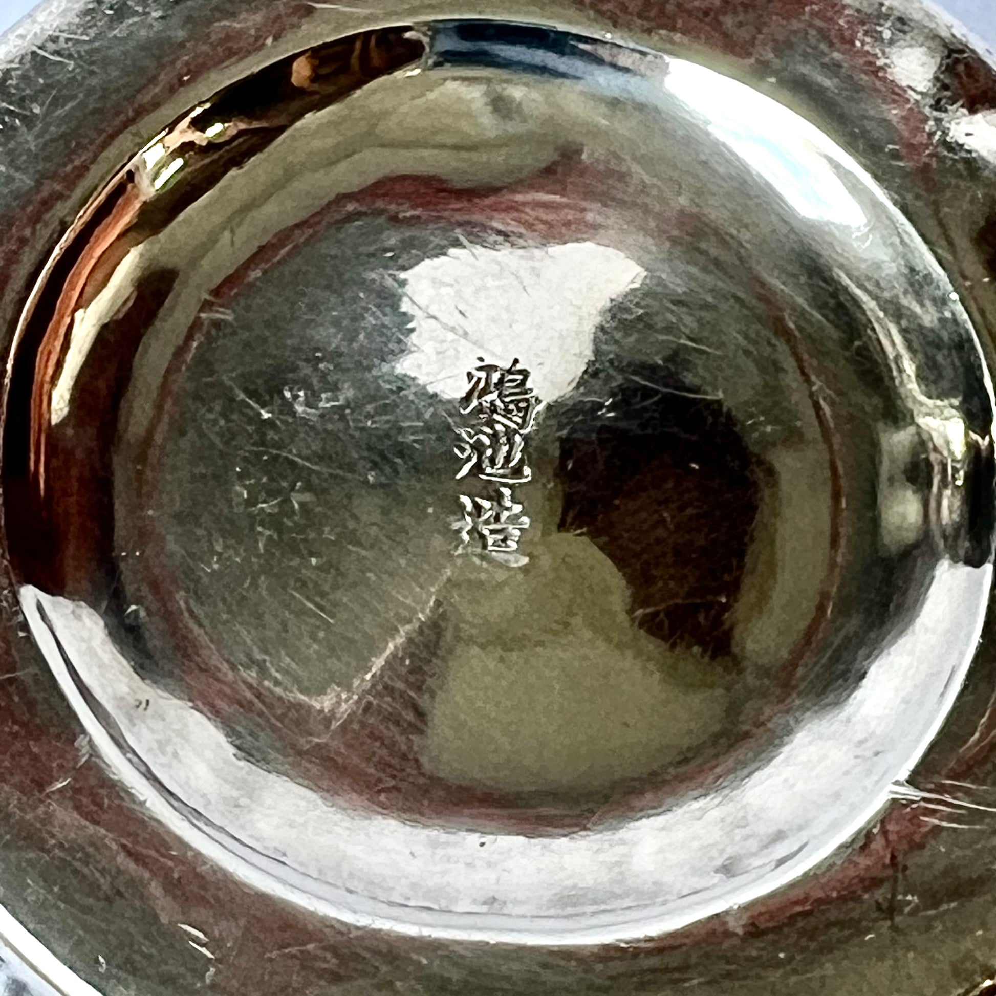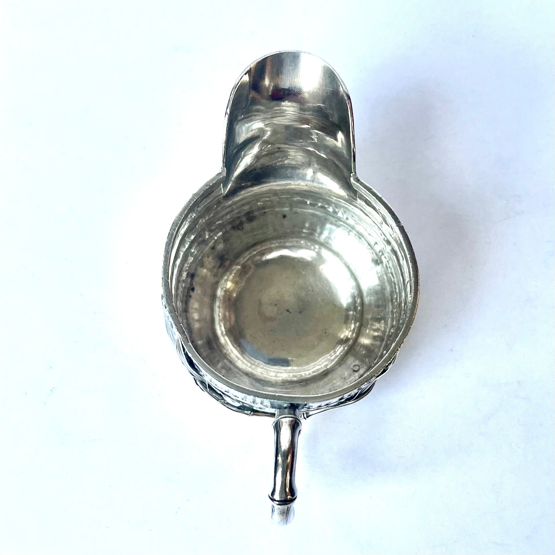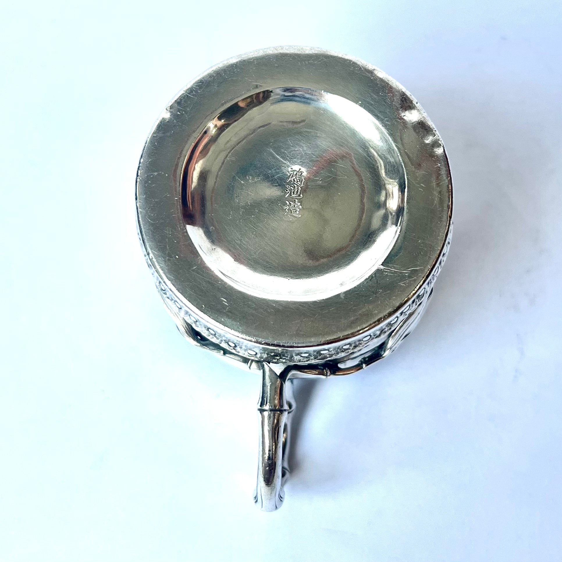 Superb and rare Japanese Meiji Period .950 silver creamer jug with bamboo motifs, made by the great Yokohama silversmith Konoike 鴻池 circa 1900s. Little is known about this maker’s life; however his works were in Jungin which would be .950 silver purity and working in silver of such purity requires great skill, such that many silver workshops of that time were run by former samurai. In London his pieces, particularly the tea and coffee services for which he is known, were retailed by Liberty & Co.