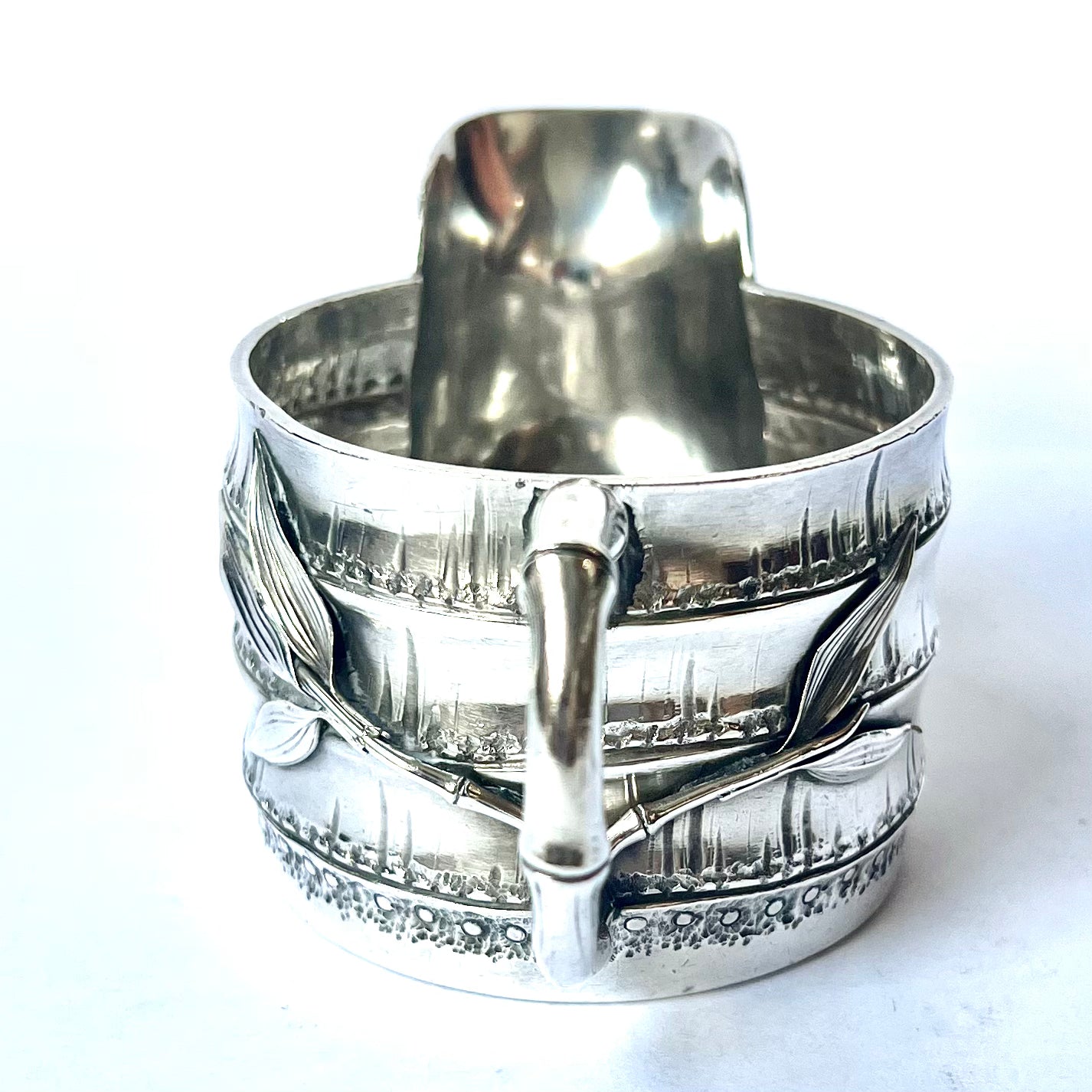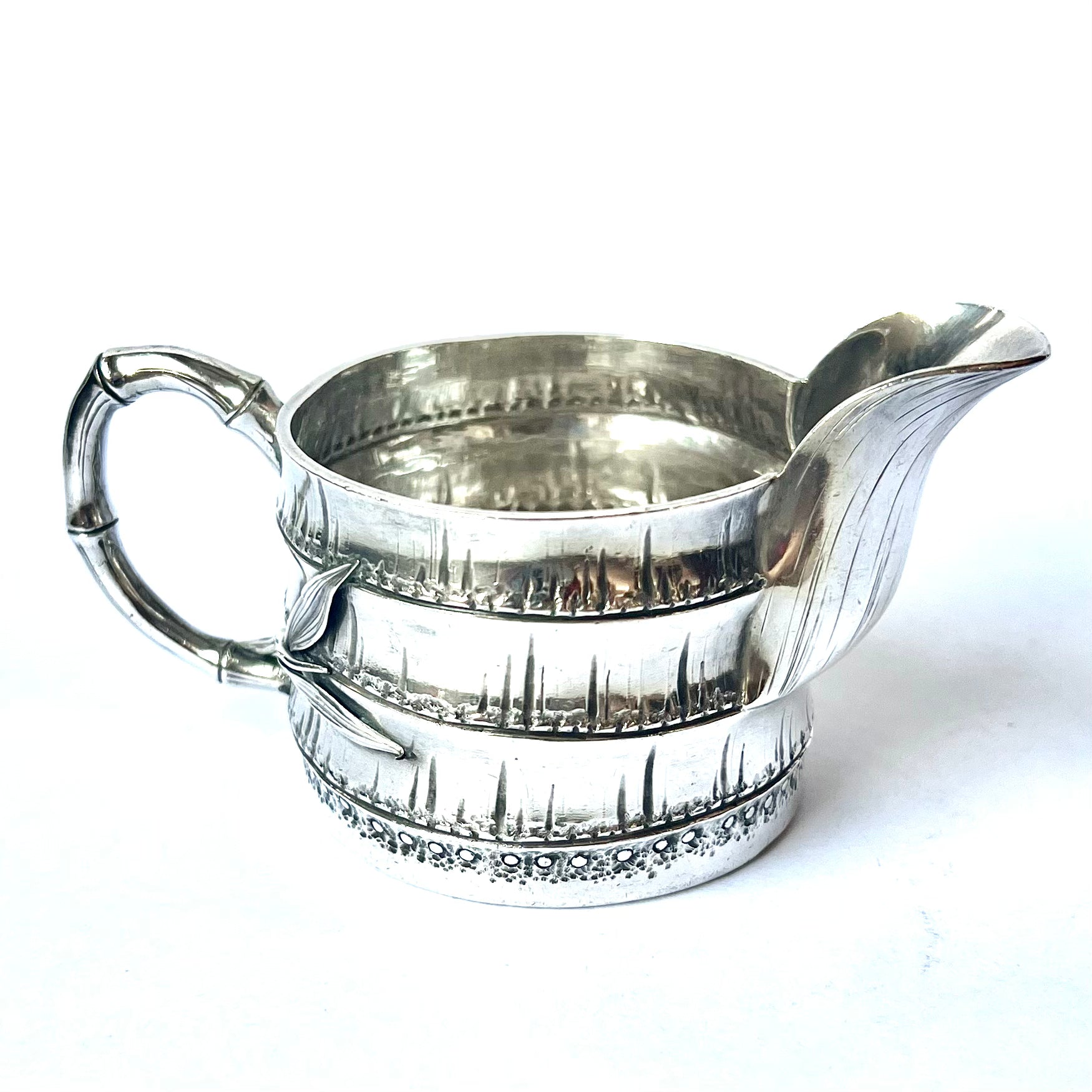 Superb and rare Japanese Meiji Period .950 silver creamer jug with bamboo motifs by Konoike