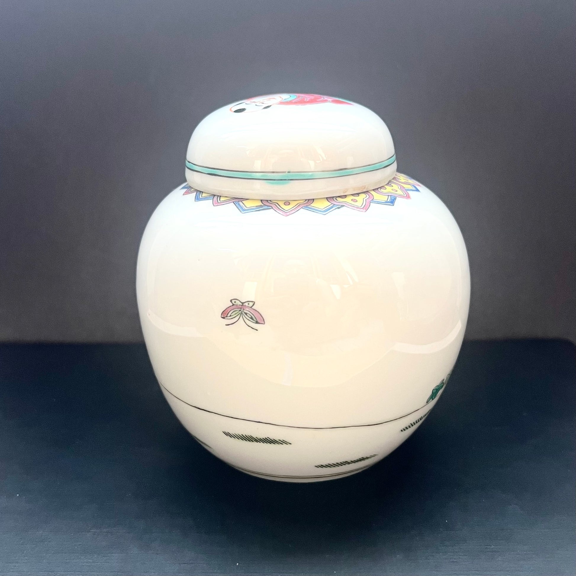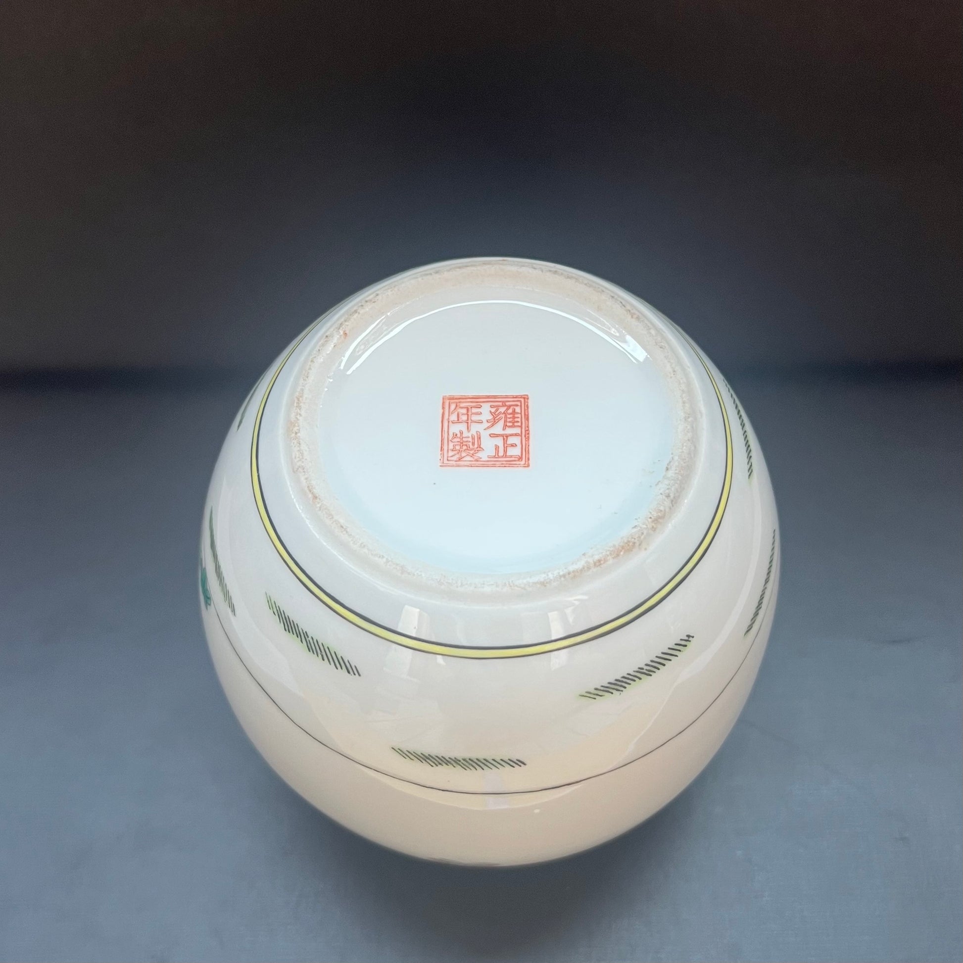 Vintage 20th century lidded Chinese jar, Jingdezhen with an apocryphal Yongzheng mark