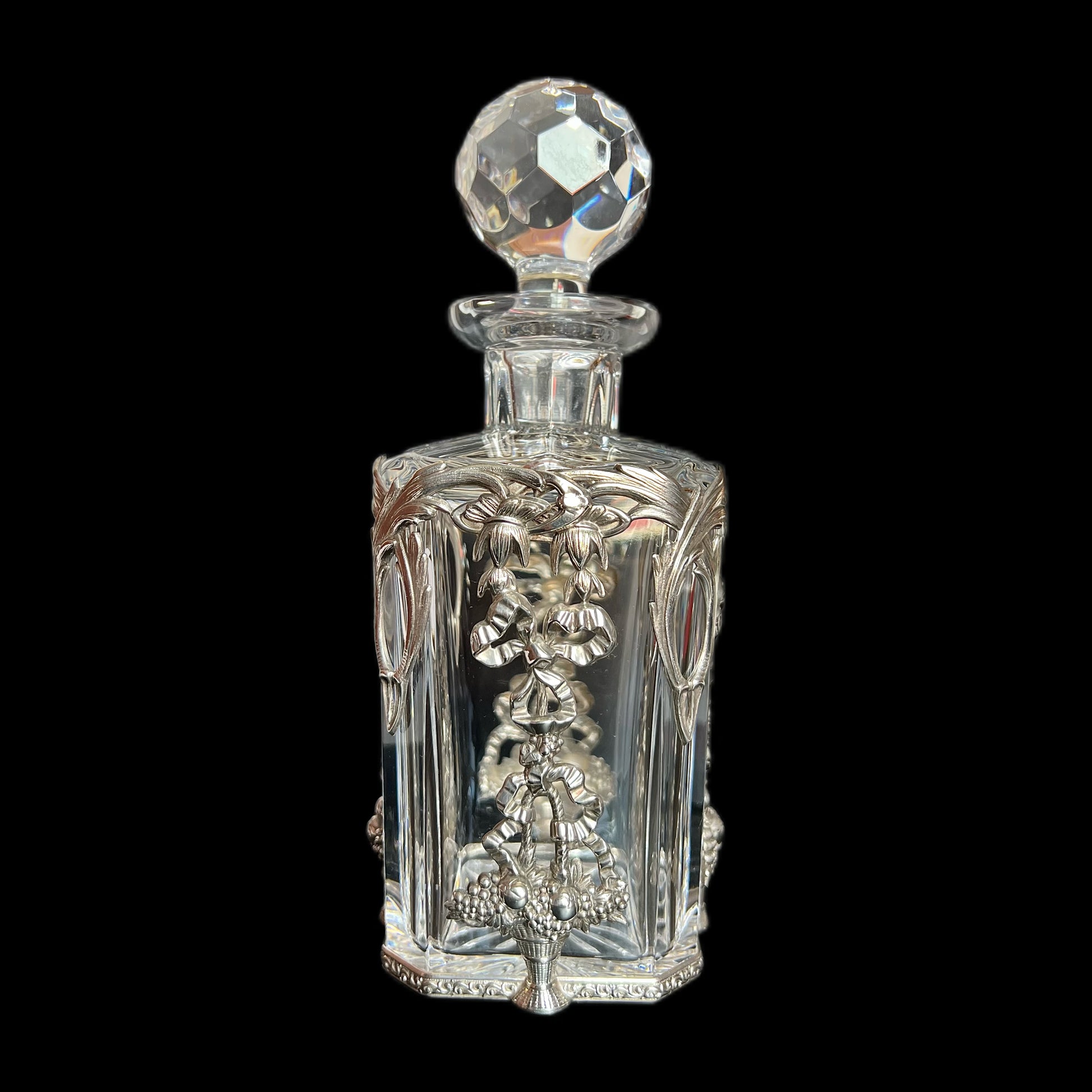 Vintage Atlantis Portugal crystal decanter with sterling silver caged overlay