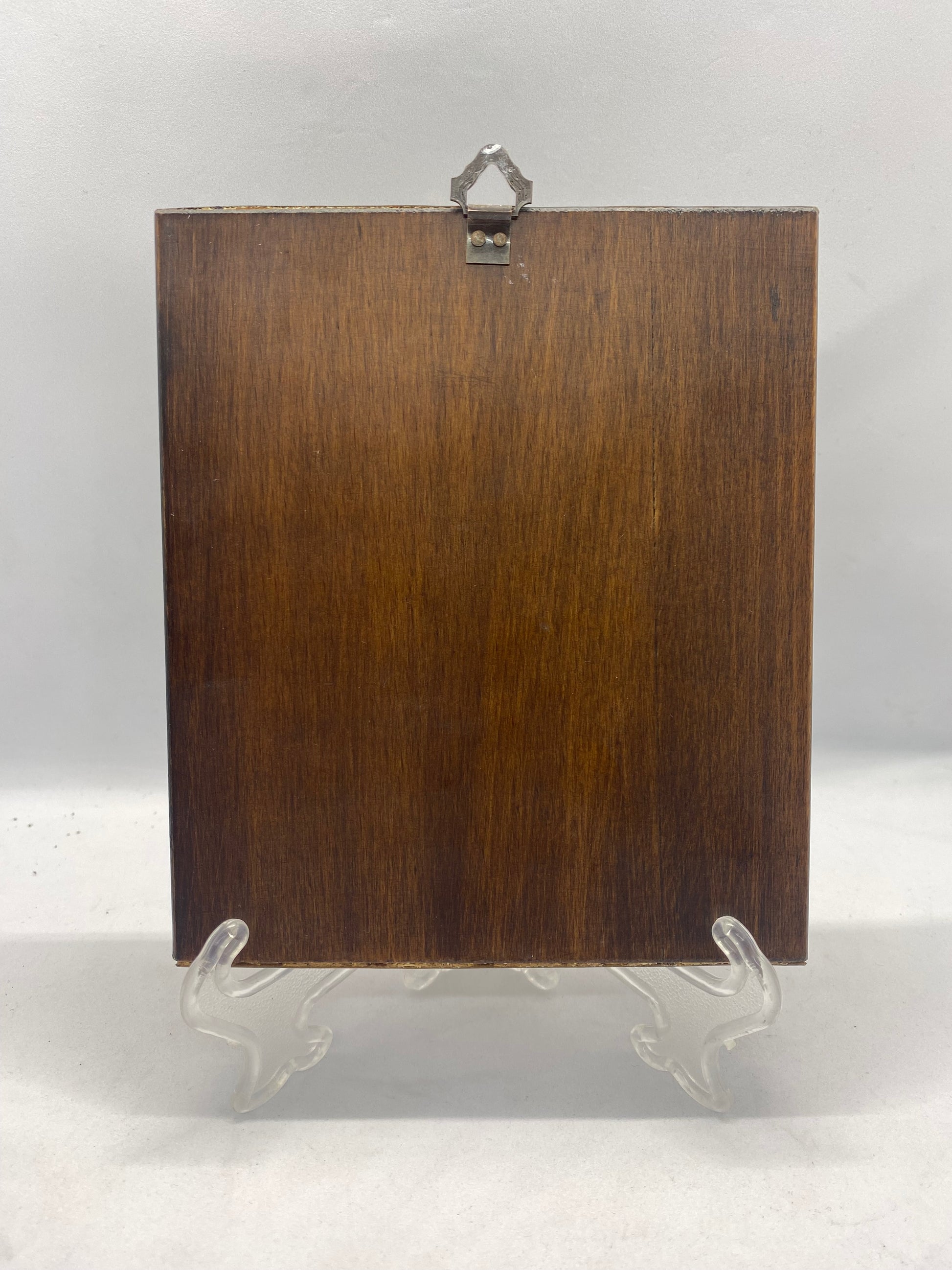 This vintage icon in the style of Byzantine iconography layered with .950 silver on top. Stamped and with silver certificate to the back. A lovely and particularly fine piece.