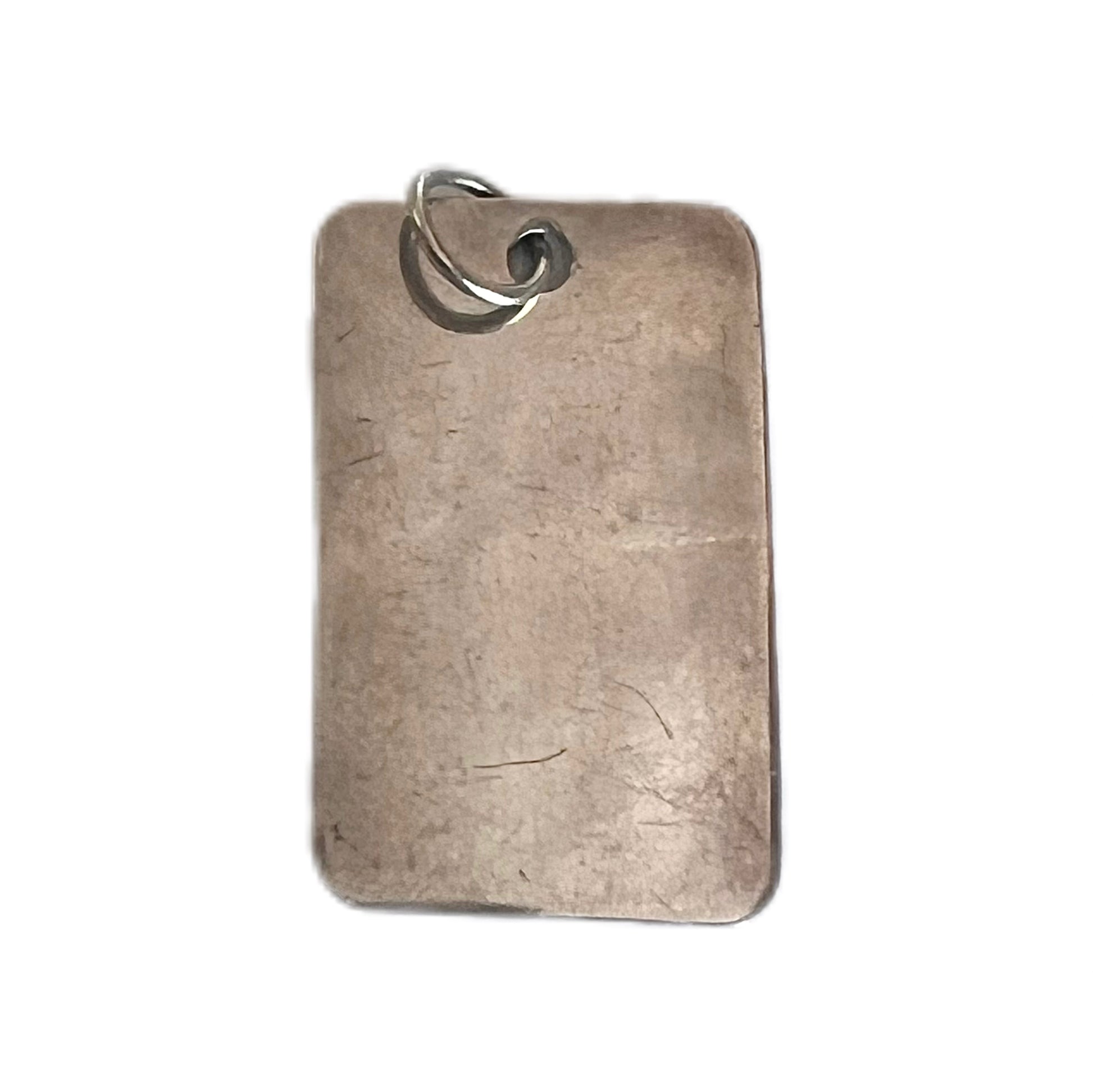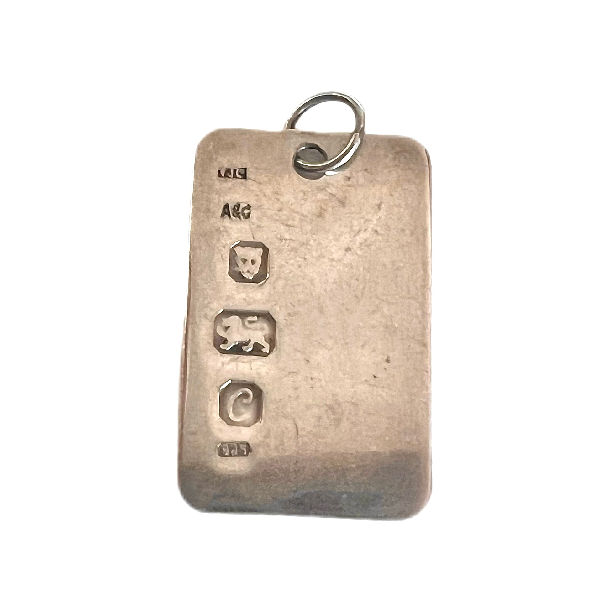A beautiful English QEII sterling silver dog tag pendant, with marks for London, 1977, I.J Ltd and A&C. This would be lovely engraved with one’s details, as the pendant is blank.