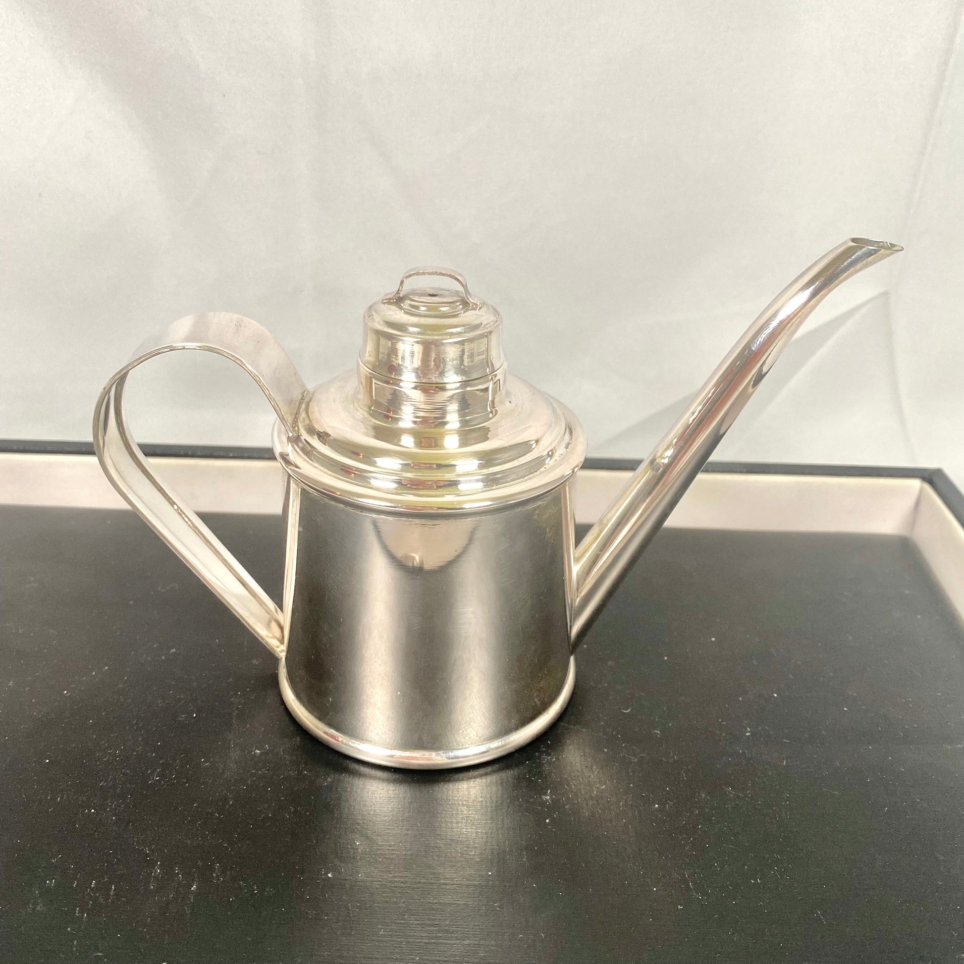 Vintage Mid to Late 20th Century Italian Silver Olive Oil Jug Decanter Pourer Dispenser Oil Can c. 1970s