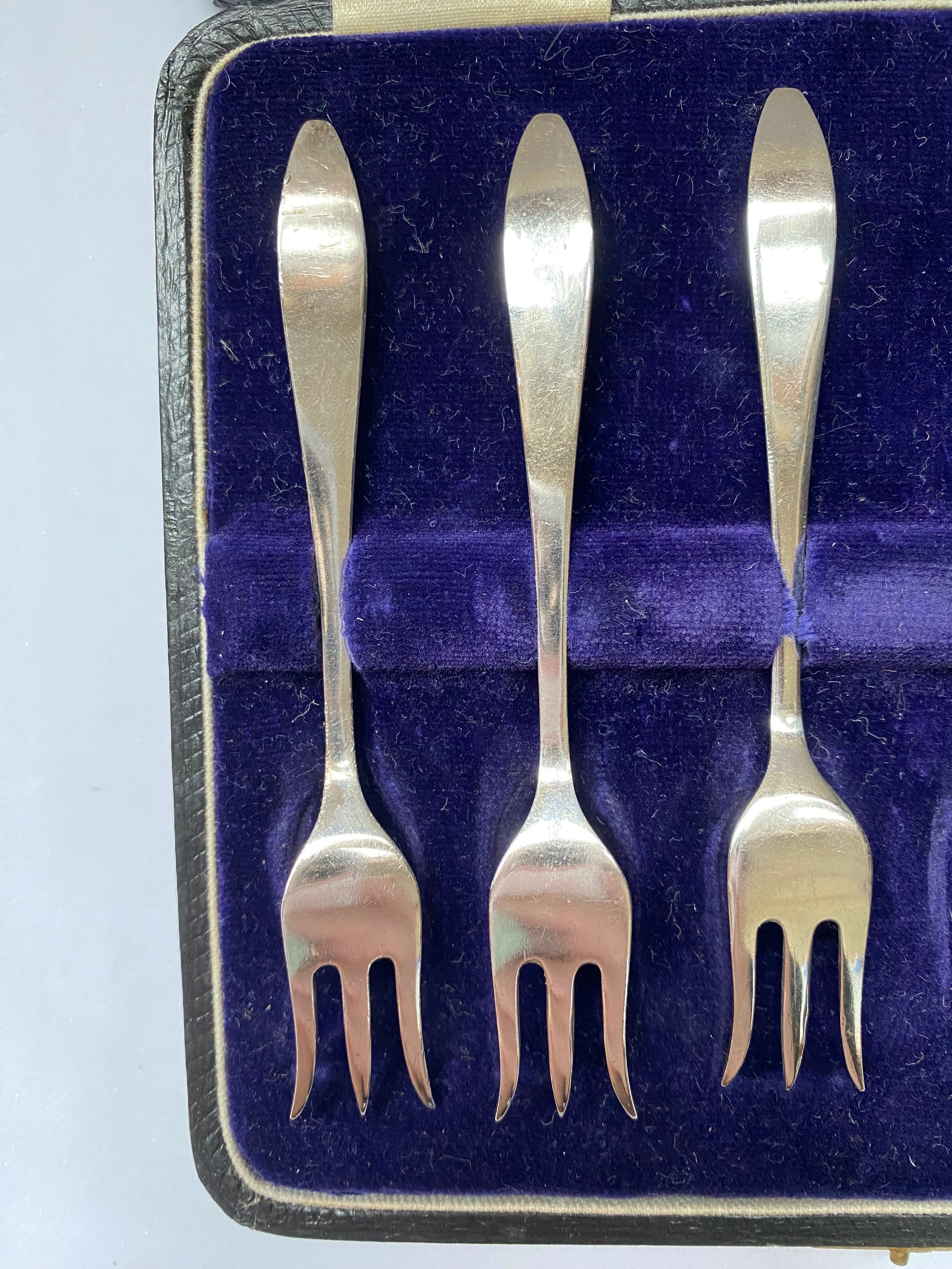 Antique sterling silver cocktail forks in a set of 6, with its original case.