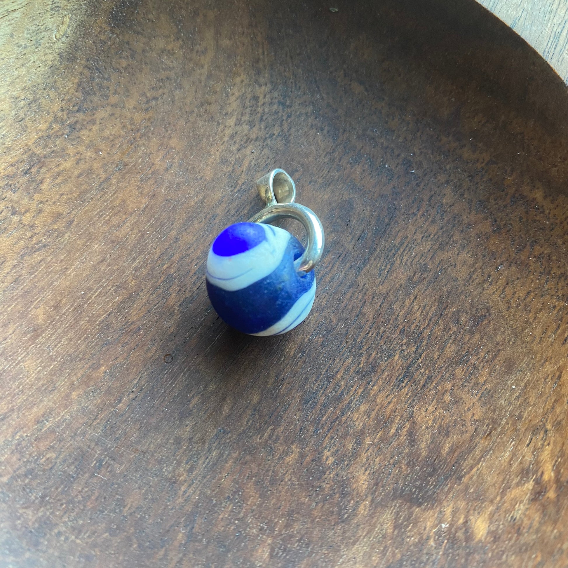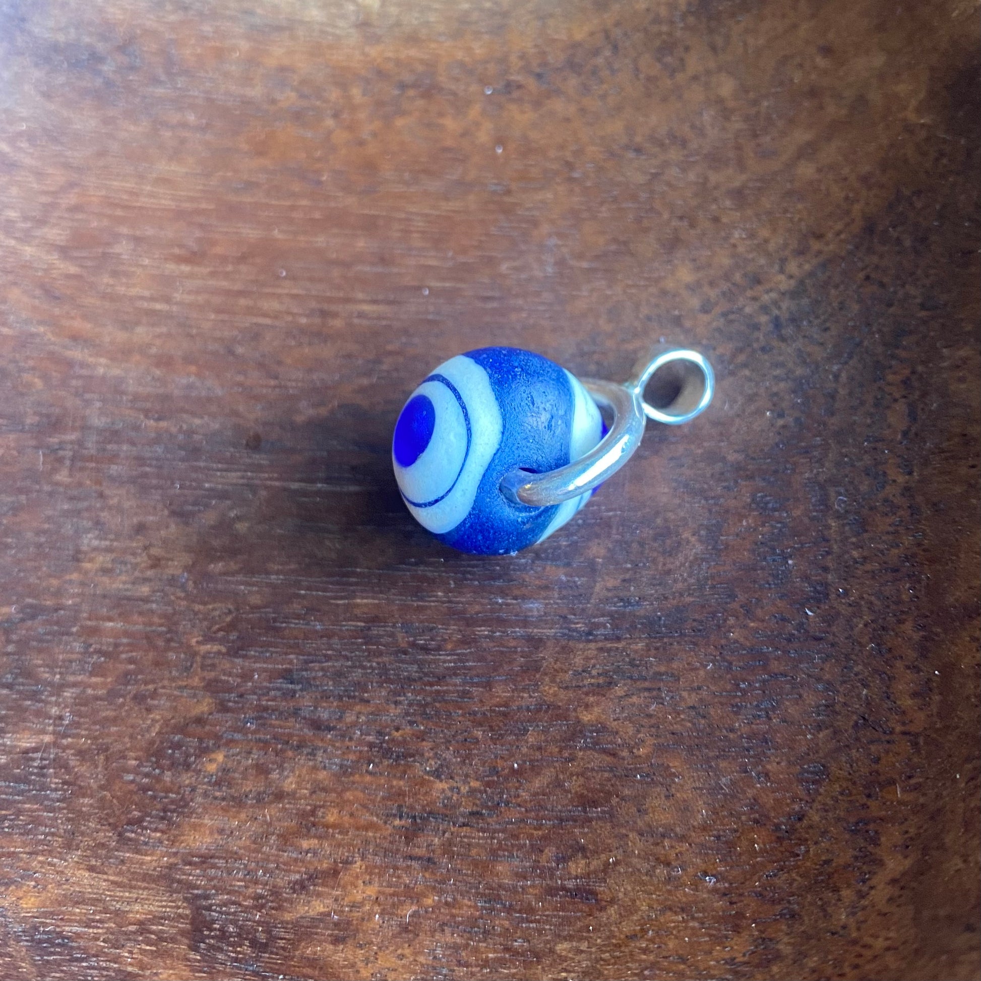 古代 Millefiori 钴玻璃贸易珠、爪哇 Jatim 眼珠、旋转表链吊坠
