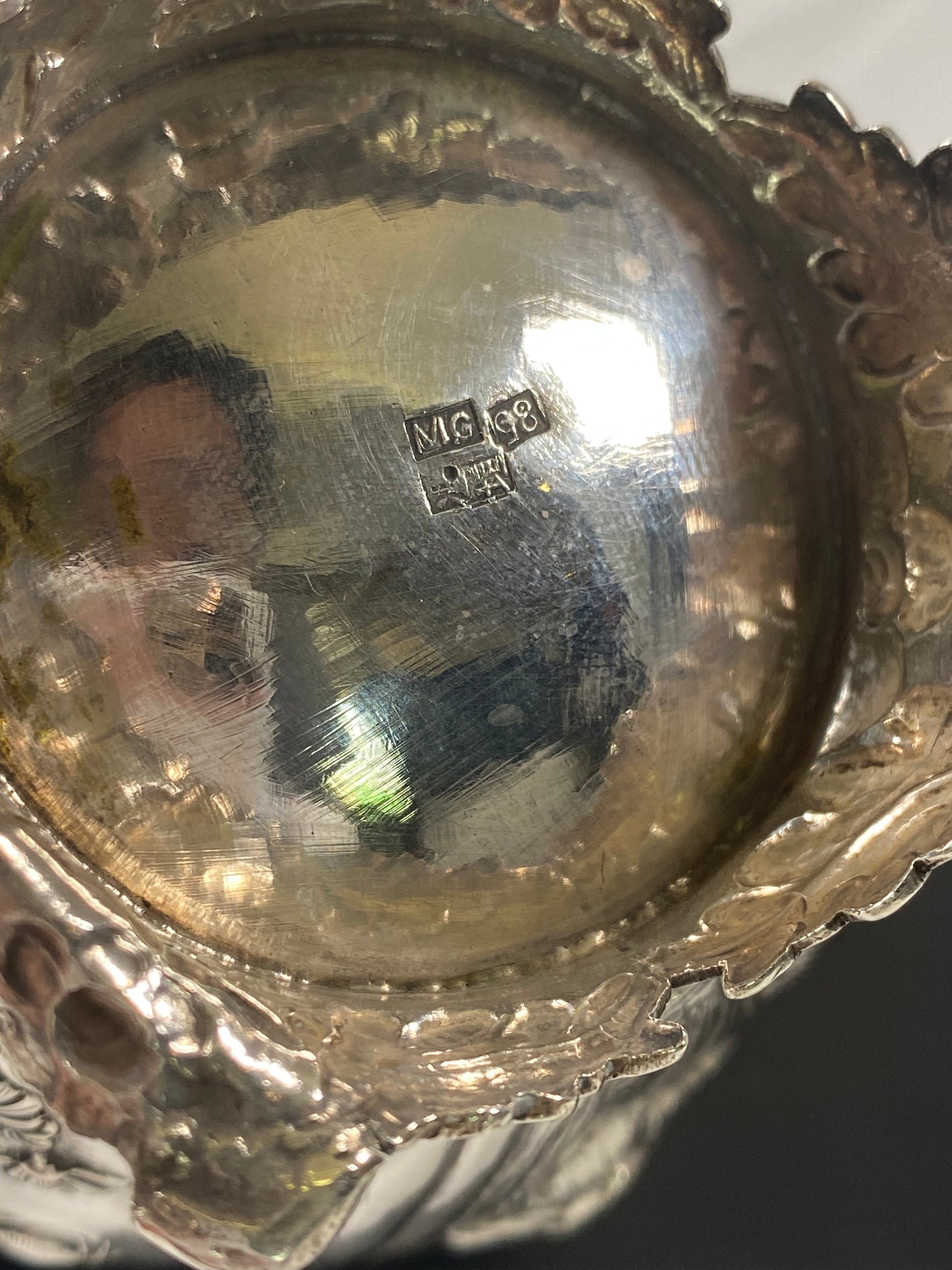 脚有损坏——有人在某个时候将两只脚的锻银底座取了下来。但仍然保存完好。我们认为,这很可能是在 1870-1910 年间制作的。