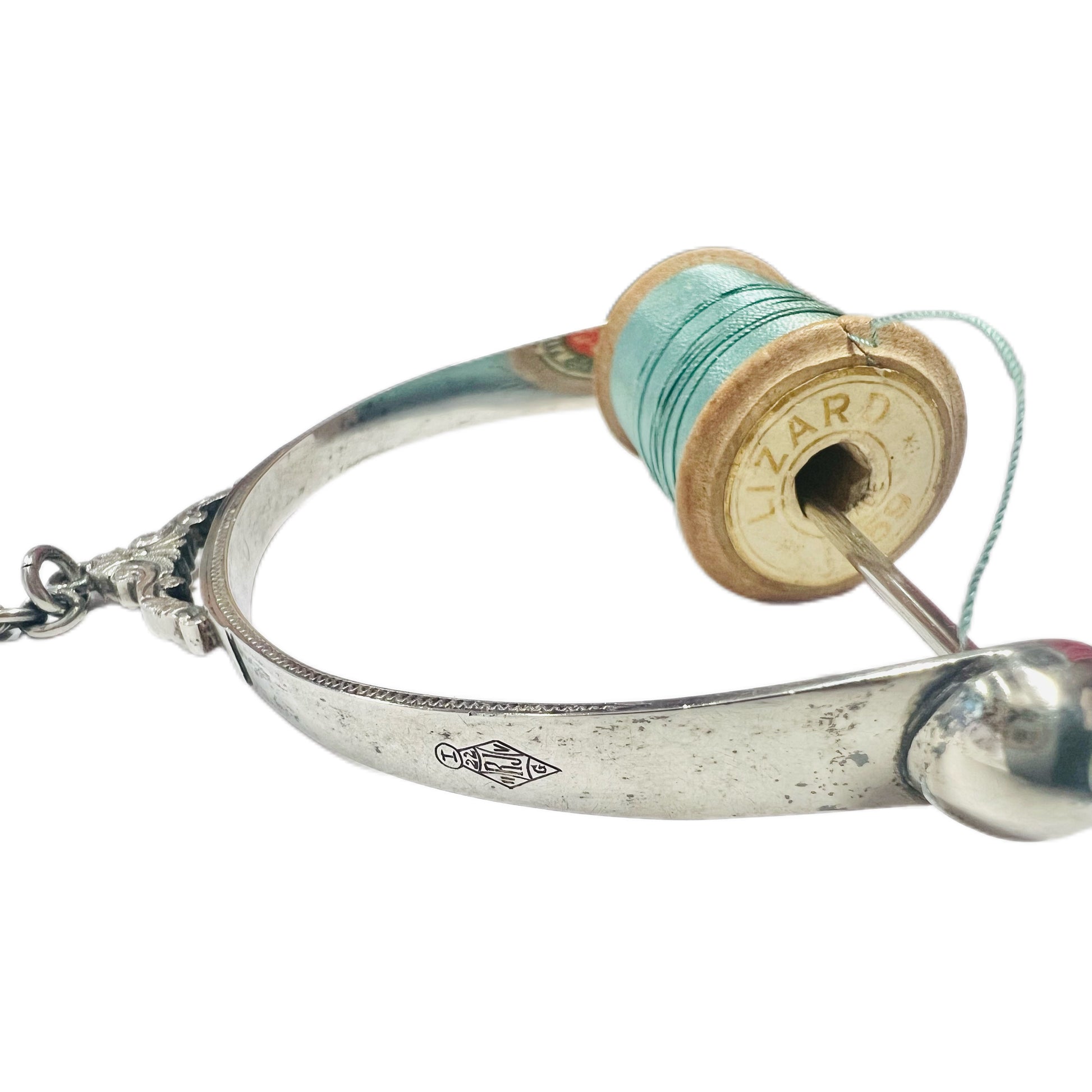 这些线轴刀佩戴在腰带上,可以让佩戴者在制作蕾丝、梭编等工艺时随时取用线。像这样用纯银制成的精美款式,通常是富裕家庭的女主人或贵族家庭的高级仆人佩戴的。