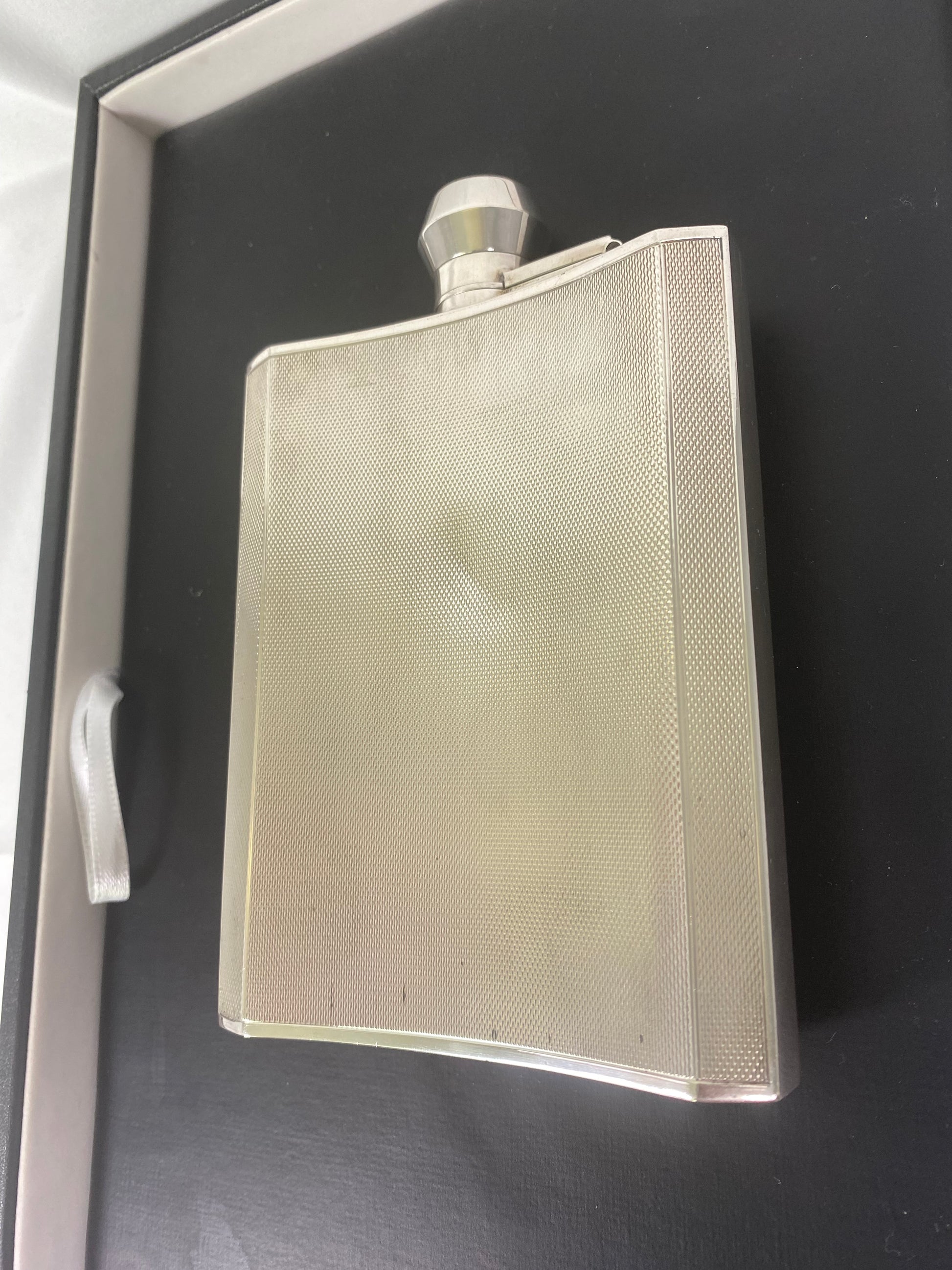 这款优雅而坚固的乔治六世纯银酒壶不仅适合日常使用,具有经典的弧形造型,符合人体工程学,可放入任何口袋,而且还是绝佳的投资品,您一定会一次又一次地拿起来。精细的机加工细节提供了便于握持的纹理,并增加了美学细节。