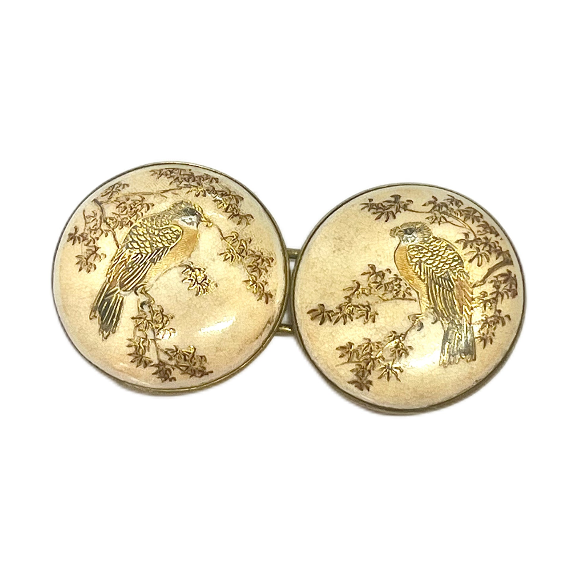 一对明治晚期至大正早期萨摩烧鸟纹皮带扣