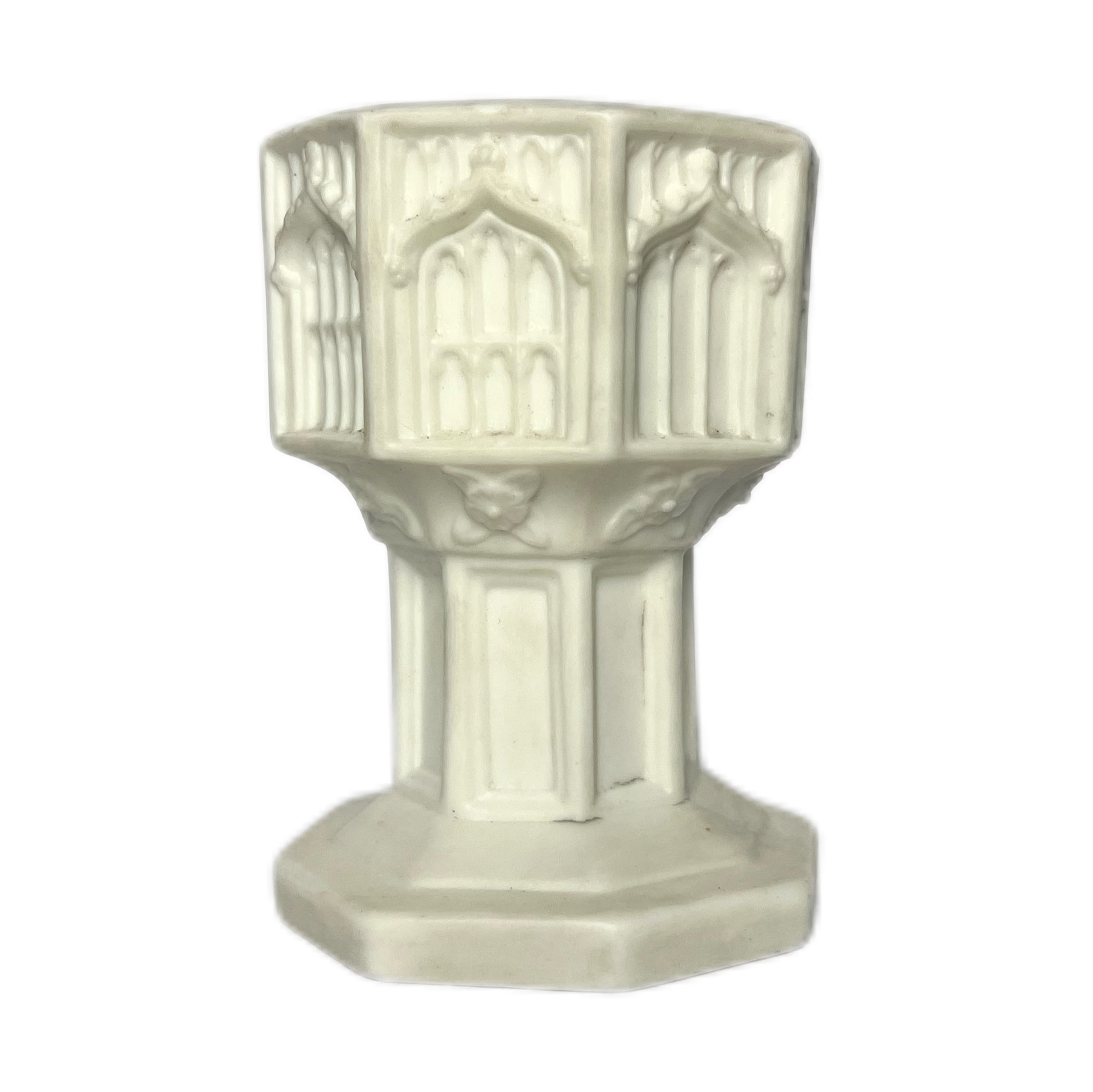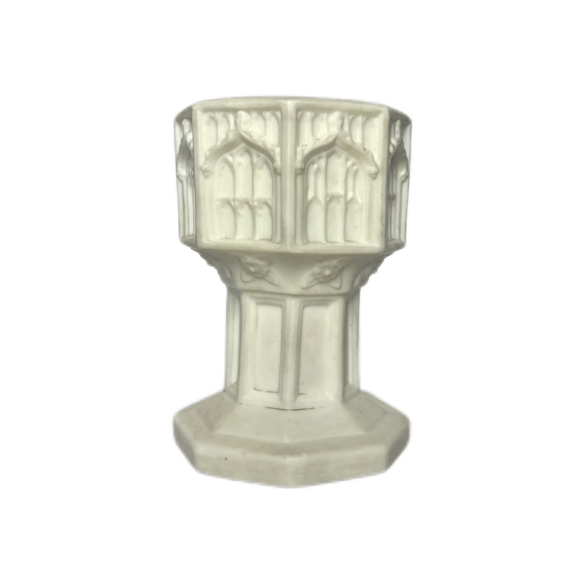 罕见的古董迷你洗礼盆,采用帕里安陶器,诺丁汉圣玛丽教堂,由明顿公司制造。