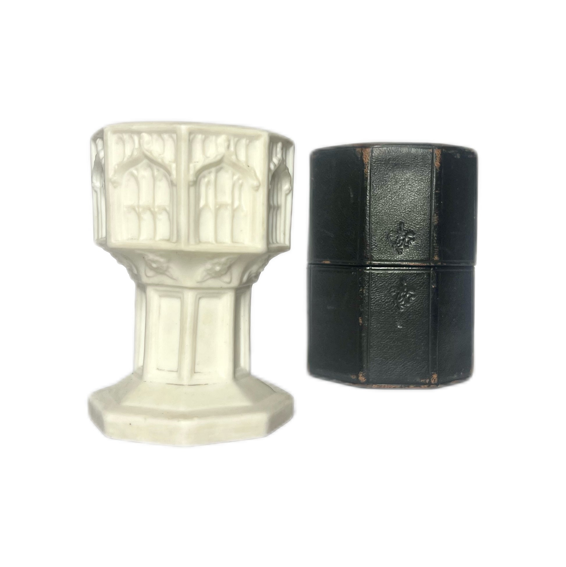 这件精美的迷你洗礼盆由明顿(Minton)于约1862年制作,采用帕里安瓷器,有时也被称为“袖珍洗礼盆”或“旅行洗礼盆”。它制作于19世纪,当时疾病肆虐,神职人员不得不探望病人。尤其令人痛心的是,婴儿死亡率居高不下,这些旅行洗礼盆被用来为垂死的婴儿施洗,以慰藉悲痛欲绝的父母。