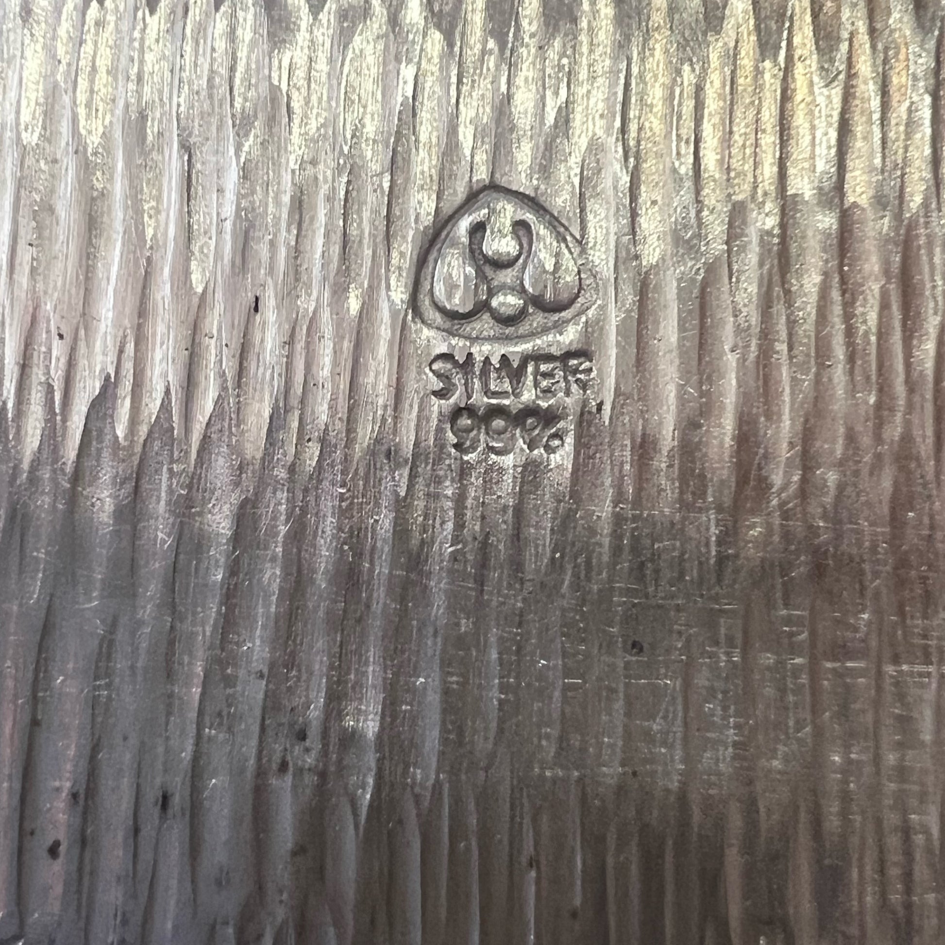 整体品相极佳,仅有轻微磨损,与年代相符,标记清晰。勺子略微弯曲,符合年代和高银纯度。小勺的珐琅有轻微磨损。