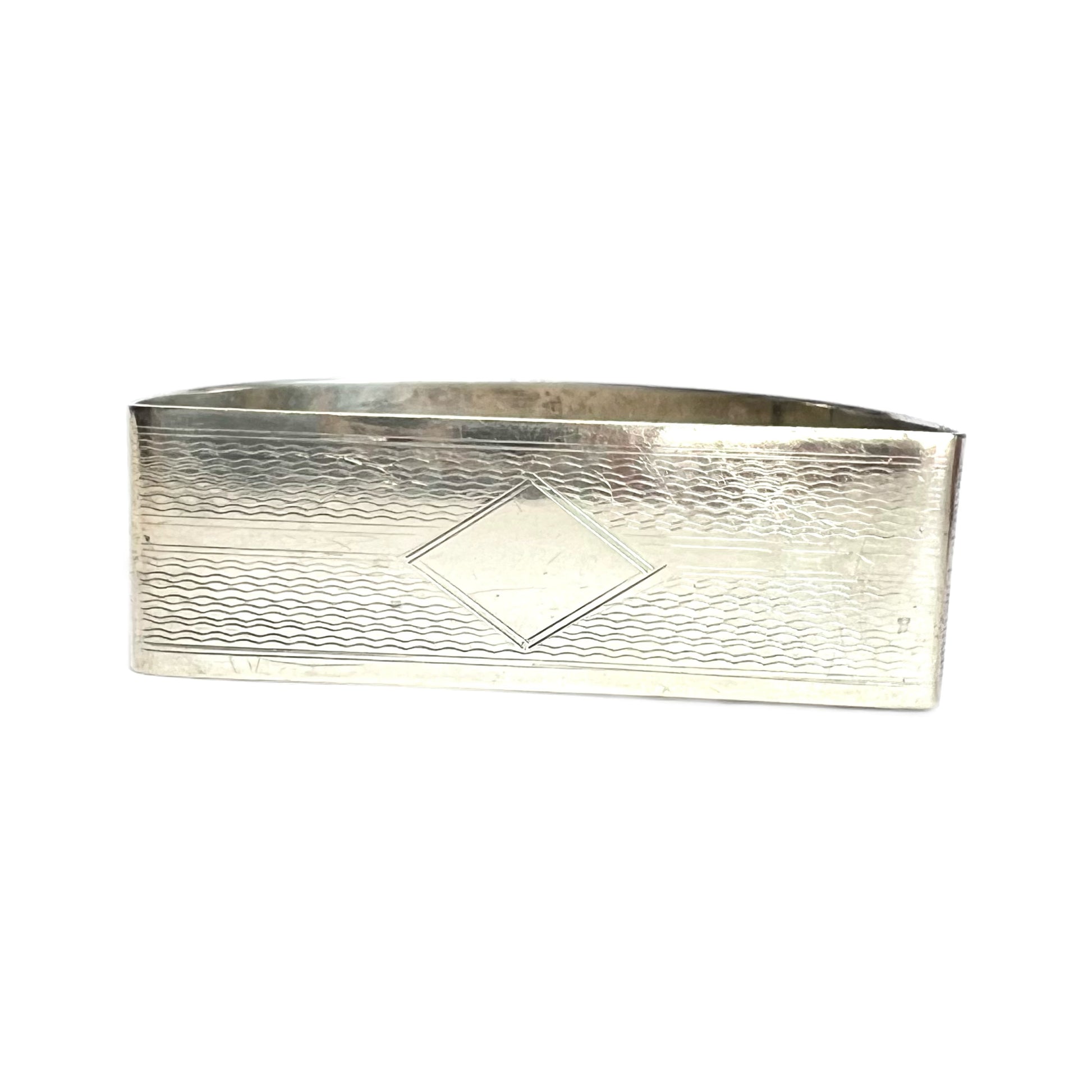 Vintage Australian sterling silver napkin ring by Apex, circa 1930s to 1950s, original cartouche blank. The Apex trademark was used by G&E Rodd, a well regarded jewellery and flatware manufacturer founded in Melbourne, Australia.