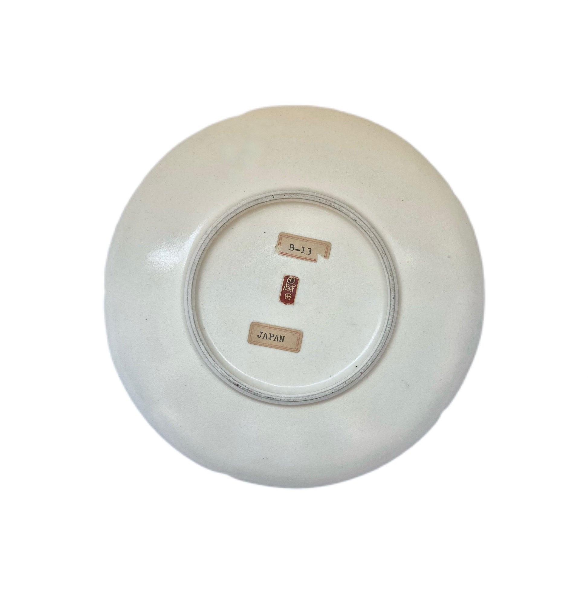 A lovely vintage Japanese Satsuma plate handpainted with temple and cherry blossom motifs, by noted maker Koshida 越田circa early Showa Period (1940s to 1950s). The Koshida kiln was known for its exemplary work.